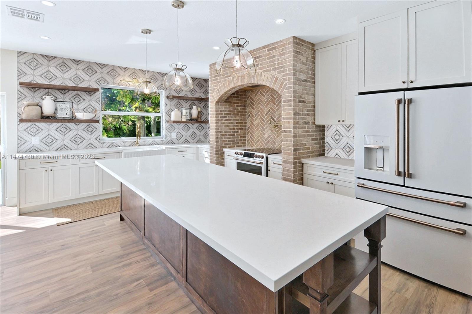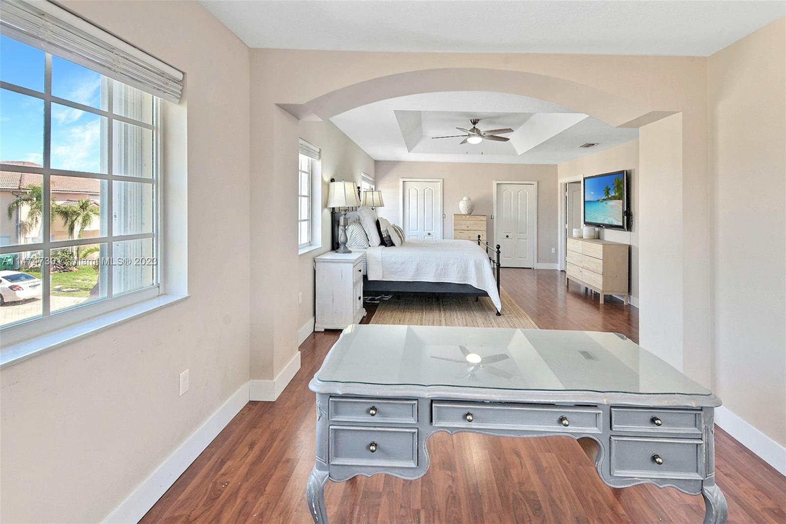 EXQUISITE 4 BED, 2.5 BATH SINGLE FAMILY HOME IN SPANISH LAKES COMMUNITY OF HIALEAH OFFERS 2,780 SQ FT OF LIVING. UPON ARRIVAL BE GREETED BY AN ELEGANT CIRCULAR DRIVEWAY WINDING AROUND TASTEFUL LANDSCAPING. INTERIOR DESIGN ENTHUSIASTS WILL SWOON AT THE ONE OF A KIND, HIGH END DECOR ELEMENTS FOUND THROUGHOUT THIS SPECTACULAR HOME INCLUDING, BOARD & BATTEN ACCENT WALLS, NICHES, & ARCHES. THE KITCHEN THAT DREAMS ARE MADE OF HAS IN DEMAND CAFE SERIES APPLIANCES, BRICK ALCOVE, & TWO TONED CABINETRY TOPPED W/ QUARTZ. A GRAND PRIMARY SUITE HAS A TRAY CEILING & SITTING ROOM GREAT FOR AN OFFICE OR NURSERY. THE STUNNING ENSUITE BATH HAS WRAPAROUND BLUE SHAKER CABINETRY, ROMAN TUB, & SEPARATE SHOWER. PERFECT FOR ENJOYING INDOOR/OUTDOOR LIVING, A WALL OF GLASS DOORS OPEN TO THE SPACIOUS PATIO & YARD.