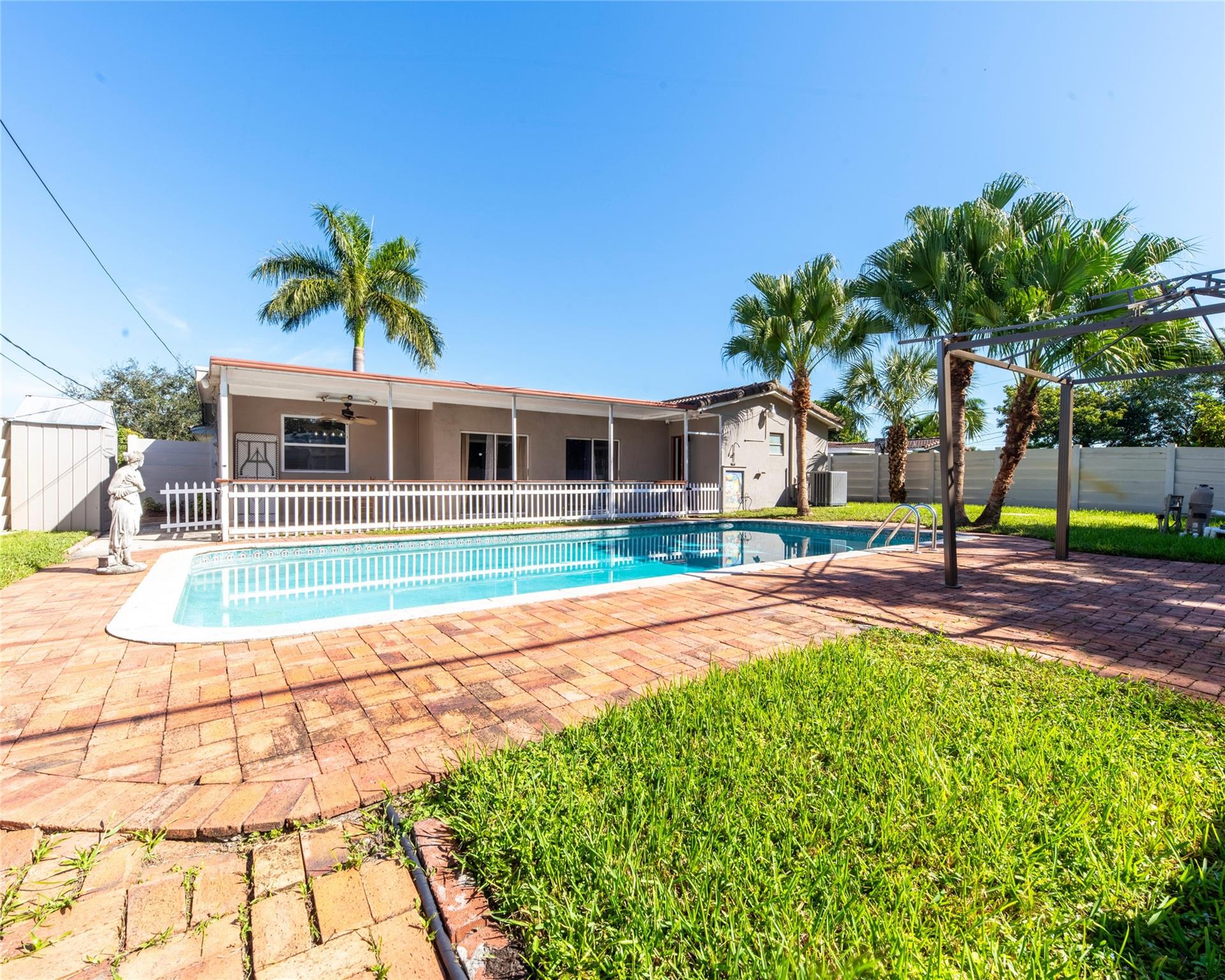 This is it - A FANTASTIC opportunity to own this recently renovated 4-bedroom/2-bathroom home in the lovely Hollywood Hills neighborhood! This charming home boasts numerous upgrades. . . fully renovated kitchen w/ granite counters, new appliances, new cabinets and upgraded lighting; wood-look tile throughout common areas; fully re-modeled bathroom w/ glass-enclosed shower and slate finish; newer tiled roof; newer a/c; newer water heater; new pool and sprinkler pumps, newly sealed circular drive; freshly painted interior and much more! Enjoy the open floor plan, fully fenced yard w/ spacious patio and oversized, 8' deep pool! This highly sought-after neighborhood is centrally located and without HOA fees!