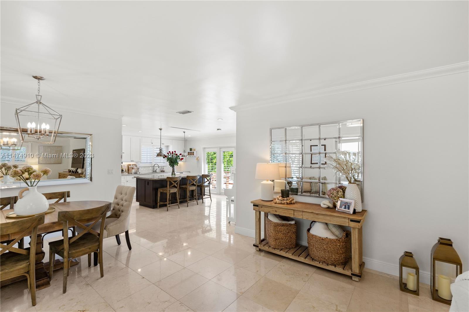 Beautiful 3-bedroom, 3-bath, updated Gables home w/amazing curb appeal. Open floor plan with dining room and living within view of the large kitchen with island. Large Master and bath, marble floors and plenty of natural light. This is a very inviting and comfortable home with a beautiful heated pool and plenty of room to entertain. It has a one car garage, indoor laundry and and impact windows and doors throughout. Centrally located in the heart of the Gables.