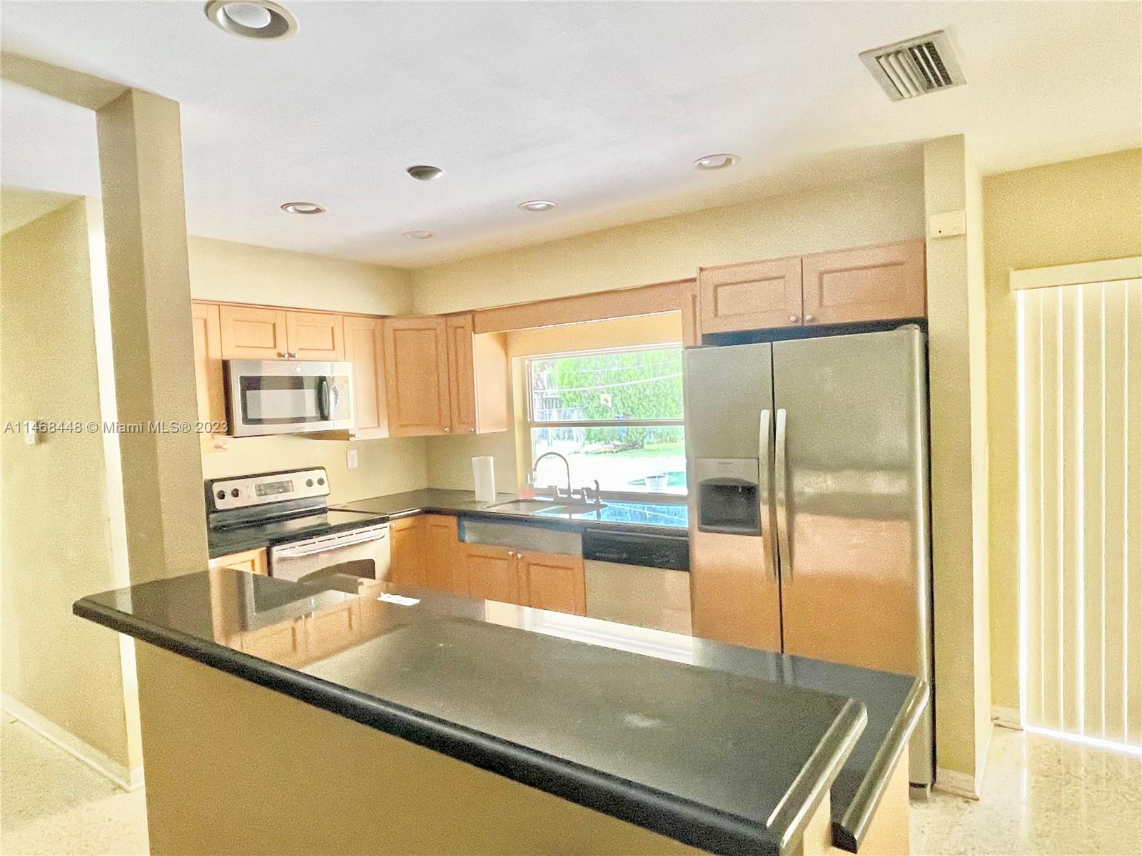 Beautiful home in the heart of Hollywood Hills! This bright spacious 3/2 Pool home with garage. This home is just waiting for you to make it yours; This pool home sit on an 8Ksf lot and features open concept kitchen with granite countertops, spacious cooking island with sitting area & stainless-steel appliances. Primary BR has a huge walk-in closet, the spacious ensuite bath is huge with granite countertops, double sinks and step in shower. Lots of closets. Terrazzo flooring throughout. Private Fenced in back yard. Roof 2009, water heater 2018, Huge back patio area perfect for entertaining. Perfectly located close to places of worship, Memorial hospital, parks, shopping, Ft Lauderdale airport, entertainment, casinos & Hollywood Beach are just minutes away. No washer or dryer.