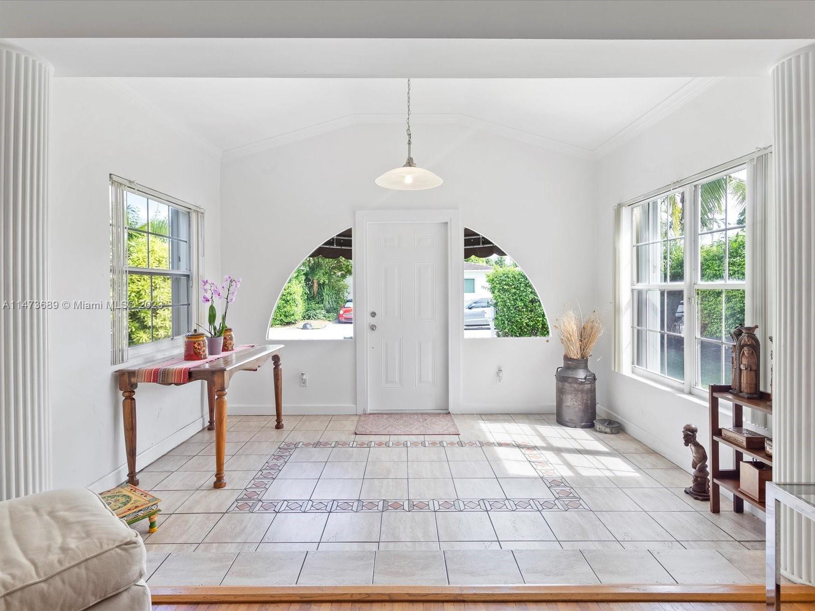 This architecturally unique gem is sure to captivate you from the moment you enter the sunlit foyer. Located in the Town of Surfside, this expansive home showcases a timeless charm with an original art deco fireplace, custom archways, high ceilings & original wood floors. There are 3 bedrooms, 2 bathrooms, an office that could be a 4th bedroom & a huge family room. The kitchen has a gas stove & granite counters. The aluminum/metal roof was installed in 2019 & all windows/doors have hurricane shutters. The private, fenced backyard has a large covered patio. Many renovations have been completed since 2005, including electrical, plumbing, gas water heater, both bathrooms & more. Walk to the beach, community center/pool, Bal Harbour Shops, dining, tennis. Zoned for A-rated Bay Harbor schools.