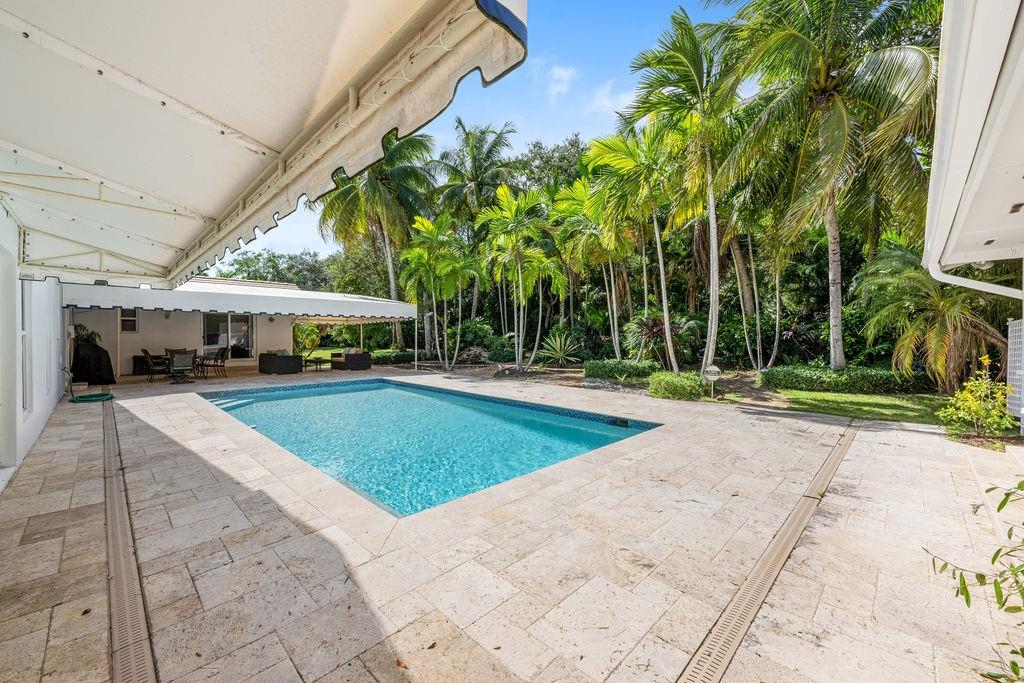 Amazing home features 4 spacious bedrooms and 3 baths with custom cabinetry throughout. The primary includes high ceilings, spacious closets, and a lavish bath. Another large en-suite with bedroom, kitchen, walk-in, and full bath has gorgeous pool view. High ceilings and stunning views throughout the open concept family, dining, and living areas. Gourmet kitchen includes granite countertops, double ovens, and gas cooktop. Expansive travertine patio features large pool and designer koi pond surrounded by lush landscaping. Finished garage and connected laundry room offer convenience and an opportunity to enclose and expand for added living space. IT IS A PERFECT BLEND OF LUXURY, FUNCTION, AND COMFORT.