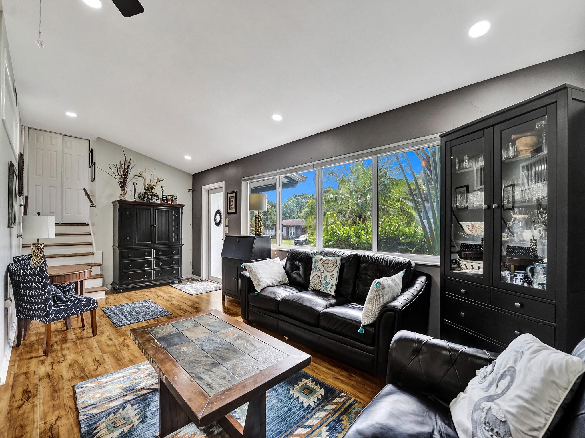 WELCOME HOME to this amazing new listing in the quaint area of Riverland. The home has been tastefully updated including new floors, kitchen and bathrooms. Peace and quiet surrounds you while being on a dead end street with NO HOA. The home has a BRAND NEW 6 MONTH OLD ROOF with a transferable warranty, impact windows/doors and electrical panel. The laundry room is downstairs and has a full room with a closet that can be a 4th bedroom/den/office/playroom or whatever your heart desires. The backyard is full of beautiful trees and can easily fit a pool. The home is also wired for a generator and has a sprinkler system. Close to highways, hard rock and beaches. Call today for a private showing and don't let this beautiful home in a great area pass you by. Your dream home awaits now.
