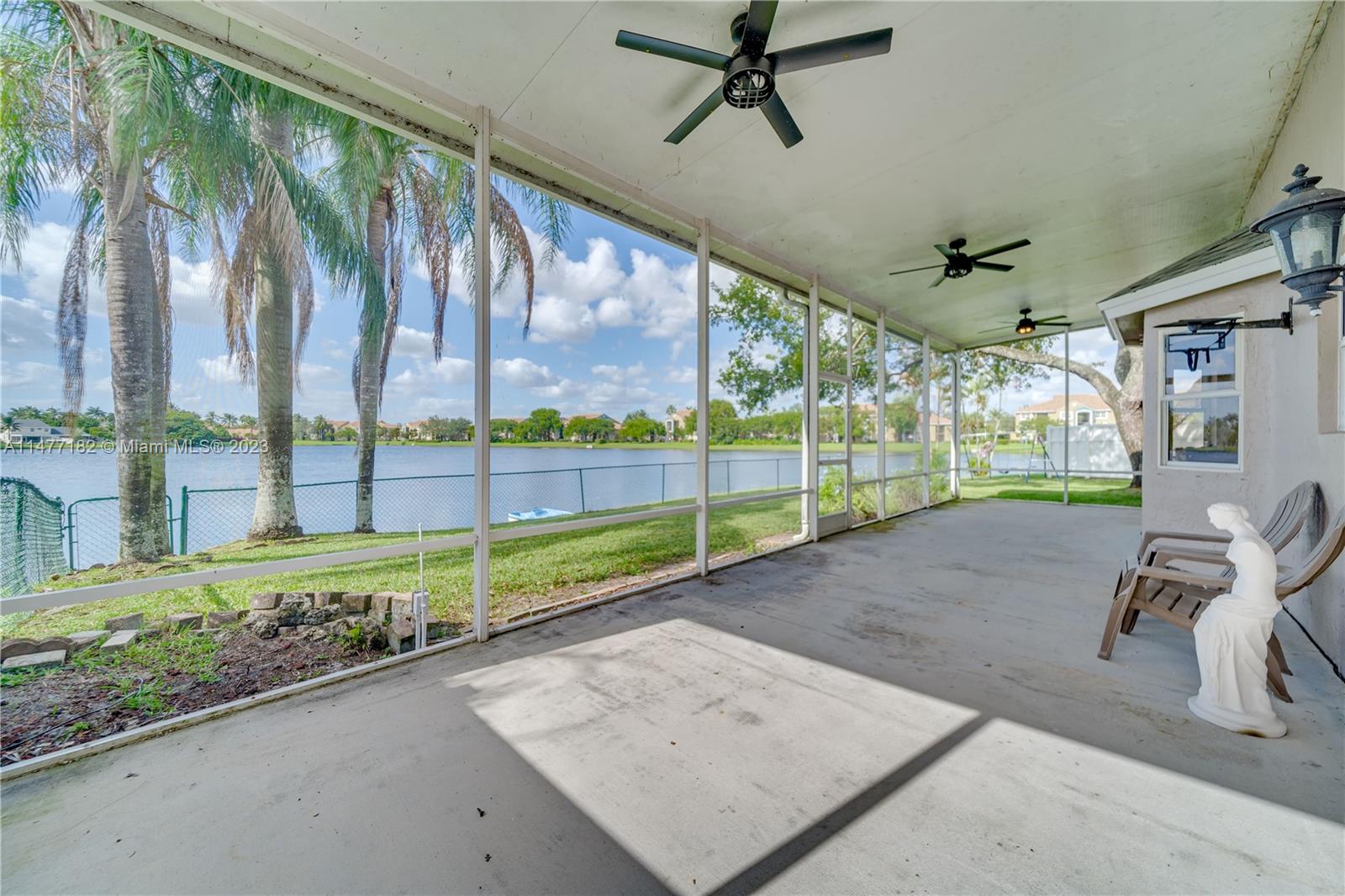 Enjoy sunsets over the water... South Florida is calling. Tranquil water views from this lakefront home set the tone for the relaxing lifestyle you seek. With three spacious bedrooms and a fourth to be used as loft or office space. Relax on the 12x40 lanai with soft breezes and lighted fans to enjoy sunsets by the water Lush backyard boasts a lake-fed sprinkler system for tropical green grass and landscaping. In addition, this property offers a monitored alarm system, perimeter security lights and motion detecting lighting. The roof is just five years old and the property offers a hurricane rated front door, as well as a hurricane rated insulated garage door, storm panels and hardware. The exterior of this home has been recently painted and the interior has been freshened up as well.