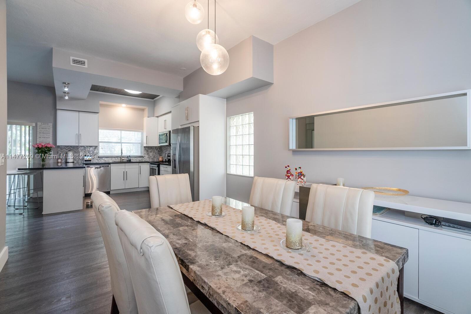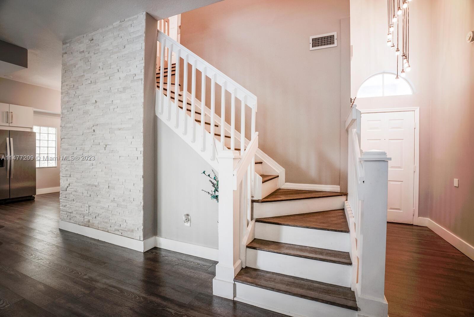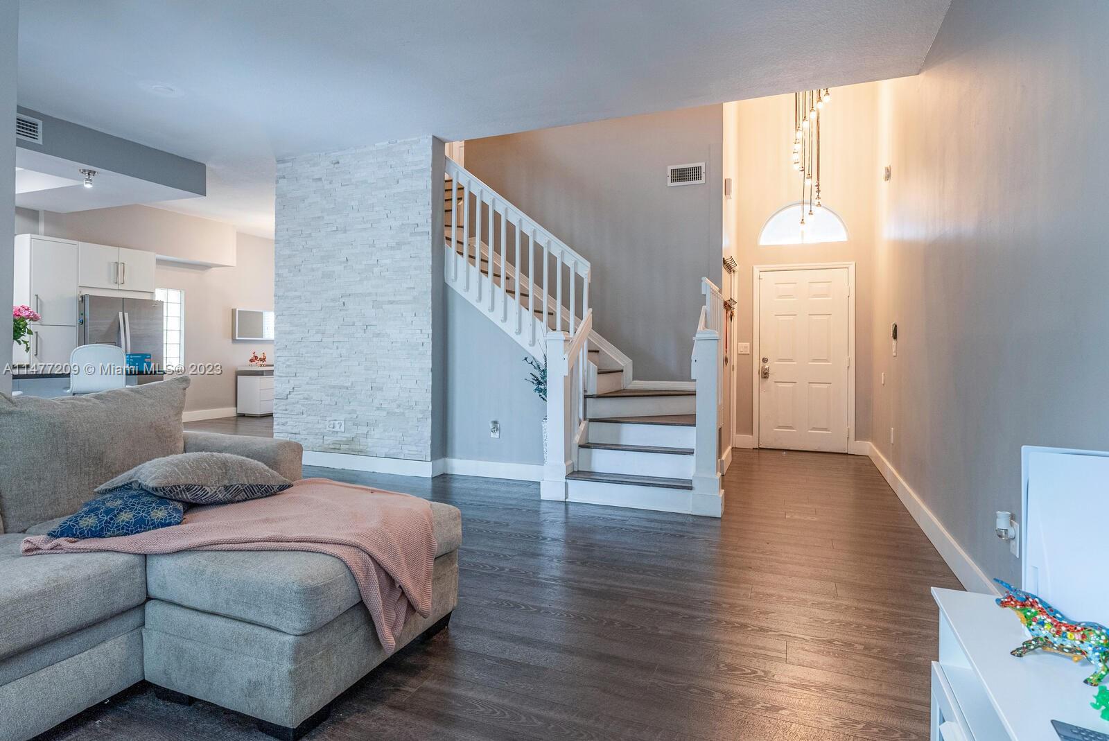 Absolutely gorgeous 2-story home in the gated community of East Lake Hollywood. This home has an open concept living / kitchen area with high ceilings and beautiful wood floors. All 3 bathrooms have been recently renovated with a sleek modern design. The kitchen has stainless steel appliances with a unique ceiling design flowing into the intimate dining room. The master bedroom is enormous with a walk in closet, large bathroom, & private balcony. Central AC is 2020 & the roof is barrel tile. There is a screened in patio for entertainment in addition covered parking garage with an additional storage. The owner is planning to add hedges/trees in the backyard for added privacy. The East Lake community with pool & clubhouse is conveniently located next to shopping, restaurants, & much more.