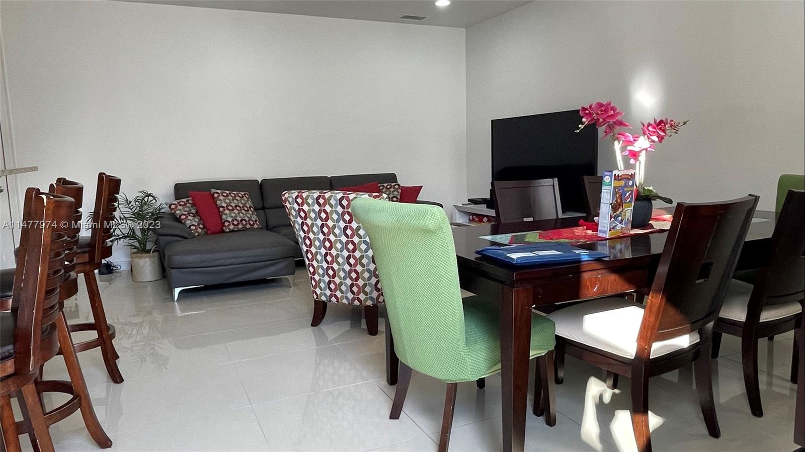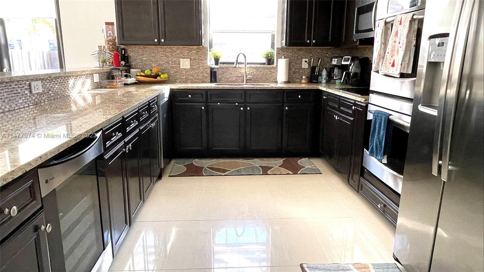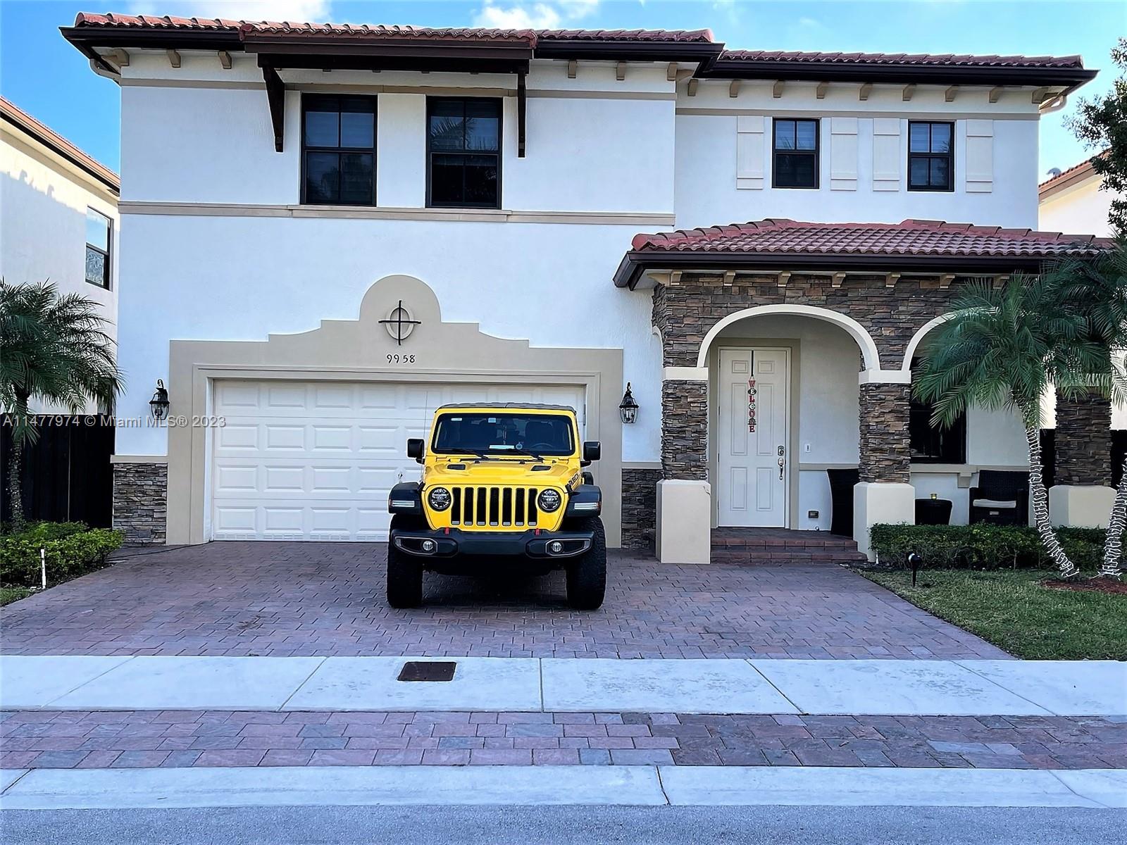 Welcome your family to this elegant and cozy 4-beds, 3.5 baths home in the family-oriented Grand Bay Presidential Estates, a top-three best-kept community in Doral. Experience spacious yet easy-to-maintain living, with a generous kitchen and family room, ss appliances, and granite countertops. Enjoy a formal dining area that can be transformed into a fifth bedroom, kids' playroom, or stunning home office. Porcelanato flooring and wood-style tiles on the upper level. The 5,000 Sqft lot provides a spacious terrace/patio with room for a pool. All beds are sizeable, with an indulgent Grand Master Suite. Delight in the tranquil sights and sounds of the lakefront porch's water fountain. 2 car covered garage, driveway parking for 5 vehicles, and abundant guest parking in the front.