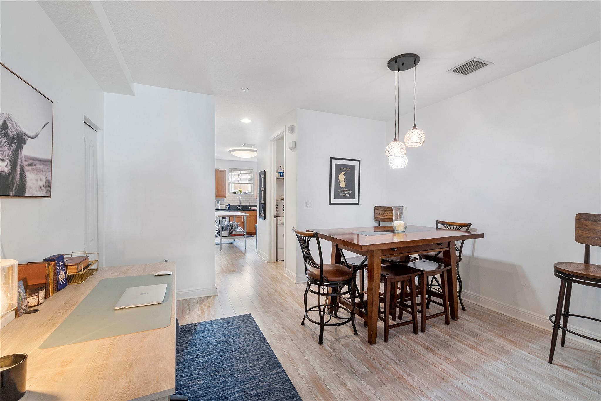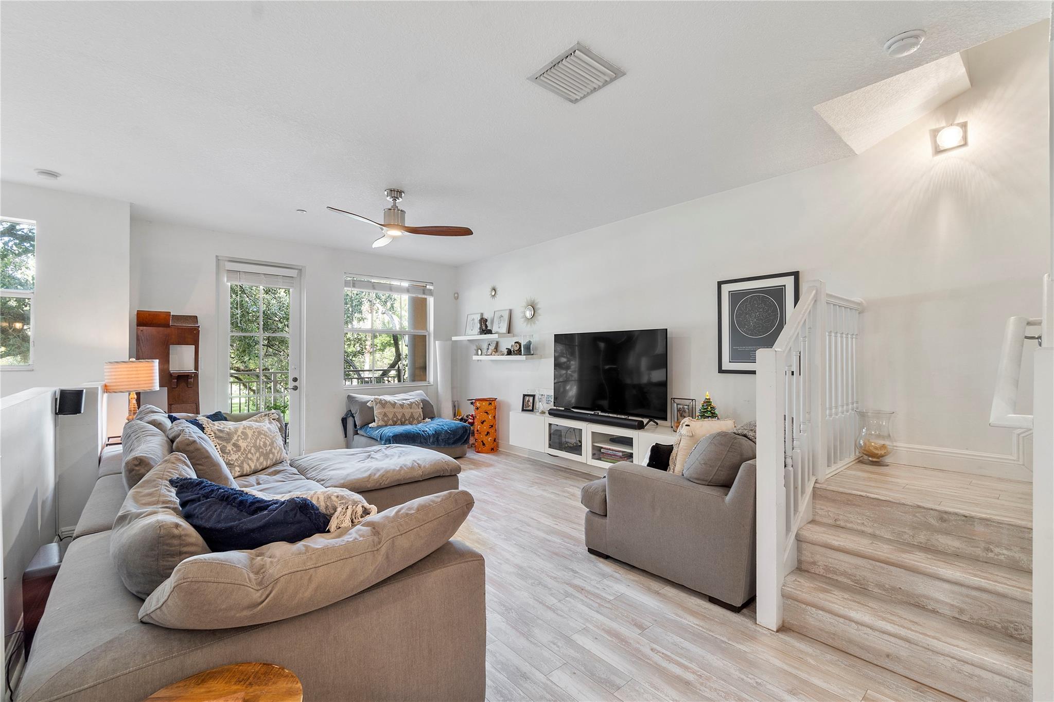 This spacious and bright 2BD + Den, 2.5 BA townhouse is located on a quiet tree-lined street in the cozy Sailboat Bend neighborhood, walking distance to Downtown FTL. Unit features upgraded beachwood flooring, high ceilings, impact windows, and newer AC. First level features upgraded kitchen with subway tile backsplash, wood cabinetry and SS appliances, large living room and formal dining area, half bath, walk-in laundry room, and large balcony. Second level has a den perfect for a home office, 2 large bedrooms with ensuite baths, and private balcony in primary. Pet-friendly community w/ Key West-style architecture & tons of nearby parks. Prime location near I-95/595, shopping, dining, beaches, & Las Olas. One assigned parking spot w/ plenty of street & guest parking, can rent first year.
