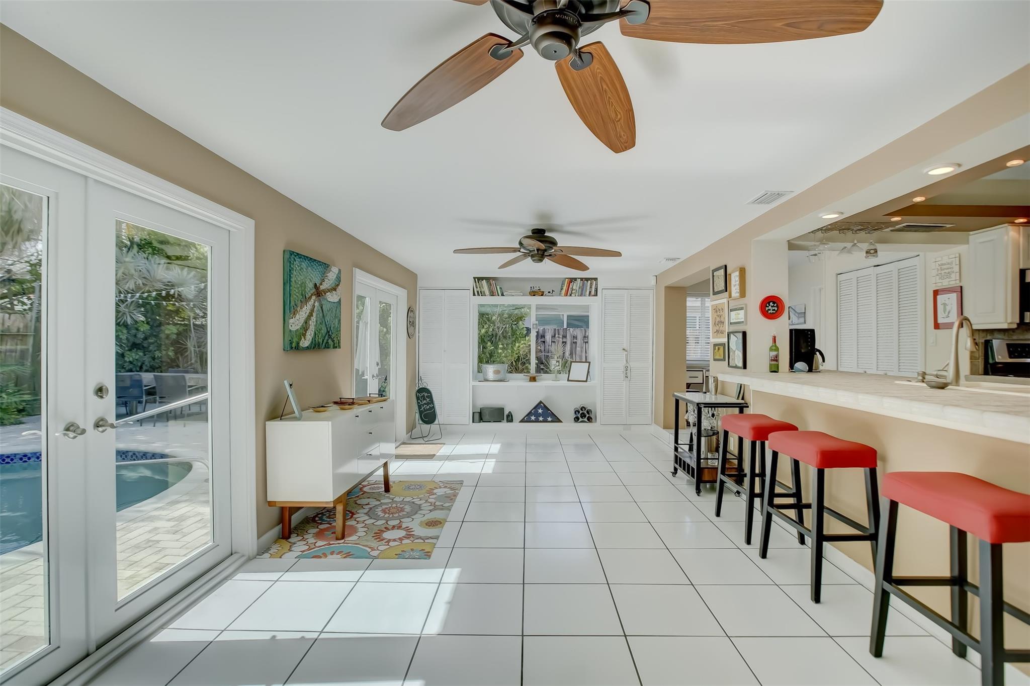 Charming family home in the heart of Imperial Point. Spacious open floor plan with 3 bedrooms and 2 baths. Perfect for entertaining with over 2,100 sq ft with multiple living areas, formal dining area & 500+ sq ft Florida Room. Kitchen offers updated cabinetry, stainless steel appliances & large serving counter & bar. Two sets of French doors offer an abundance of natural light & lead to your tropical oasis of pool area & backyard with lush landscaping offering privacy. Master suite with cabana bath. All impact windows & doors throughout. Large circular brick paver driveway. Oversized corner lot within 2 miles to the beach. Prime location with sidewalk lined street perfect for kids. Highly rated McNab elementary district & very close proximity to Pine Crest, Westminster & Cardinal Gibbons.