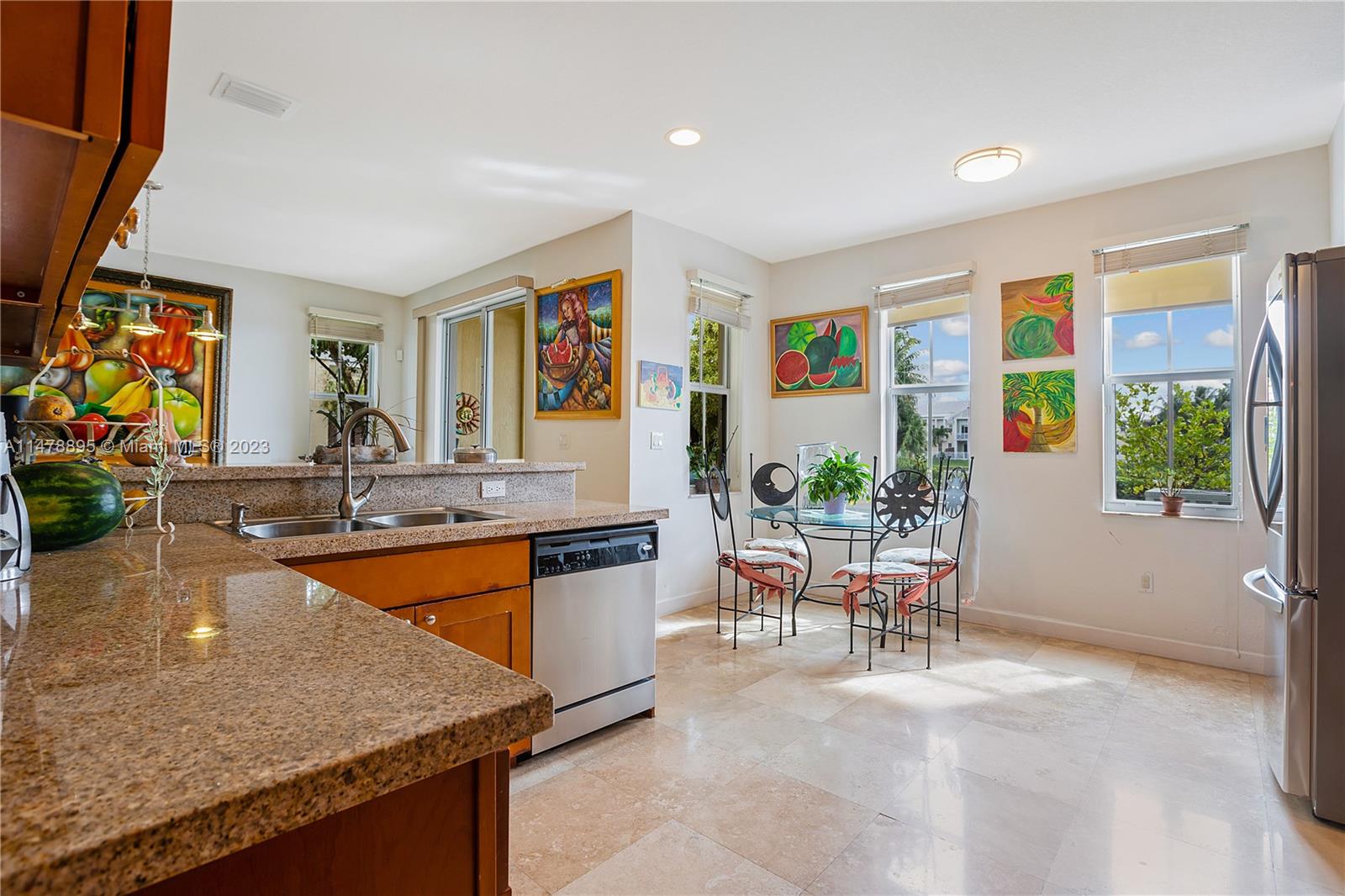 This 4-bedroom, 3.5-bathroom home in the Reserve at Doral boasts an open kitchen with stainless steel appliances, beautiful floors, wood stairs with glass railings, and a double garage. The master bedroom features an open balcony with lake views. Located in a well-kept community in the heart of Doral, this home offers both beauty and convenience.