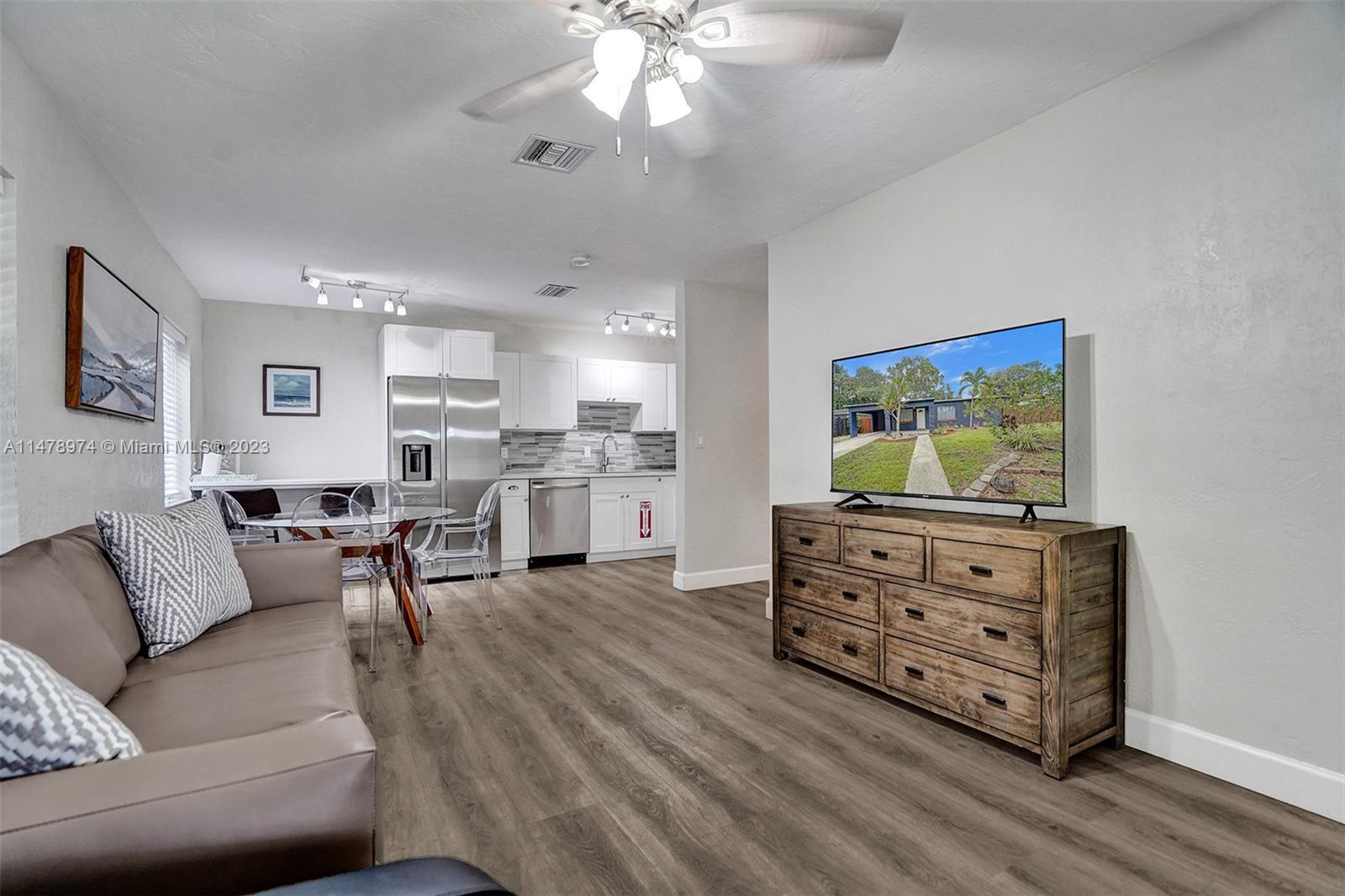Turn-key Vacation Rental in heart of Ft Lauderdale! Consists of 3/1 home and attached studio apartment-Two rental opportunities! Brand new roof as of 10/31/23! Renovated with modern kitchen with S/S appliances, new bathrooms, new central A/C & water heater, exterior & interior paint & artificial turf. Can easily be converted back to 4/2 home with master suite-designed this way. Each unit has private entrance and private fenced outdoor areas. There's more! Huge backyard lot with side gated entrance has space for pool and massive backyard or use this separated space for outdoor storage/extra rental income! Current furnishings to operate vacation rental can be included in sale! Don't miss this!Tree-lined quiet residential street,central location,fruit trees, shed, multiple income streams!