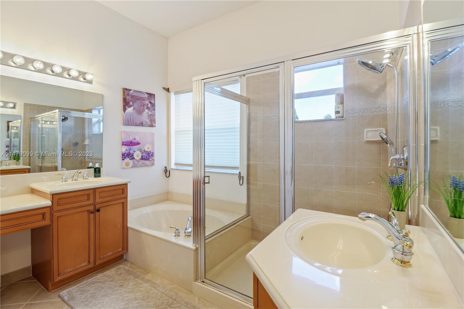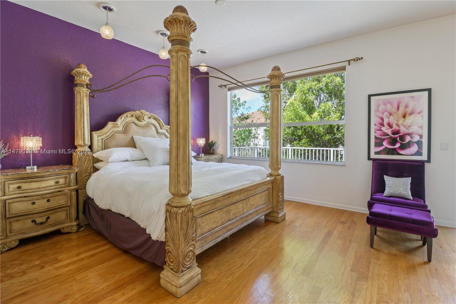 Beautiful two-story 4/3 with one bed and full bath downstairs in the highly desired neighborhood of Riviera isles. This home boosts a generous layout with high-volume ceilings, tile floors throughout and a renovated spacious kitchen that is a chefs dream. High-end appliances, double oven, and top-of-the-line quartz countertops. Large master with private balcony, walk in closet and spa retreat bathroom. Separate laundry room. 2 car garage with plenty of storage. Large patio and backyard. Hurricane impact protection. Conveniently located near excellent schools, shopping, and entertainment which great for families. Low HOA. Resort style community with 24hr security, has a clubhouse with a pool, playground, picnic area, tennis and basketball courts, gym, biking path and much more!