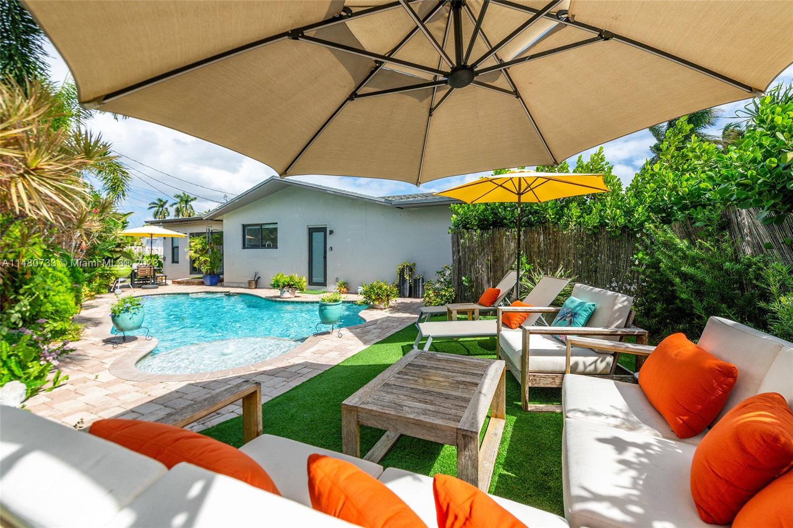 Welcome to 3147 Tyler Street. This beautiful home was completely remodeled in 2018 and professionally designed inside and out with special attention to detail. 100% impact resistant windows, doors and garage door. Enjoy the Open concept living area, 4 large bedrooms with two of those bedrooms having ensuite bathrooms. The third bathroom is accessible from the main hallway and is perfect for the additional two bedroom and your guests. Wood-look tile throughout. Large separate laundry room with custom shelving. Outside you will love the perfectly curated pool area with custom landscaping, automatic LED landscape lighting around the entire home as well as automatic sprinklers. Enjoy the privacy of this corner lot.