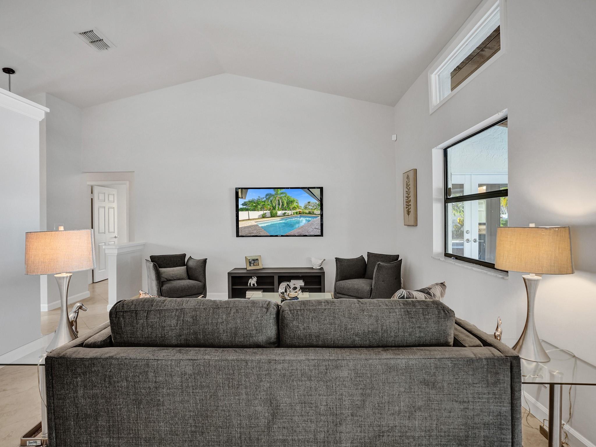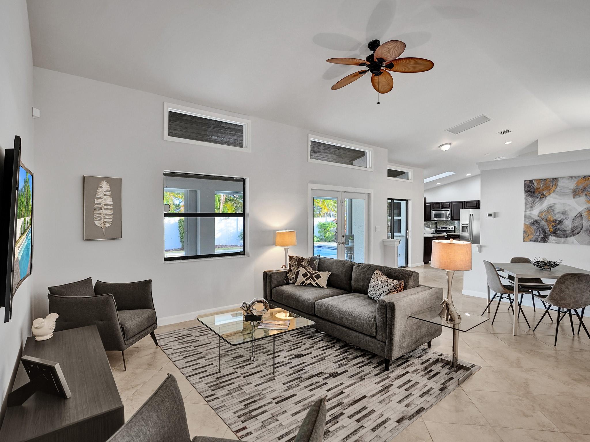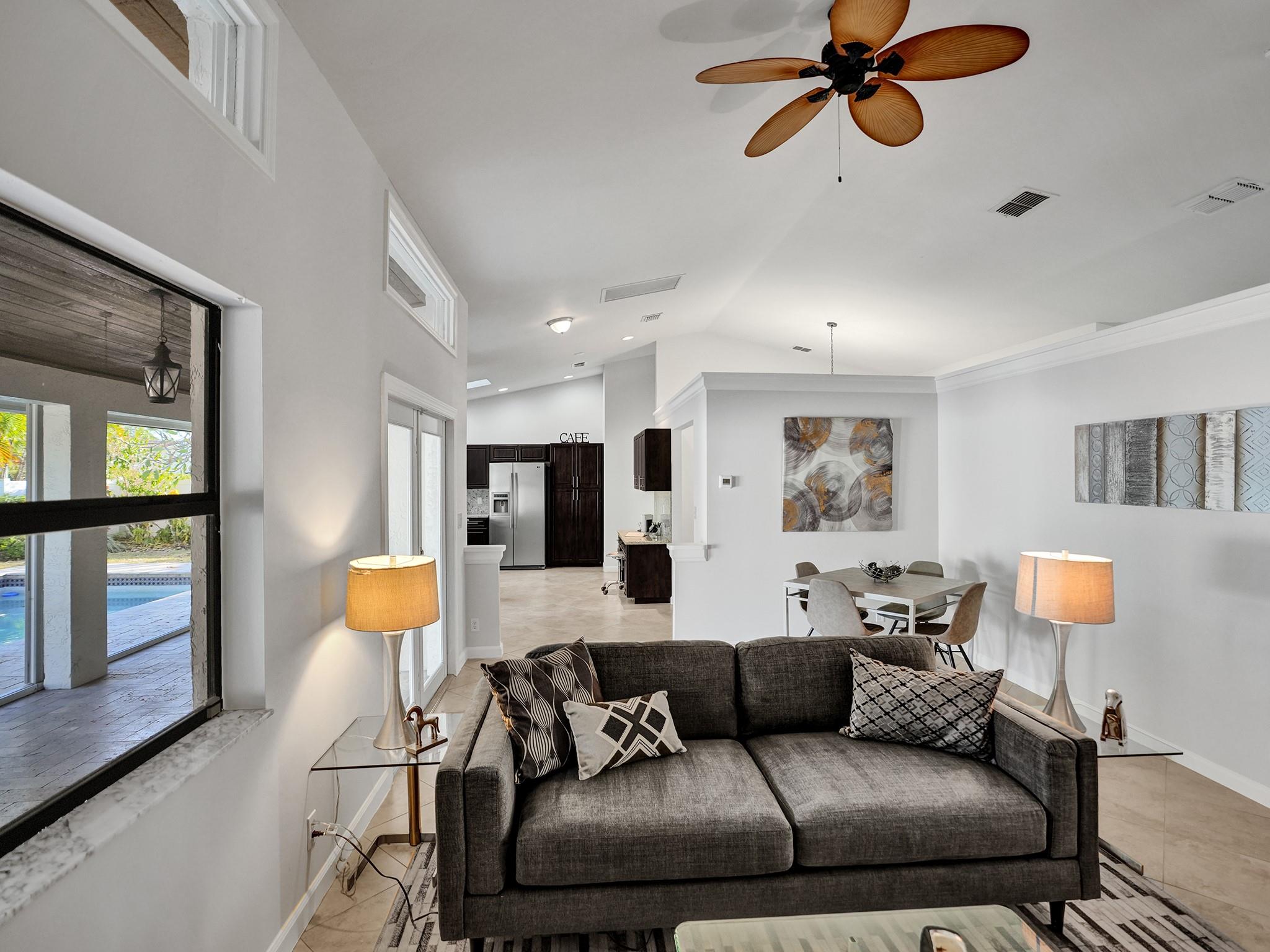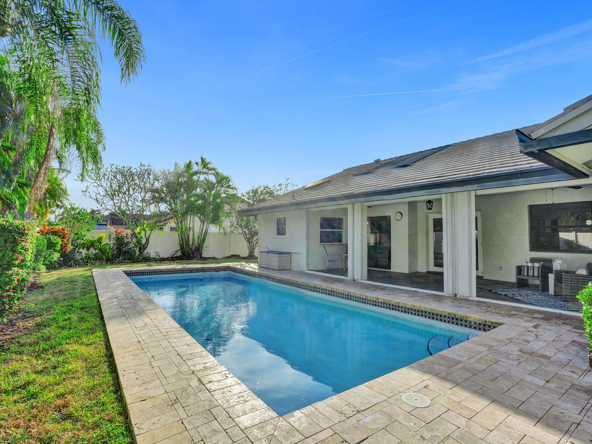 You will love the light, airy, immaculately maintained 3 bed, 3 bath pool home with vaulted ceilings, on a large corner lot in beautifully maintained Weston. Improvements in 2023 include new paint, new bathroom renovation, new flooring, popcorn ceiling removal, new window treatments, interior and exterior lighting improvements, & newer Trane AC (2020). A high fence around the beautifully landscaped pool area provides privacy, and impact windows and doors provide peace of mind. For only $340 a year, Bonaventure Towne Center Club amenities include 2 pools, a wonderful gym, bowling, billiards, tennis, pickleball, basketball, skating rink, fitness/lifestyle classes, & recreational programs for kids and adults. Value, privacy, security, and amenities galore…this home has it all. Come and see!