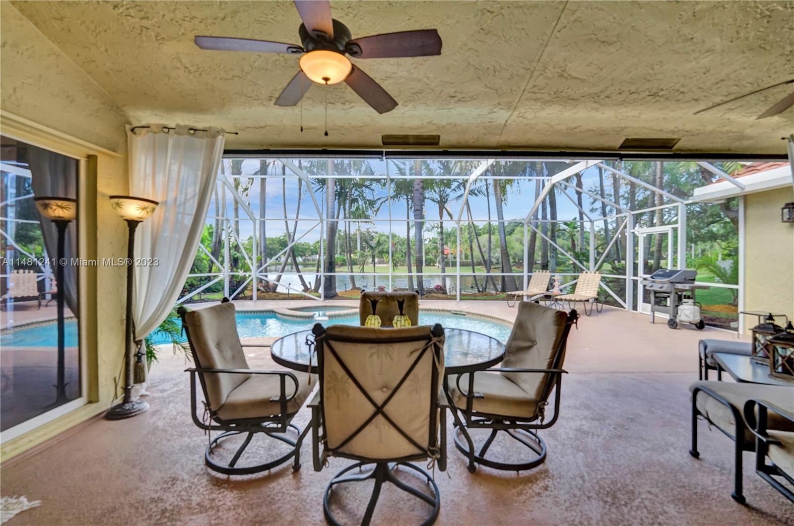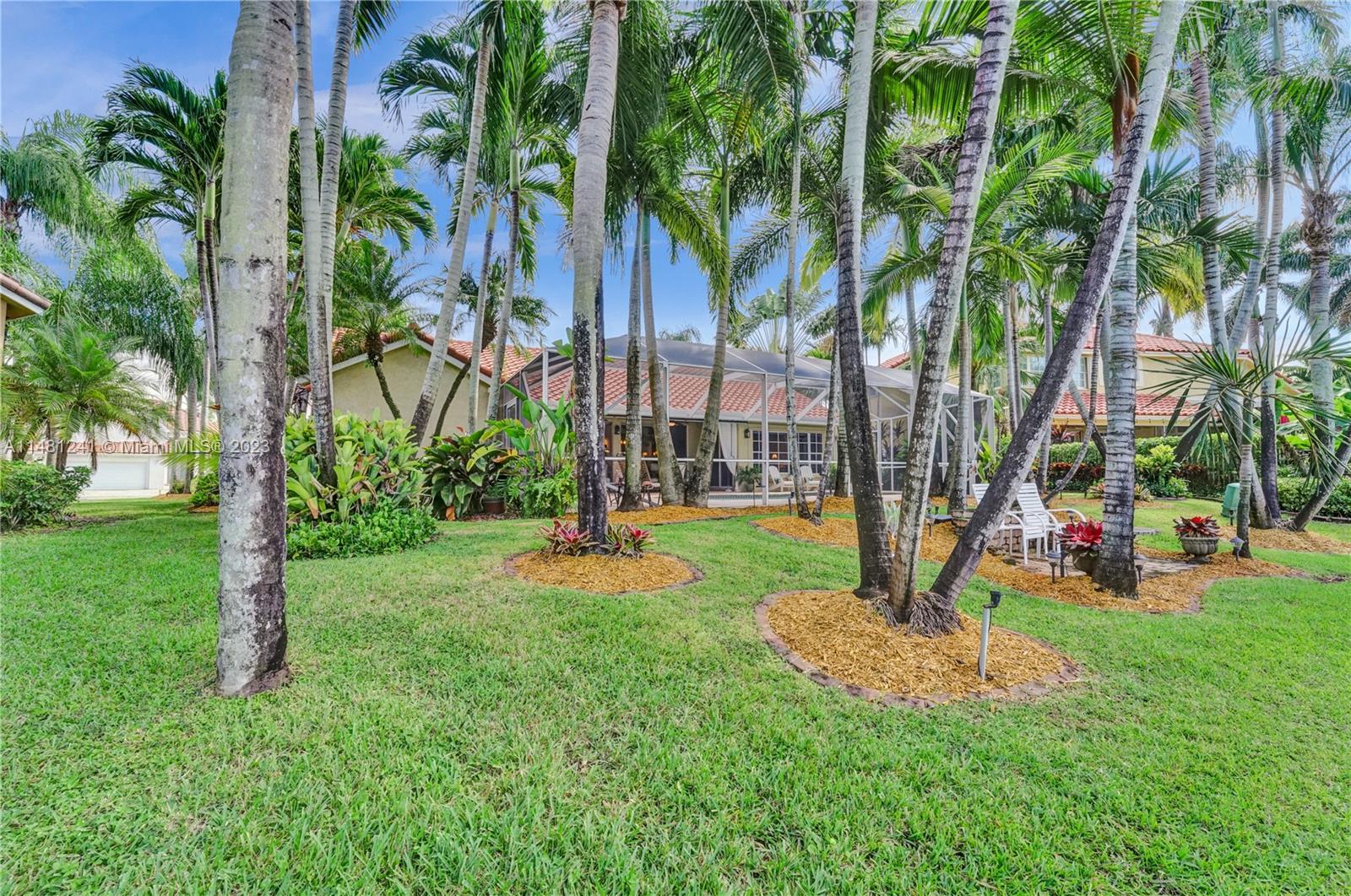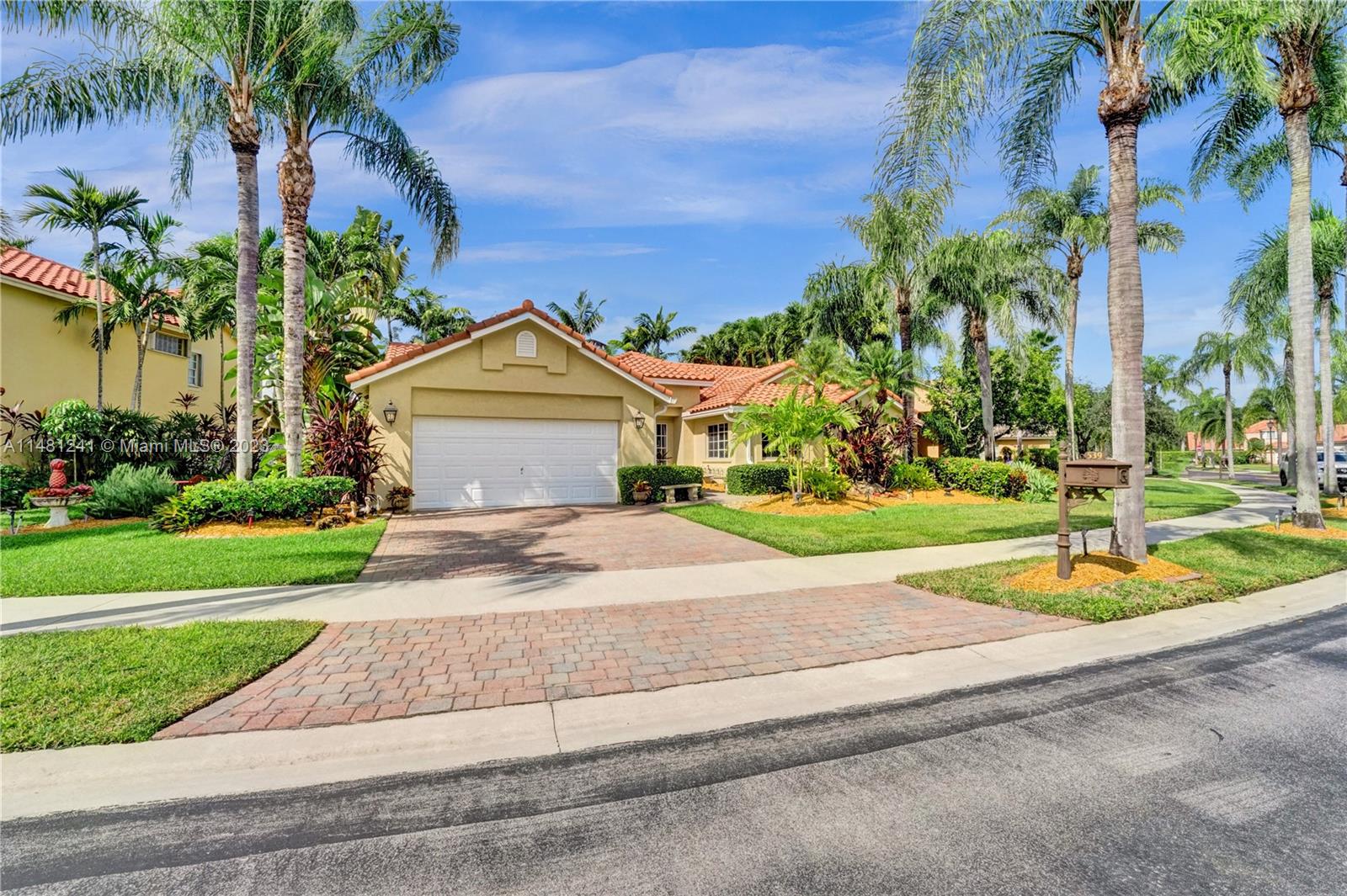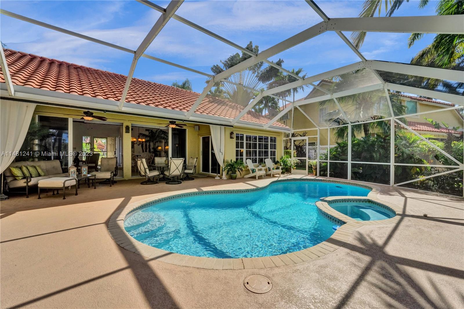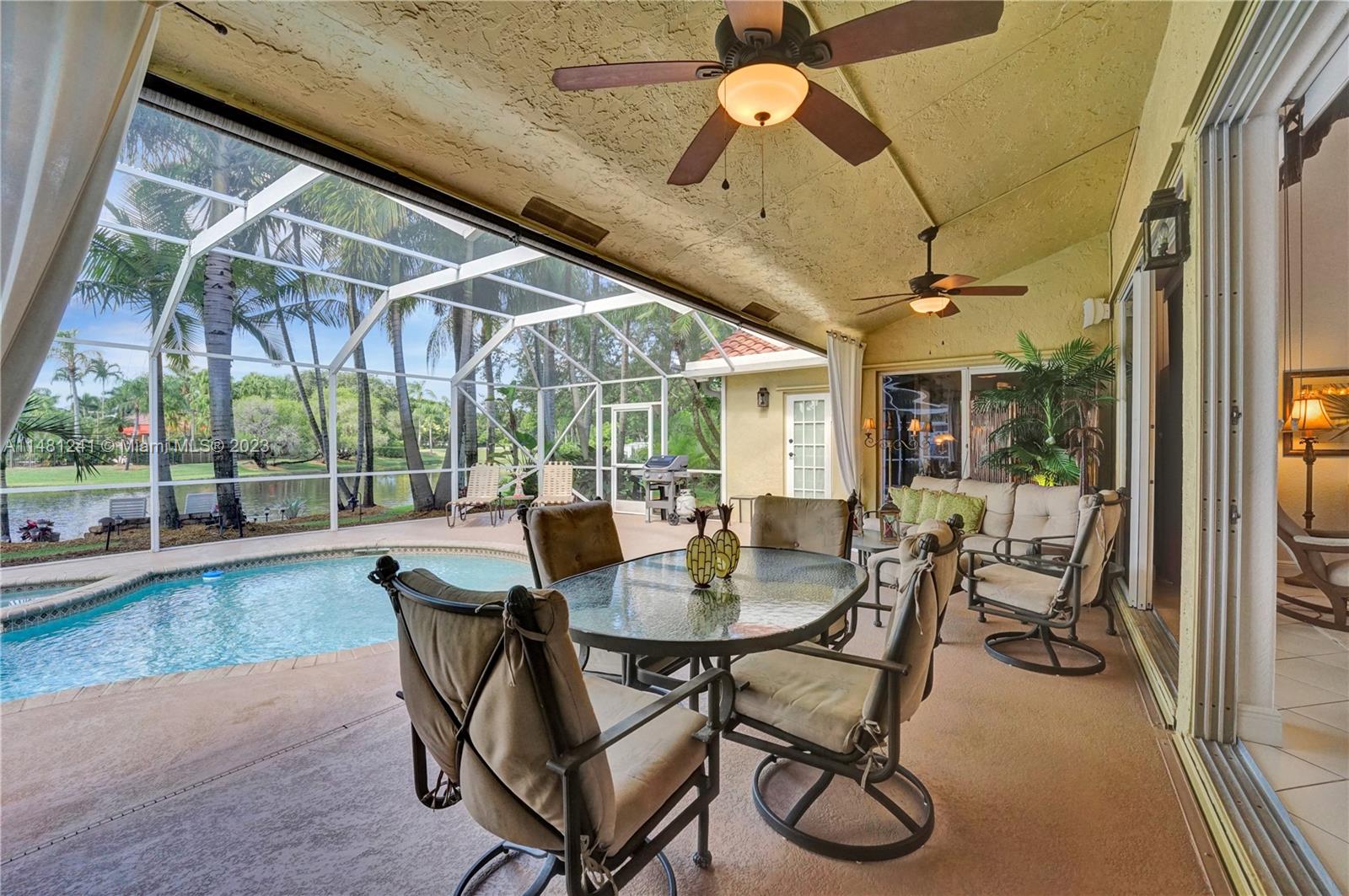 Nestled in a tranquil cul-de-sac, this vibrant waterfront gem is one of just 106 homes in an intimate enclave. Impeccable, cozy New Orleans-inspired haven offering peaceful views & lush tropical surroundings. Updated interior, including tile/ porcelain floors & designer bathrooms. Roomy kitchen with plenty of storage & work space, wood cabinetry, stone counters, wine-cooler & stainless appliances. Outdoor living at its best, sparkling heated pool and spa, surrounded by over $60,000 in professional landscaping & outdoor lighting. Charming brick pavers and brass lanterns compliment the exterior. Updated pool equipment, A/C, water heater, storm-rated garage door & lake-fed irrigation. Community pool and clubhouse. Convenient to schools, parks & houses of worship. The roof was replaced 2006.