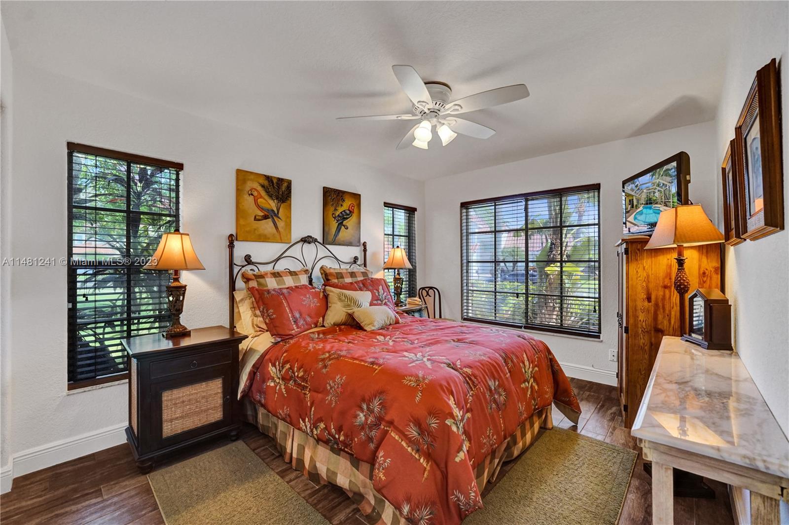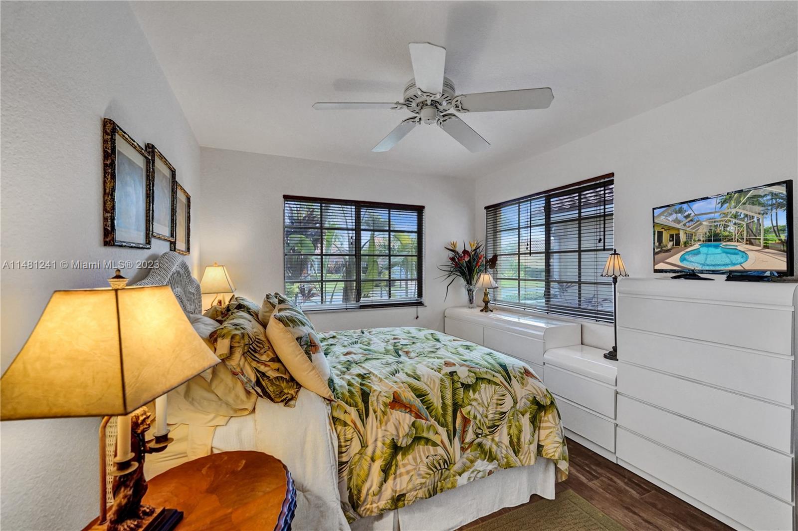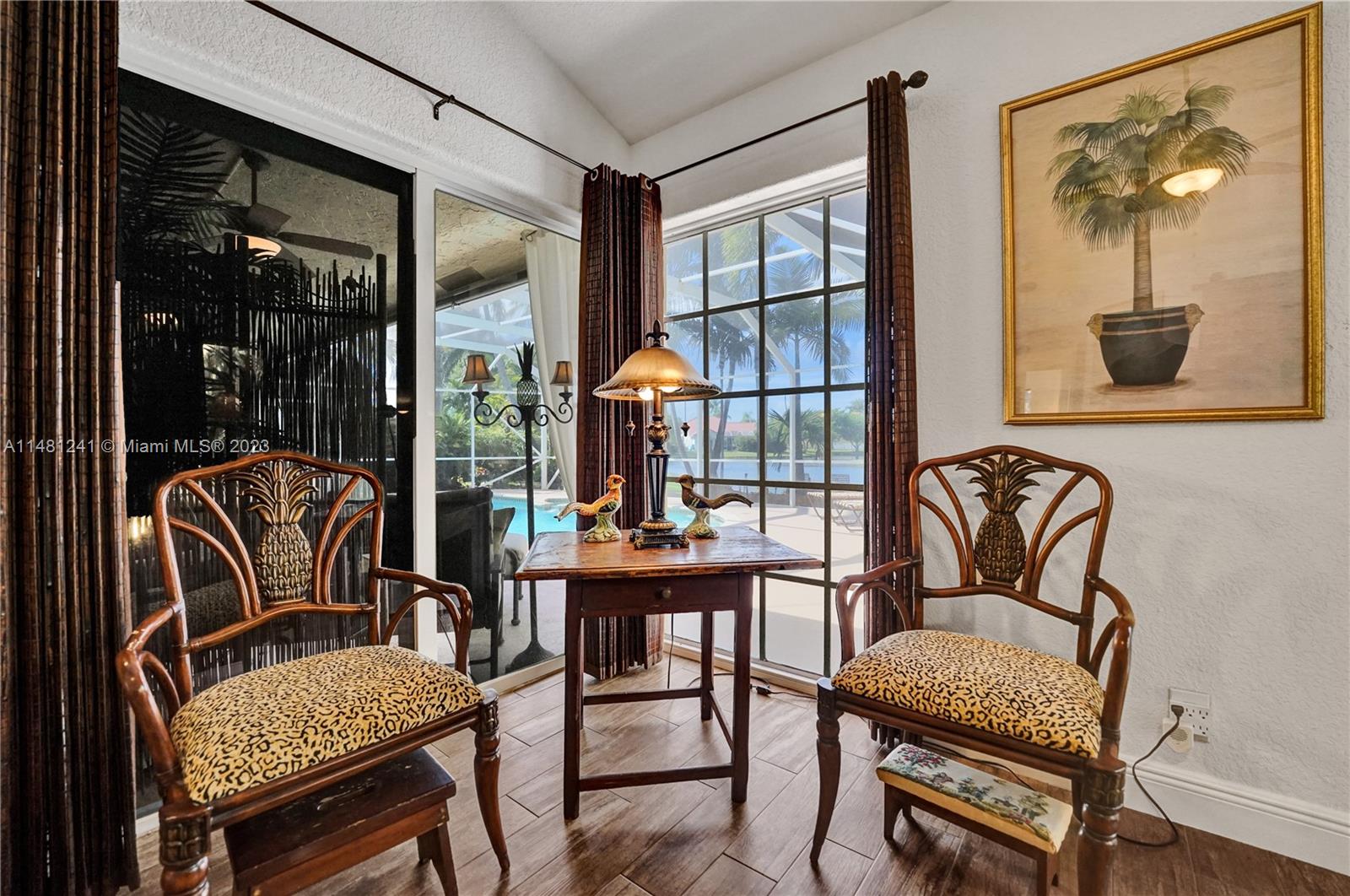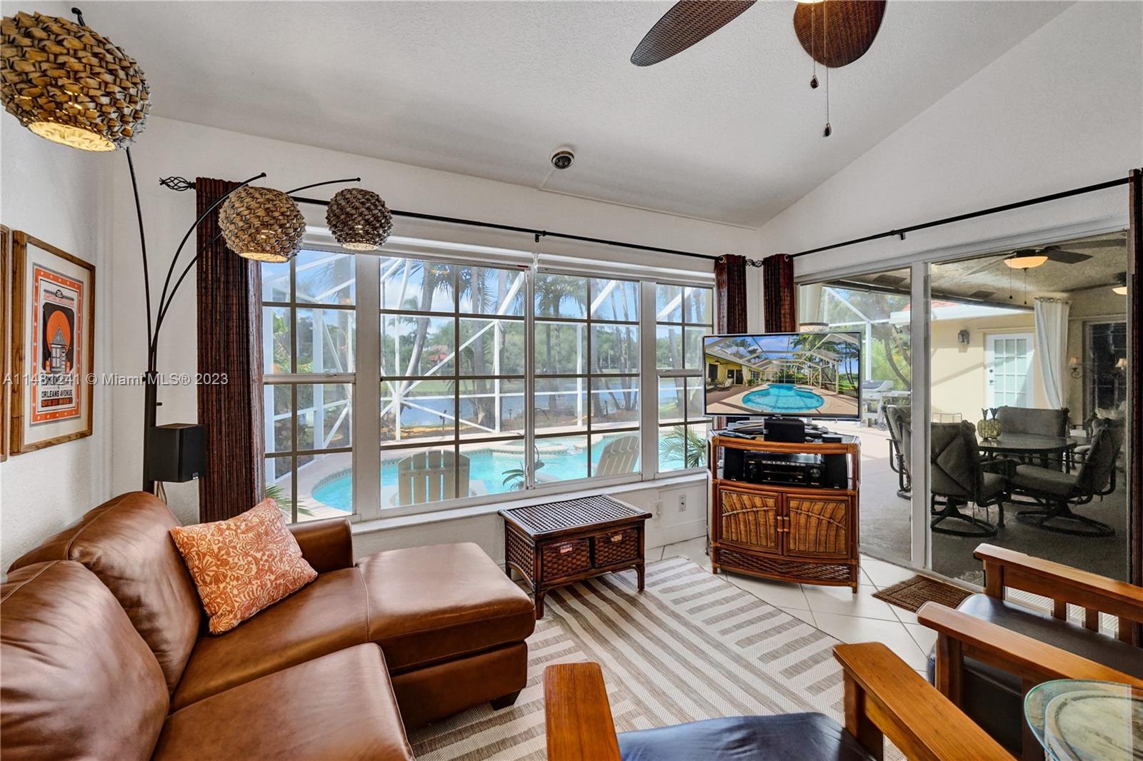 Nestled in a tranquil cul-de-sac, this vibrant waterfront gem is one of just 106 homes in an intimate enclave. Impeccable, cozy New Orleans-inspired haven offering peaceful views & lush tropical surroundings. Updated interior, including tile/ porcelain floors & designer bathrooms. Roomy kitchen with plenty of storage & work space, wood cabinetry, stone counters, wine-cooler & stainless appliances. Outdoor living at its best, sparkling heated pool and spa, surrounded by over $60,000 in professional landscaping & outdoor lighting. Charming brick pavers and brass lanterns compliment the exterior. Updated pool equipment, A/C, water heater, storm-rated garage door & lake-fed irrigation. Community pool and clubhouse. Convenient to schools, parks & houses of worship. The roof was replaced 2006.