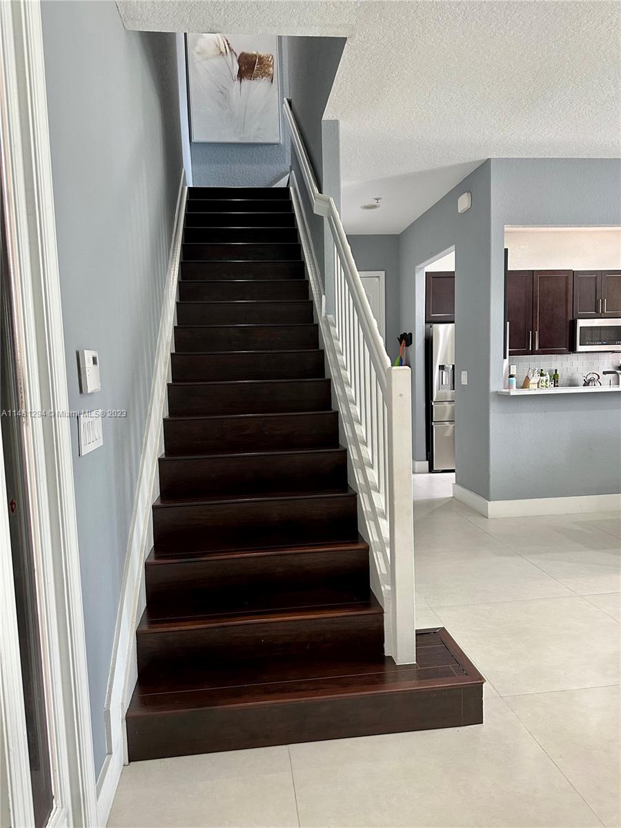 MOTIVATED SELLER! This meticulously maintained 3 bed/ 2.5 bath townhome in highly sought after community of Montclair has it all. Downstairs there's a spacious dining room/living room combo with sleek tile flooring, a powder room, and kitchen complete with updated stainless steel appliances (2021), marble countertops and custom backsplash. Upstairs, there is the master suite with a fully updated bathroom complete with a freestanding tub and glass enclosed shower, 2 guest bedrooms, guest bath, laundry room, and a large loft space that could be used as a second living room. Some other features include new paint (2022), new garage door motor (2023), impact windows.