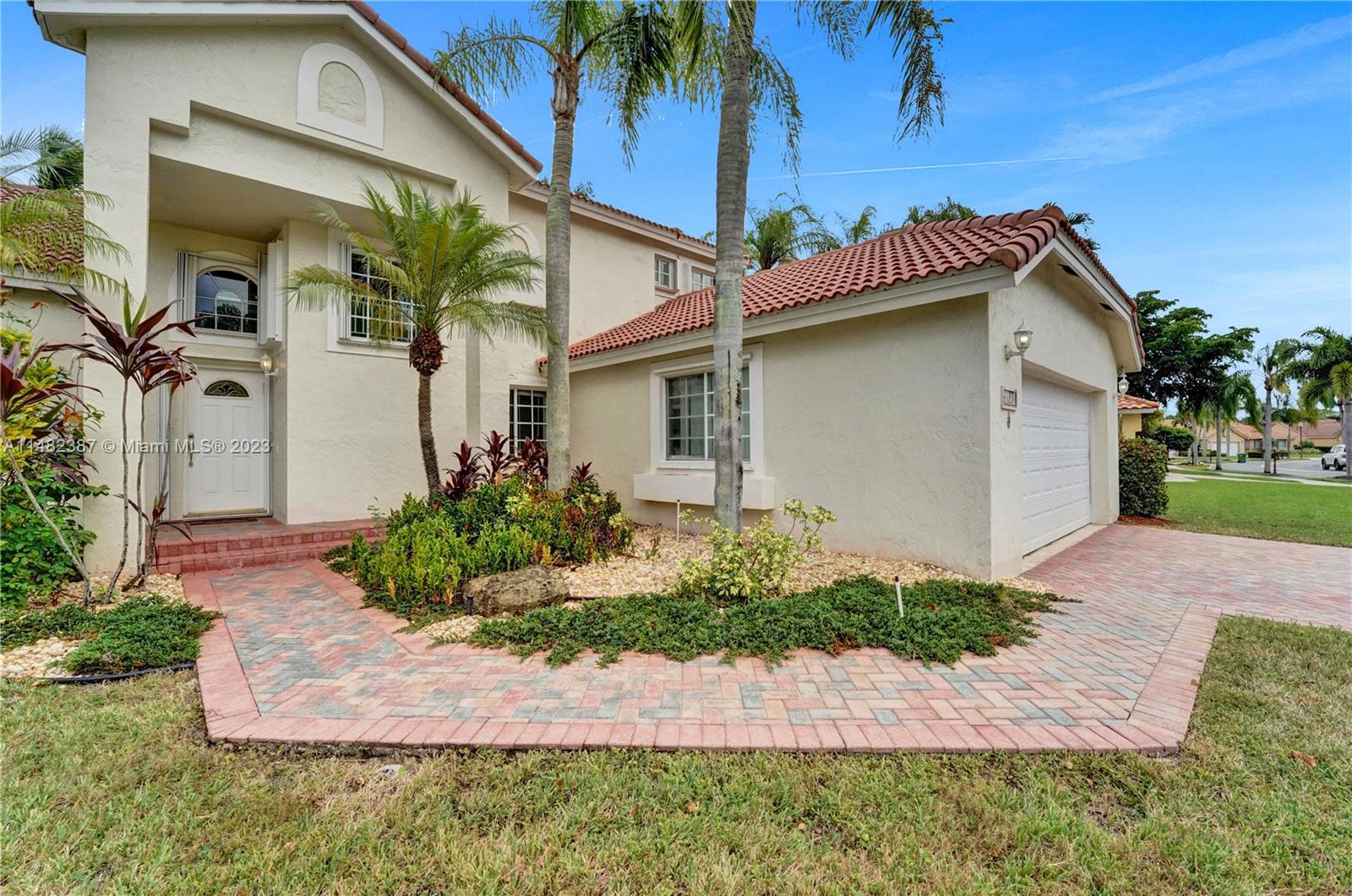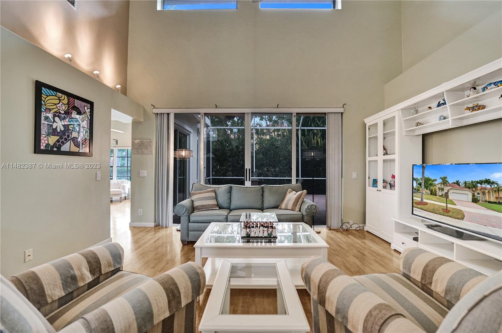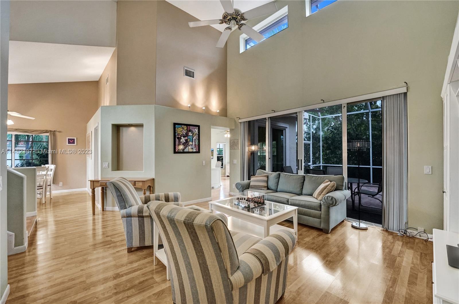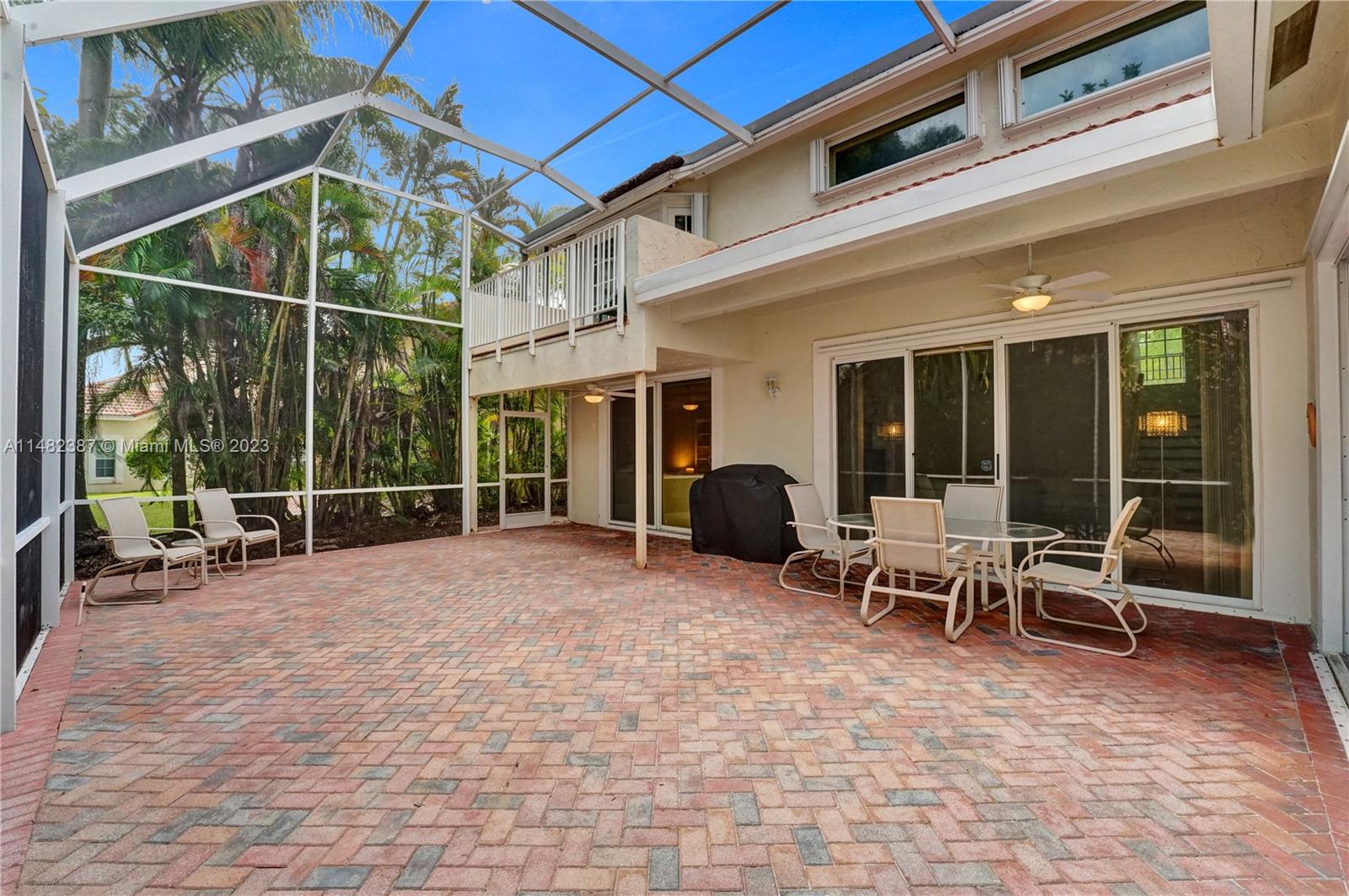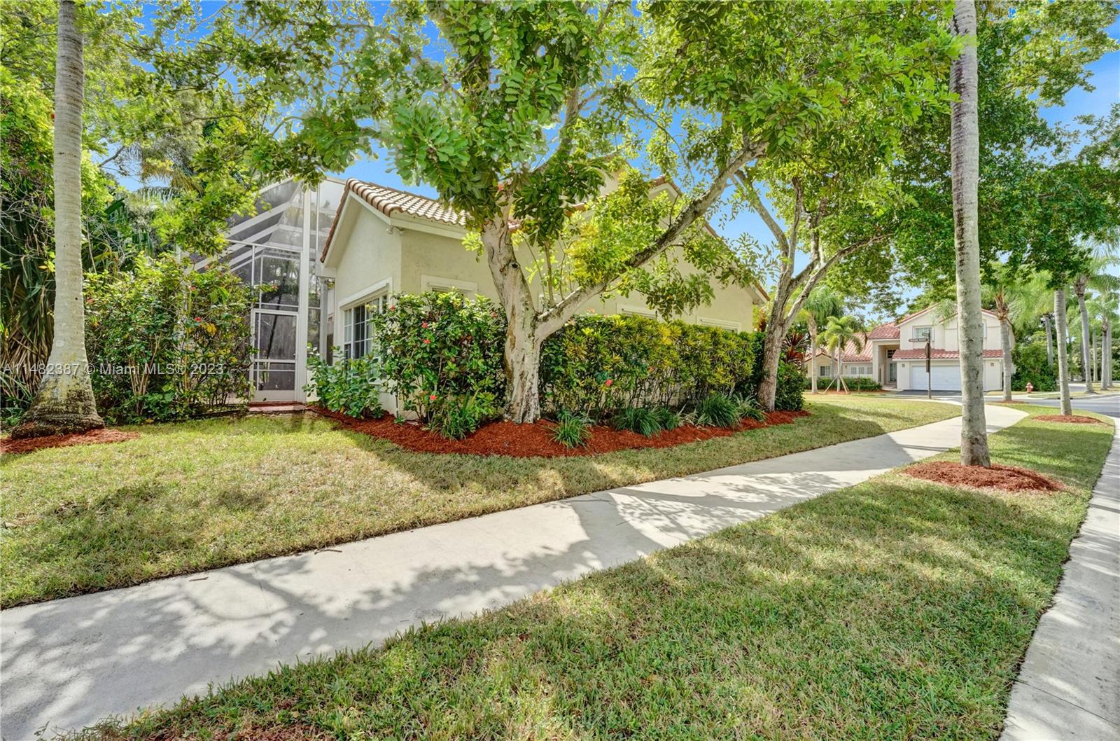 Amazing opportunity at the very desirable Laguna Springs II. An unbeatable value in a prime corner location. Generous living space with high ceilings and tall glass sliding doors that give a bright, airy, and open feel. Two convenient bedrooms at ground level, bathroom + dining, living, and family rooms. 2nd level with brand-new, stylish flooring, ample primary suite with balcony, large en-suite bathroom, and deep walk-in closet. Enjoy the screened patio with brick pavers & room for a pool. Full storm protection including windows and garage door. Additional features include the recently updated A/C unit and barrel tile roof installed in 2006. Within close distance of the community clubhouse and pool. You're just a stone's throw from Indian Trace Elementary School, parks, Chabad & church.