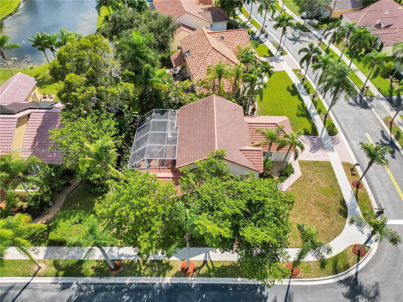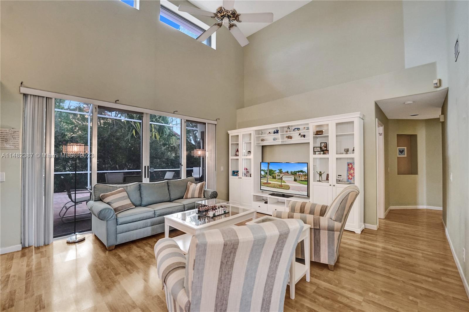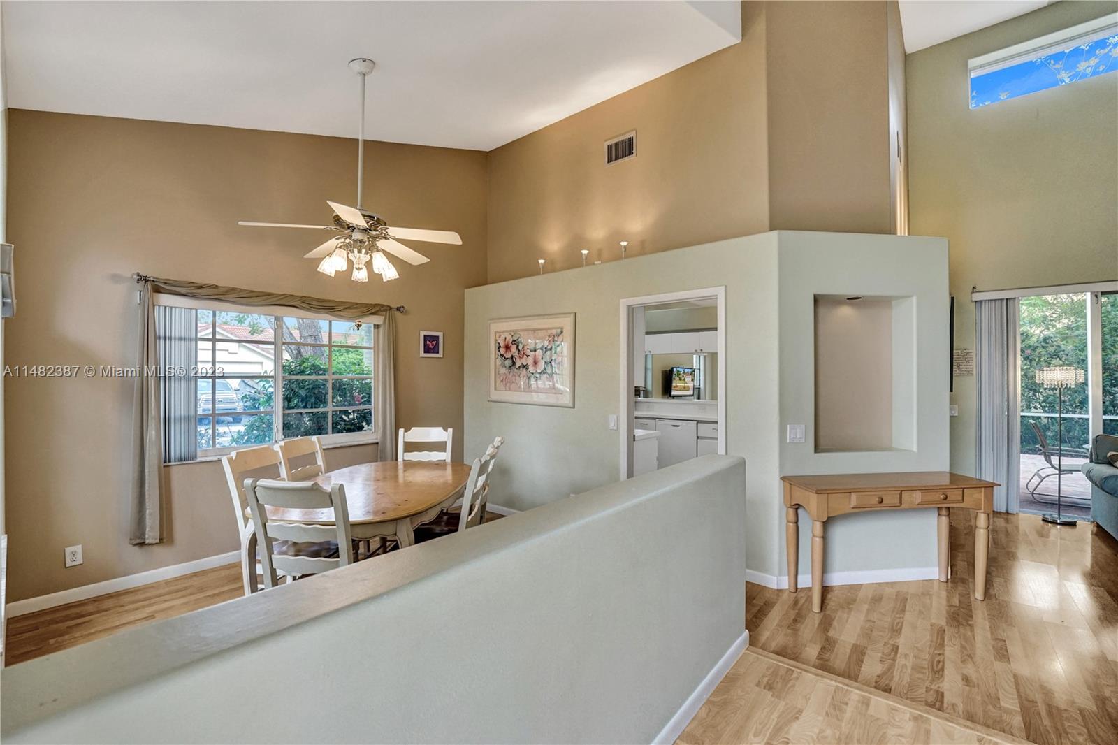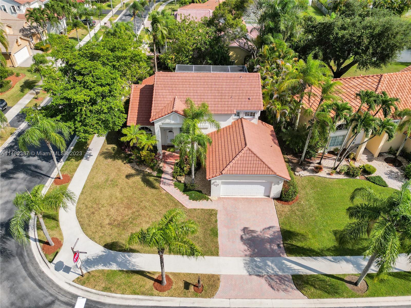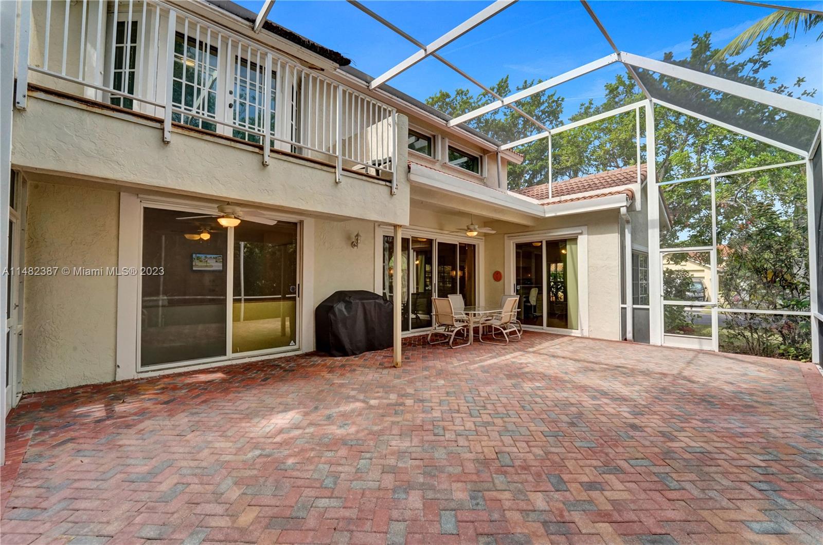 Amazing opportunity at the very desirable Laguna Springs II. An unbeatable value in a prime corner location. Generous living space with high ceilings and tall glass sliding doors that give a bright, airy, and open feel. Two convenient bedrooms at ground level, bathroom + dining, living, and family rooms. 2nd level with brand-new, stylish flooring, ample primary suite with balcony, large en-suite bathroom, and deep walk-in closet. Enjoy the screened patio with brick pavers & room for a pool. Full storm protection including windows and garage door. Additional features include the recently updated A/C unit and barrel tile roof installed in 2006. Within close distance of the community clubhouse and pool. You're just a stone's throw from Indian Trace Elementary School, parks, Chabad & church.