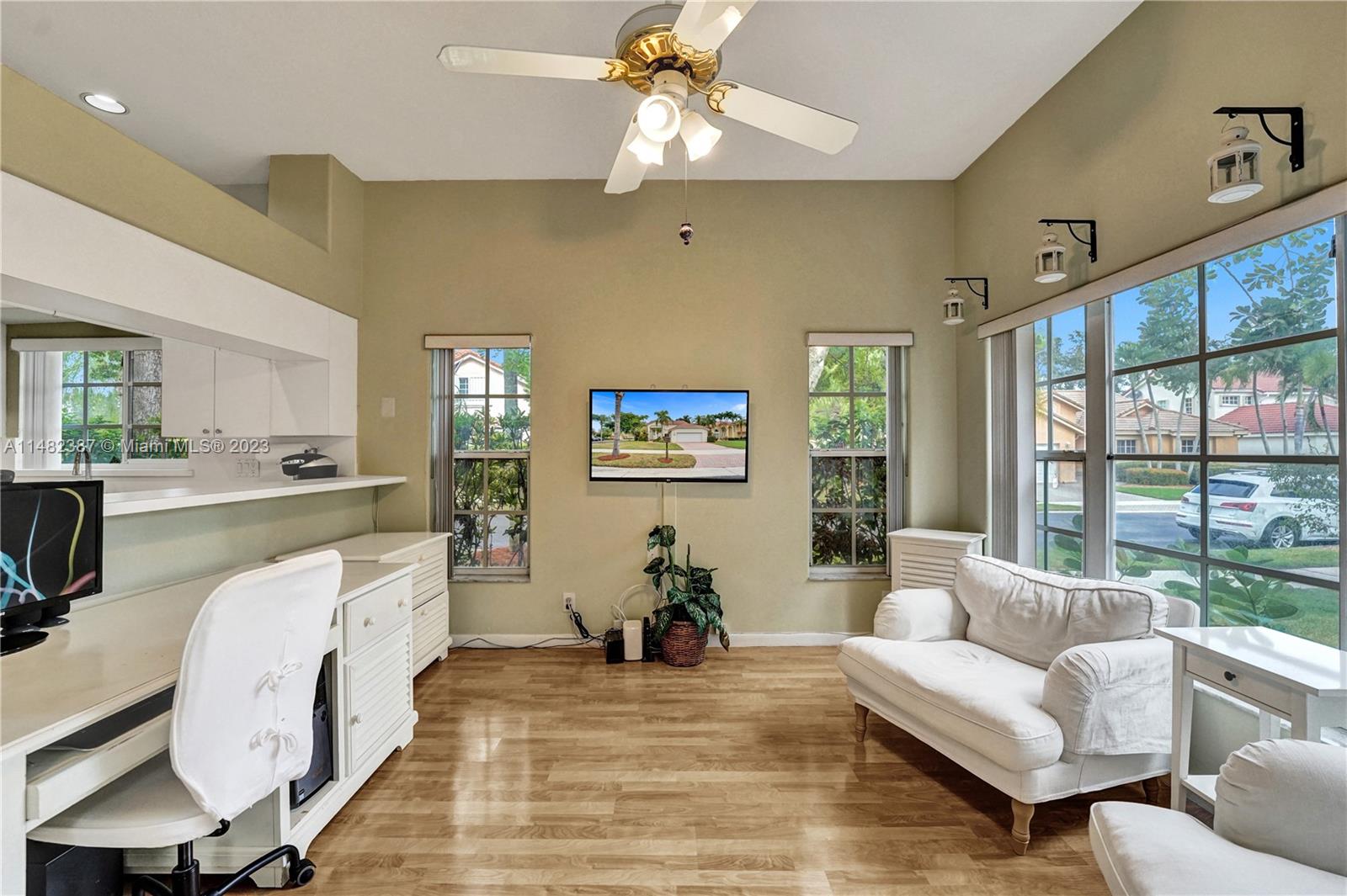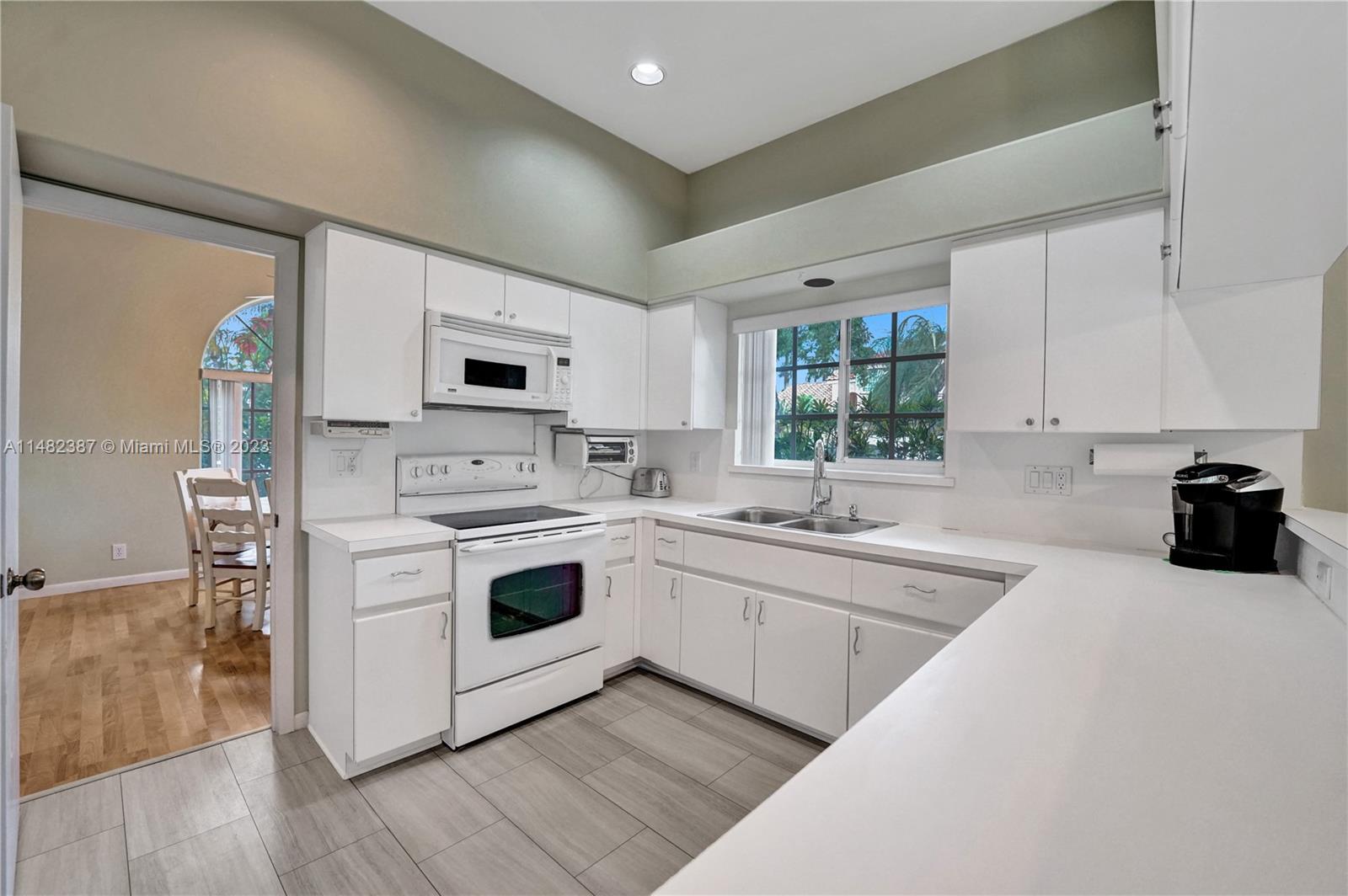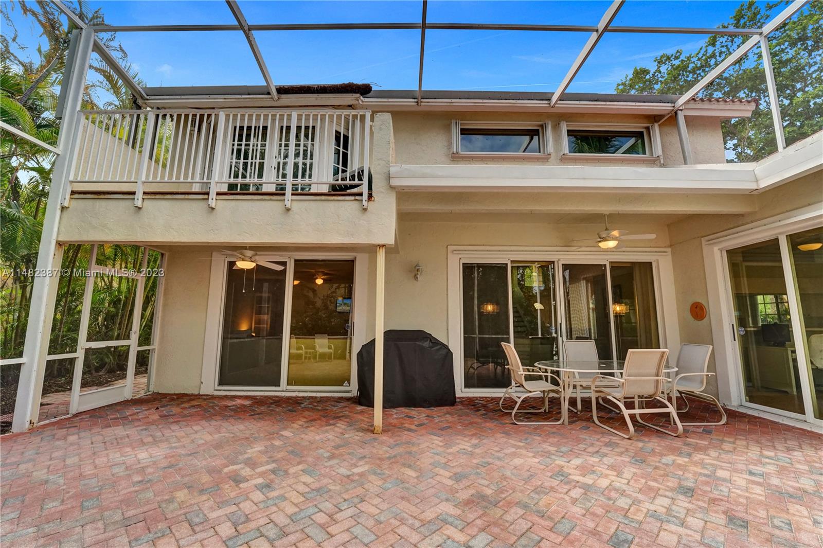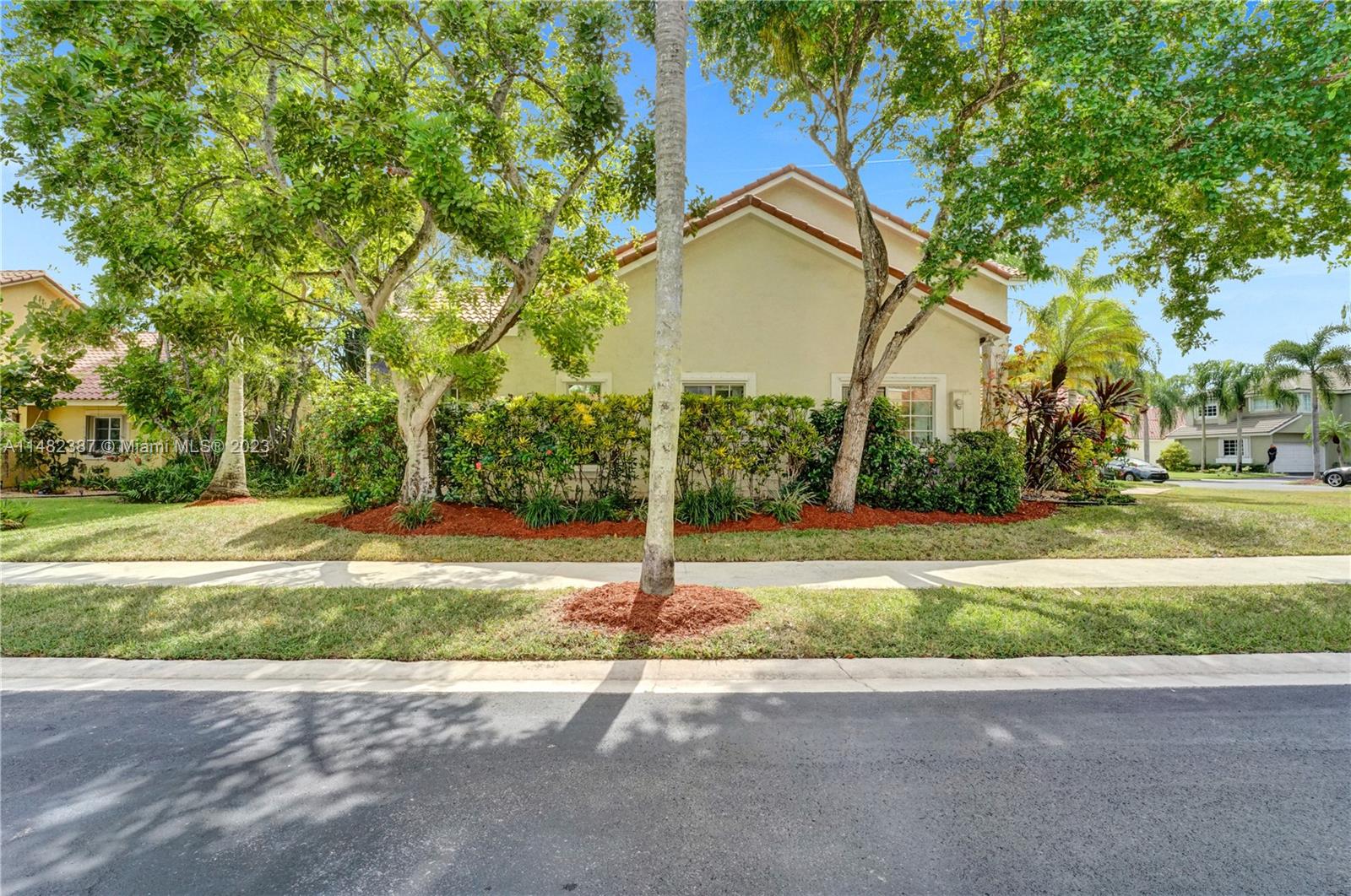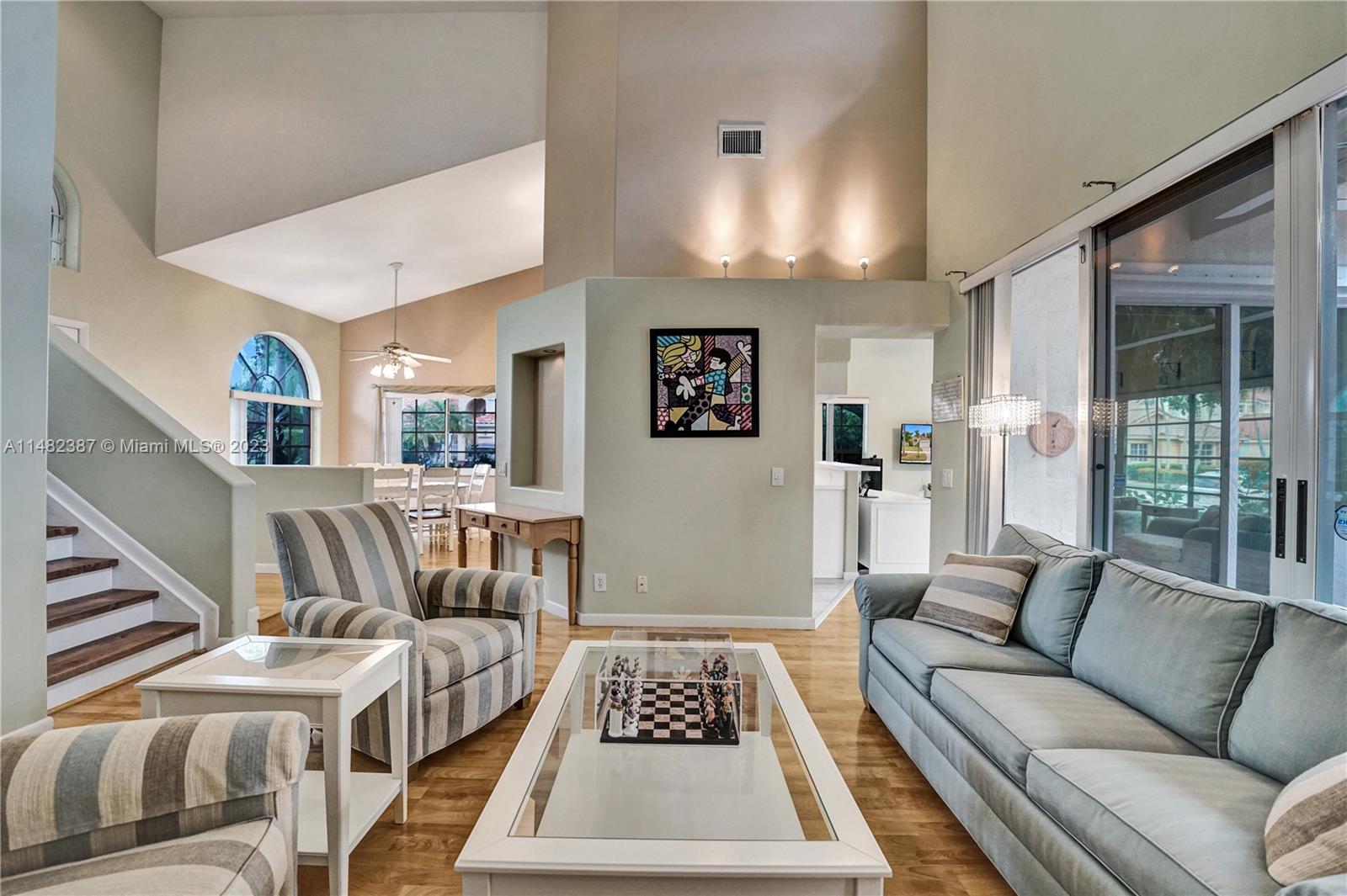 Amazing opportunity at the very desirable Laguna Springs II. An unbeatable value in a prime corner location. Generous living space with high ceilings and tall glass sliding doors that give a bright, airy, and open feel. Two convenient bedrooms at ground level, bathroom + dining, living, and family rooms. 2nd level with brand-new, stylish flooring, ample primary suite with balcony, large en-suite bathroom, and deep walk-in closet. Enjoy the screened patio with brick pavers & room for a pool. Full storm protection including windows and garage door. Additional features include the recently updated A/C unit and barrel tile roof installed in 2006. Within close distance of the community clubhouse and pool. You're just a stone's throw from Indian Trace Elementary School, parks, Chabad & church.