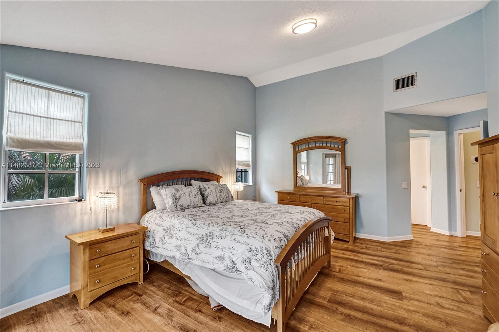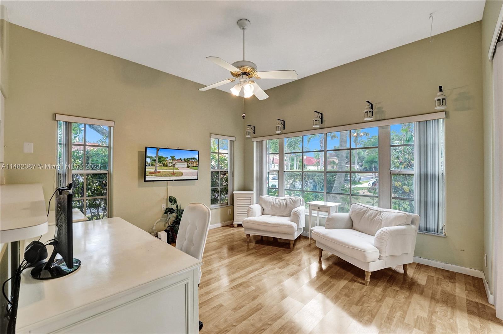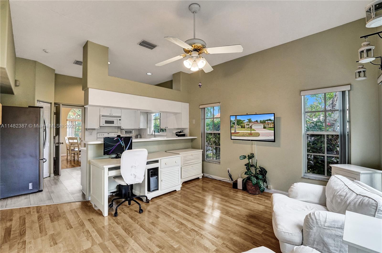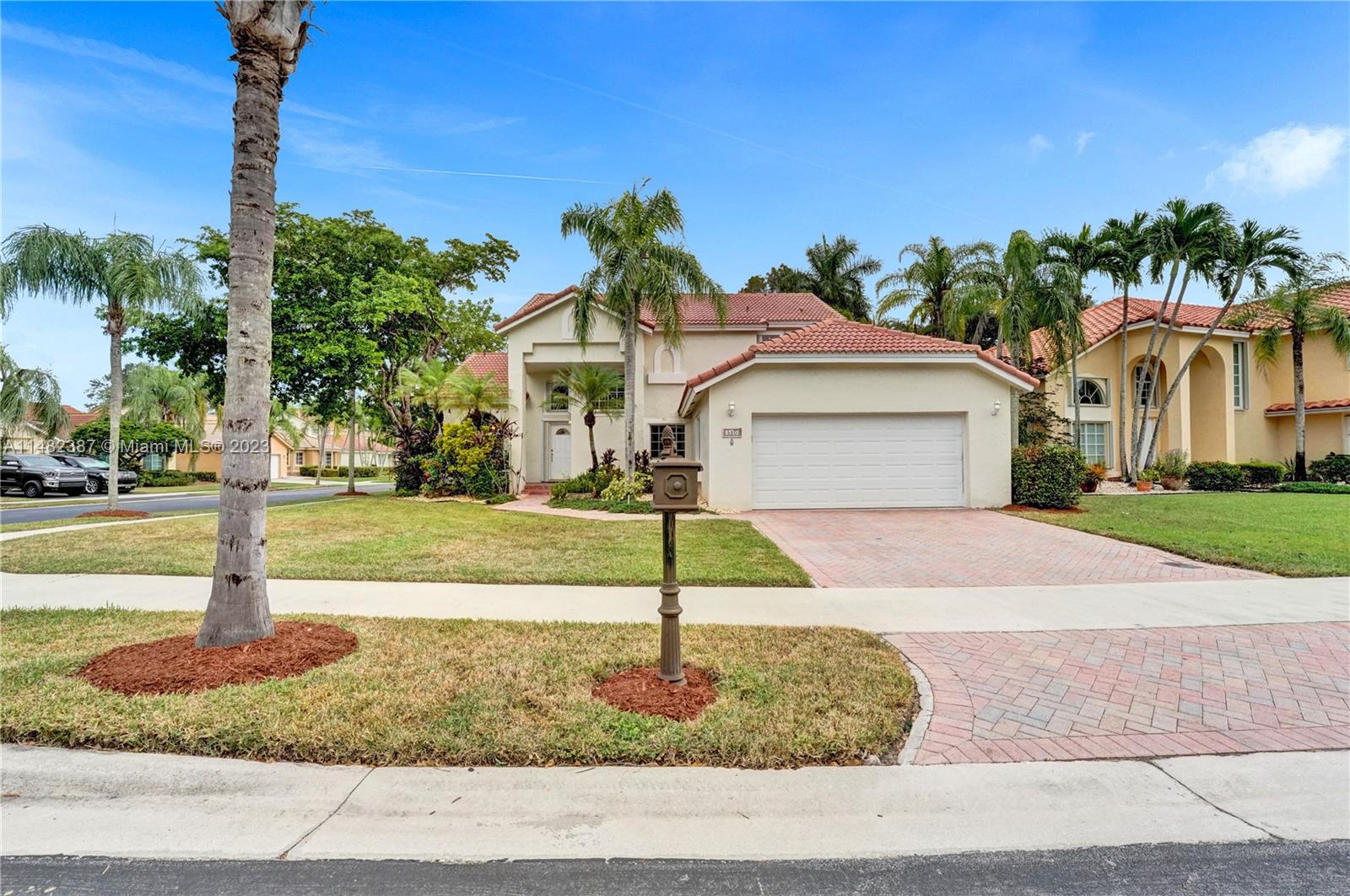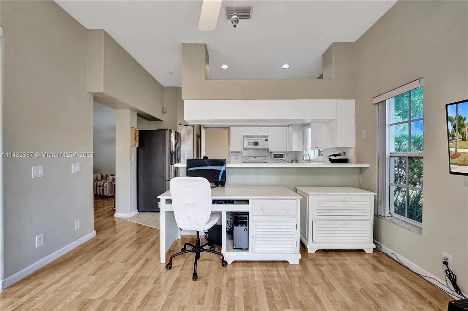 Amazing opportunity at the very desirable Laguna Springs II. An unbeatable value in a prime corner location. Generous living space with high ceilings and tall glass sliding doors that give a bright, airy, and open feel. Two convenient bedrooms at ground level, bathroom + dining, living, and family rooms. 2nd level with brand-new, stylish flooring, ample primary suite with balcony, large en-suite bathroom, and deep walk-in closet. Enjoy the screened patio with brick pavers & room for a pool. Full storm protection including windows and garage door. Additional features include the recently updated A/C unit and barrel tile roof installed in 2006. Within close distance of the community clubhouse and pool. You're just a stone's throw from Indian Trace Elementary School, parks, Chabad & church.