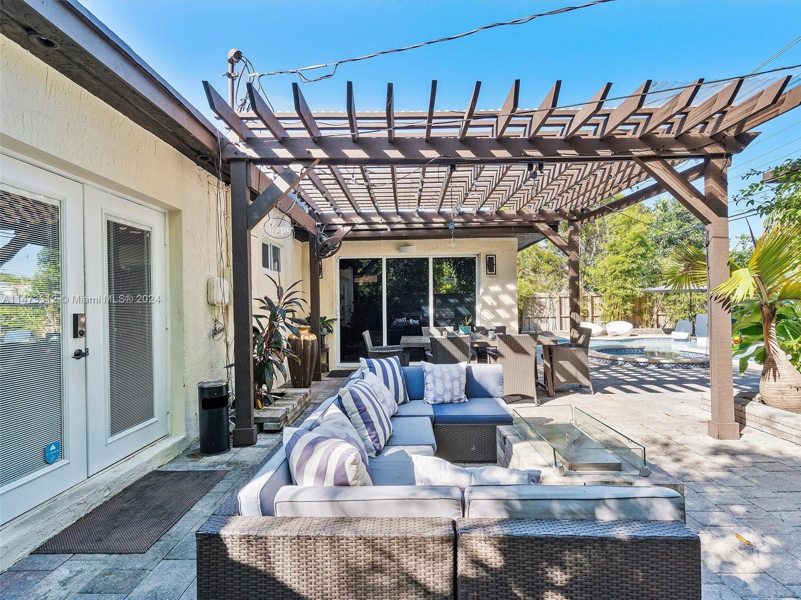 Welcome to this exquisite private residence for outdoor enthusiasts. Arrive at a fully secured front yard adorned with artistic pavers and a tranquil water fountain. Step inside to discover a welcoming, sunlit space that beckons you to make it your own. With 3 spacious bedrooms and 2 1/2 well-appointed bathrooms, this home offers both privacy for remote work and ample room for entertaining. The backyard is the crown jewel of this property, featuring a generous freeform pool and spa at its heart, complemented by a charming trellis-style lounge area and a dining space adjacent to the built-in outdoor kitchen, perfect for grilling enthusiasts. Located in the sought-after North Miami area, a mere 15min drive from the beach, making it an ideal destination for both relaxation and convenience.