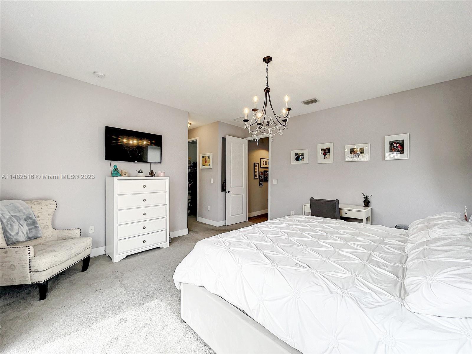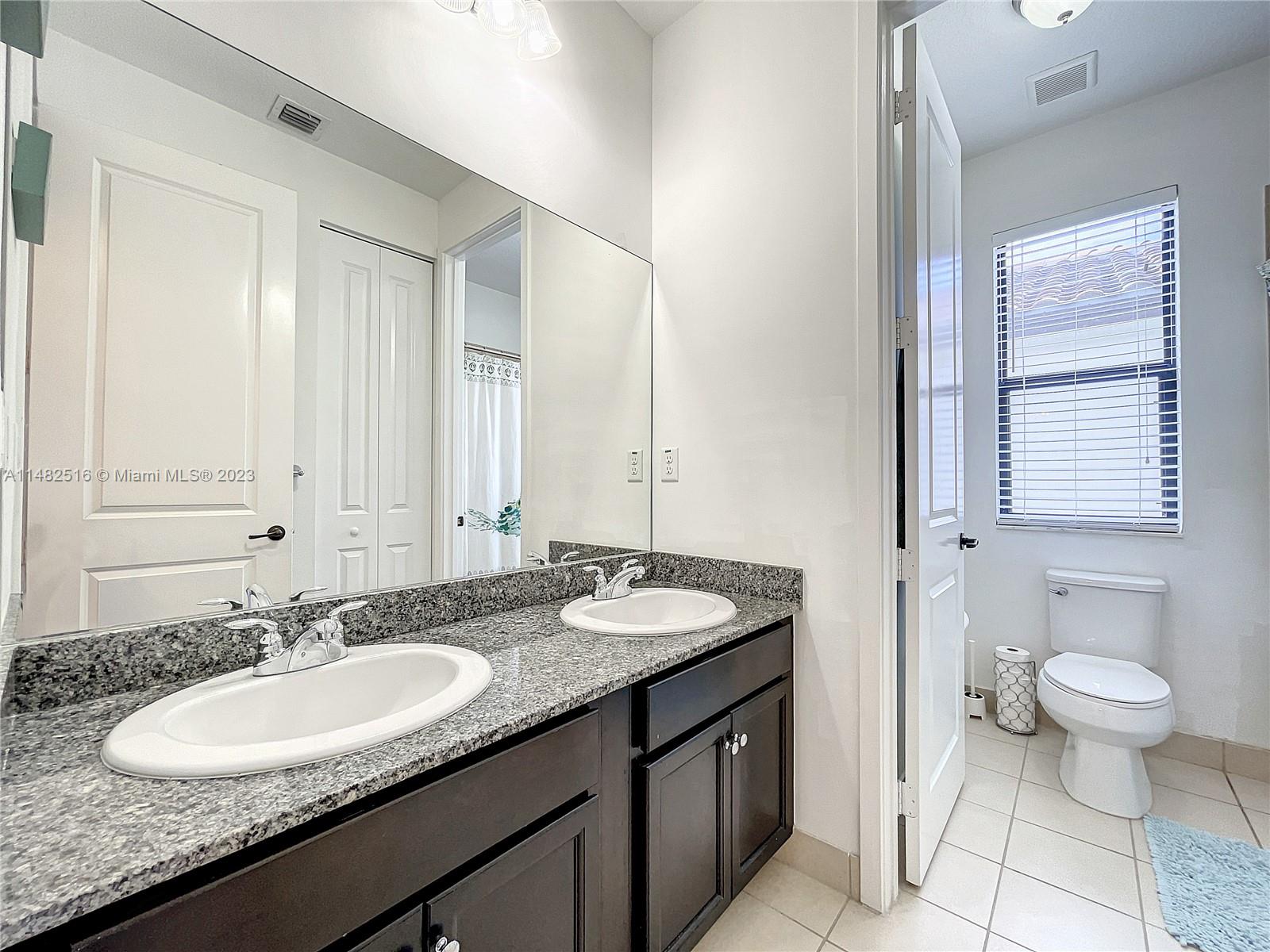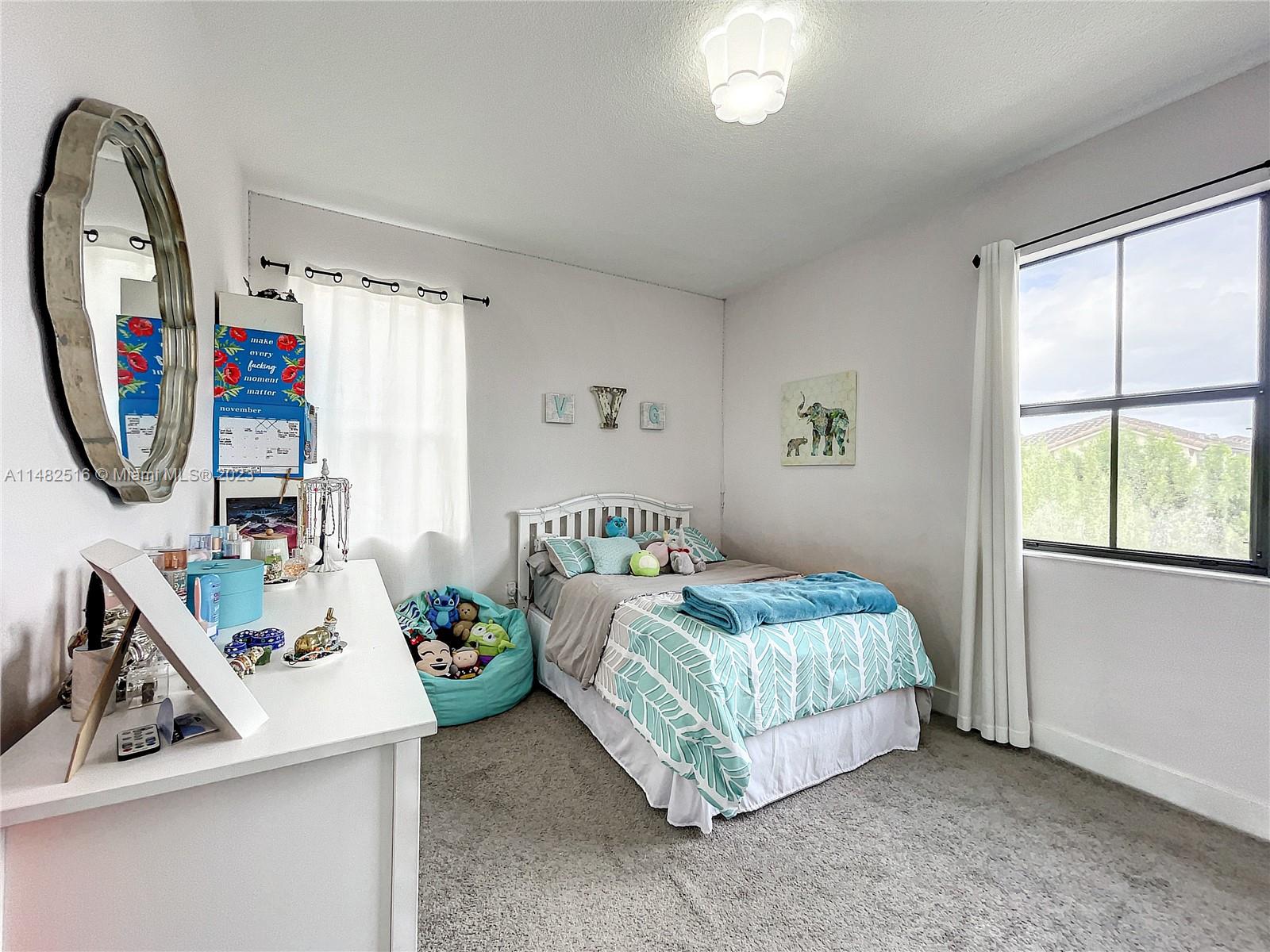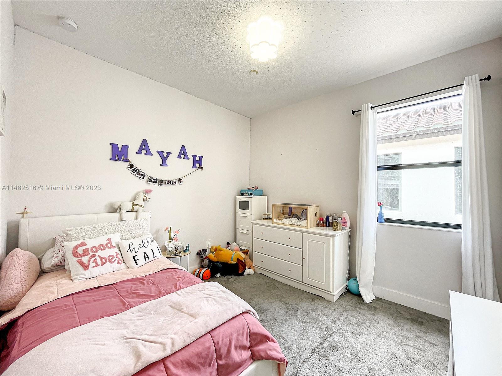 Stunning residence available in the prestigious Bonterra community. This home boasts 5 bedrooms and 3 bathrooms, including a first-floor bedroom! The kitchen offers stainless steel appliances and a generous stone counter island with seating. Upgrades include wood plank flooring, upstairs loft, granite counters throughout, wood plank feature wall, and upgraded lightingl Enjoy your outdoor space with oversized pavered patio, upstairs balcony, laundry, and 2 car garage. Clubhouse ammenities include, gym, pool, tennis, basketball and mini soccer courts. Conveniently located near Interstate I-75 and the Palmetto Expressway. Low HOA!!
