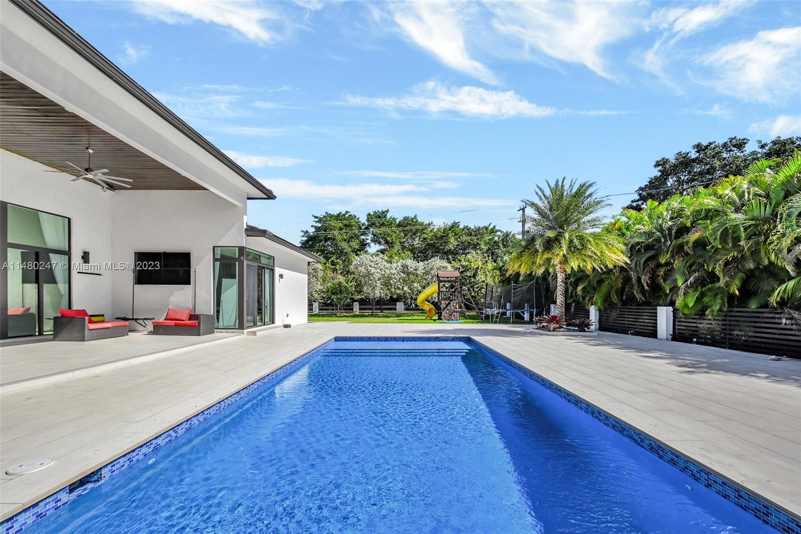 Indulge in luxury in this contemporary Davie estate, near top schools, organic markets, and restaurants, with easy highway access. This 6-bed, 6.5-bath home boasts porcelain floors, high ceilings, and a European kitchen. Elegant 8 ft Italian doors, modern faucets, and lighting enhance the ambiance.Built in 2019, this Davie sanctuary features resort-style high ceilings, custom closets, and a 3-car garage. The focal point is the European-styled chef kitchen with Bosch appliances.Exploring possibilities with plans for a 2,000SQFT extension on the 3-car garage—a canvas for personalized gatherings.Explore attractions like the Hard Rock Cafe, Hollywood boardwalk, and beaches, all while enjoying the convenience of being close to highways and the airport.