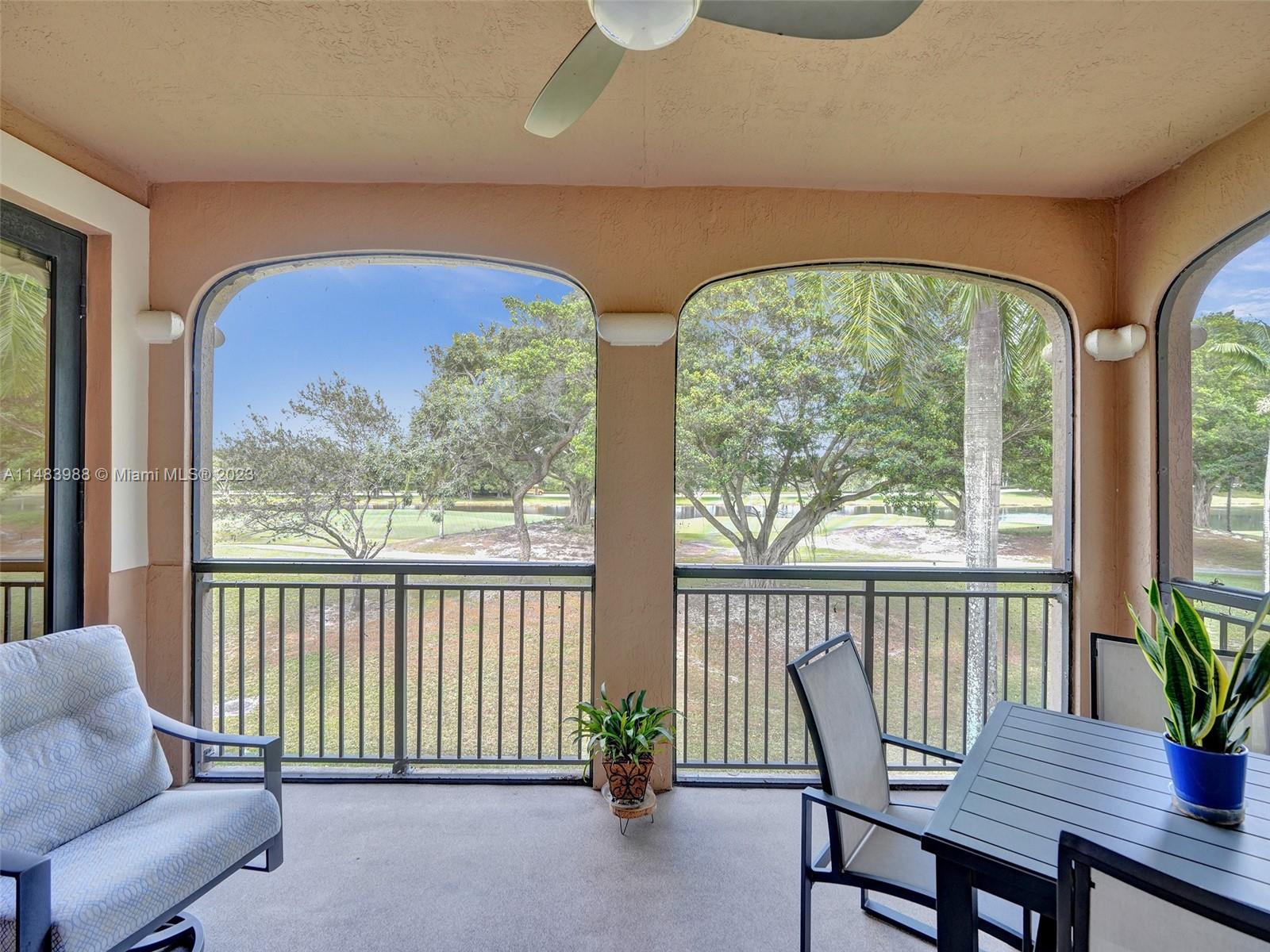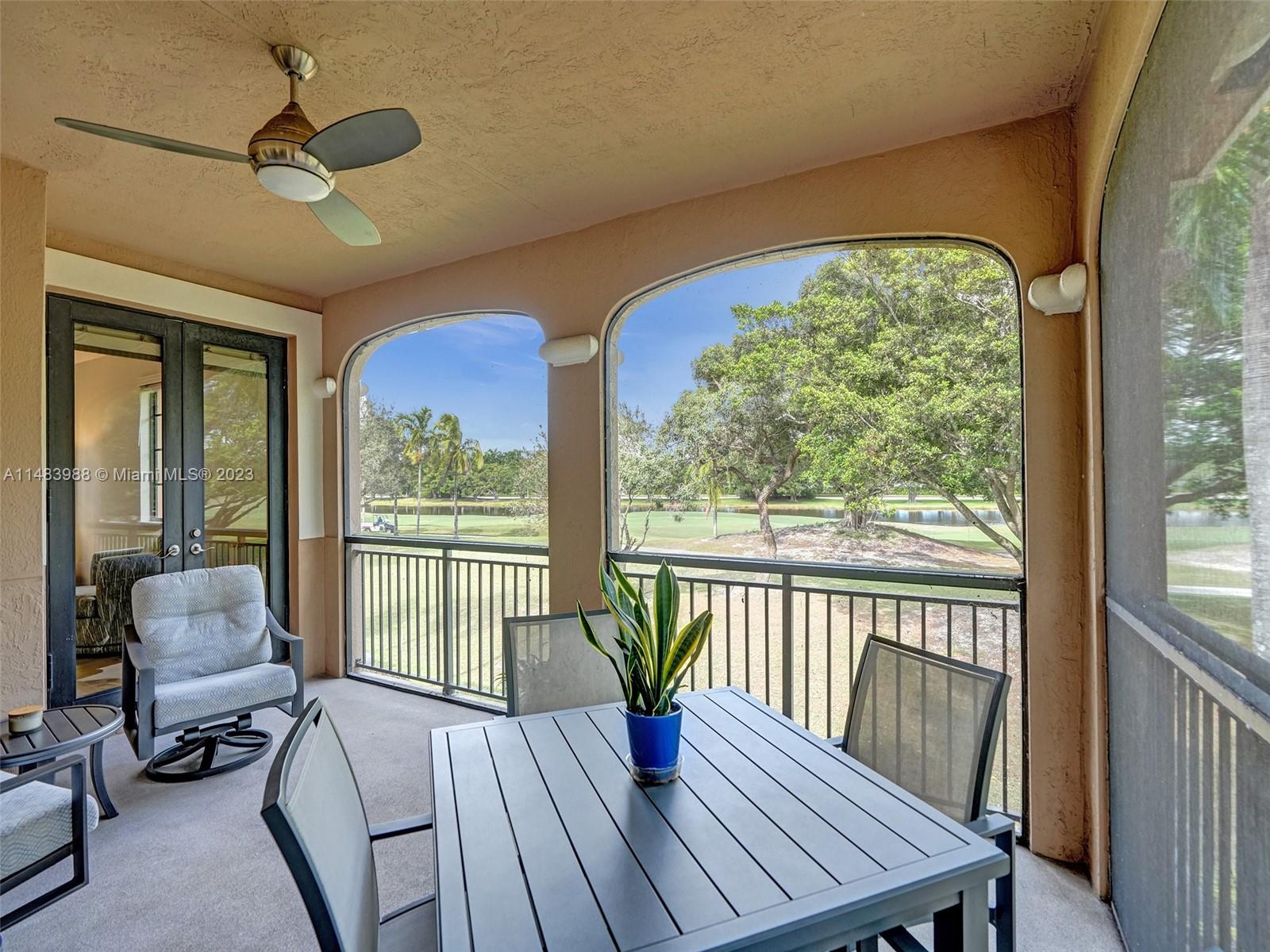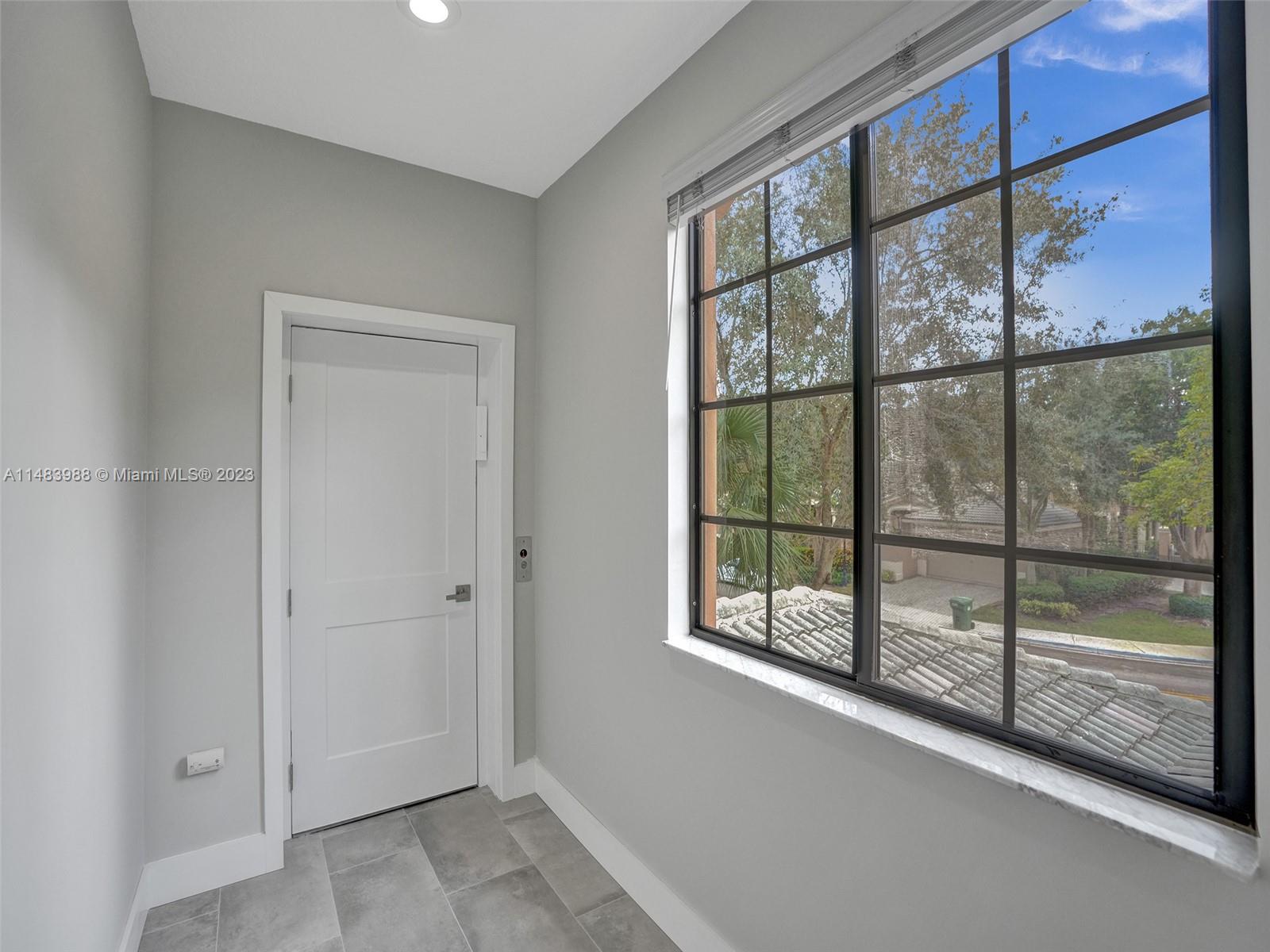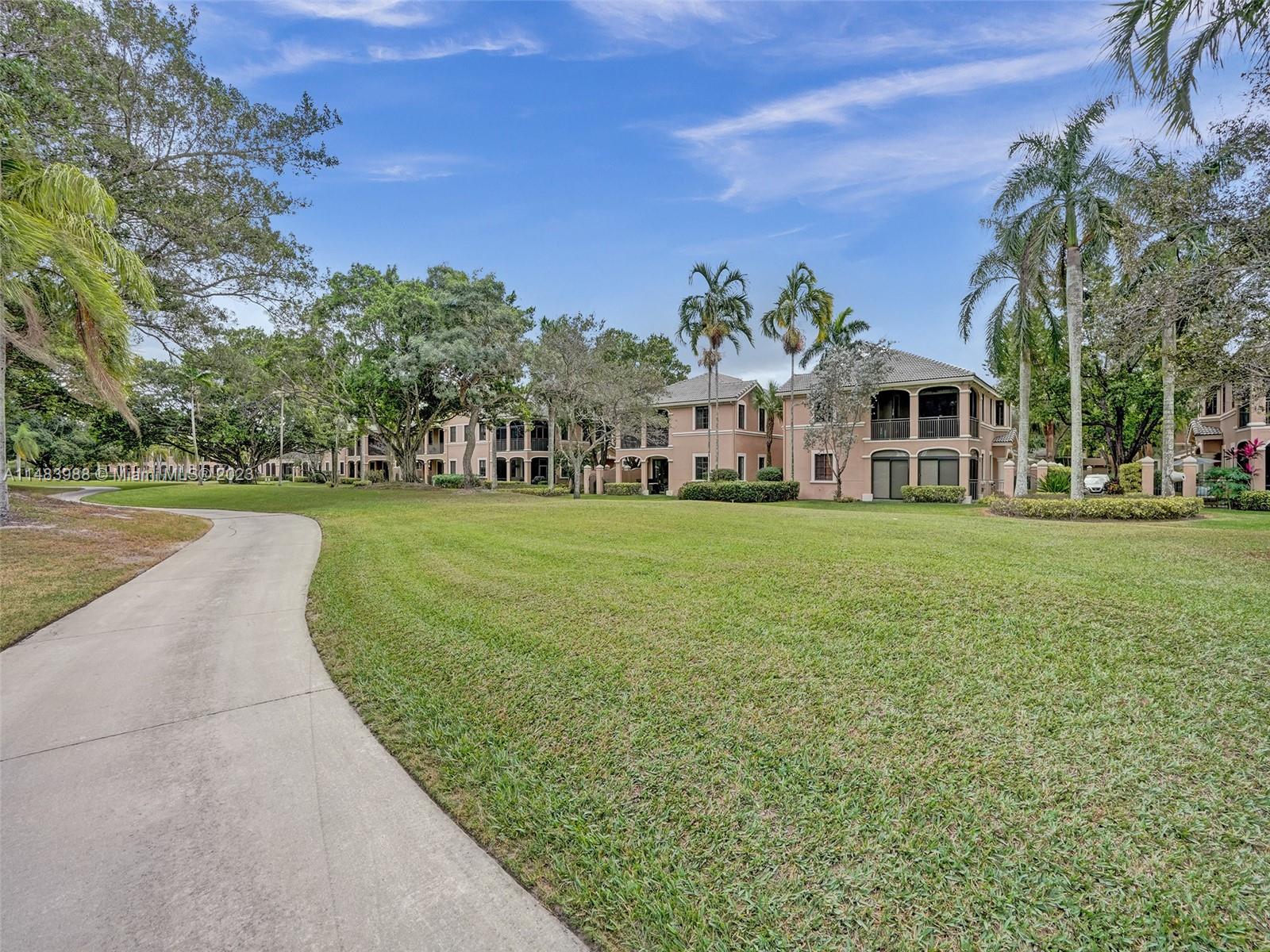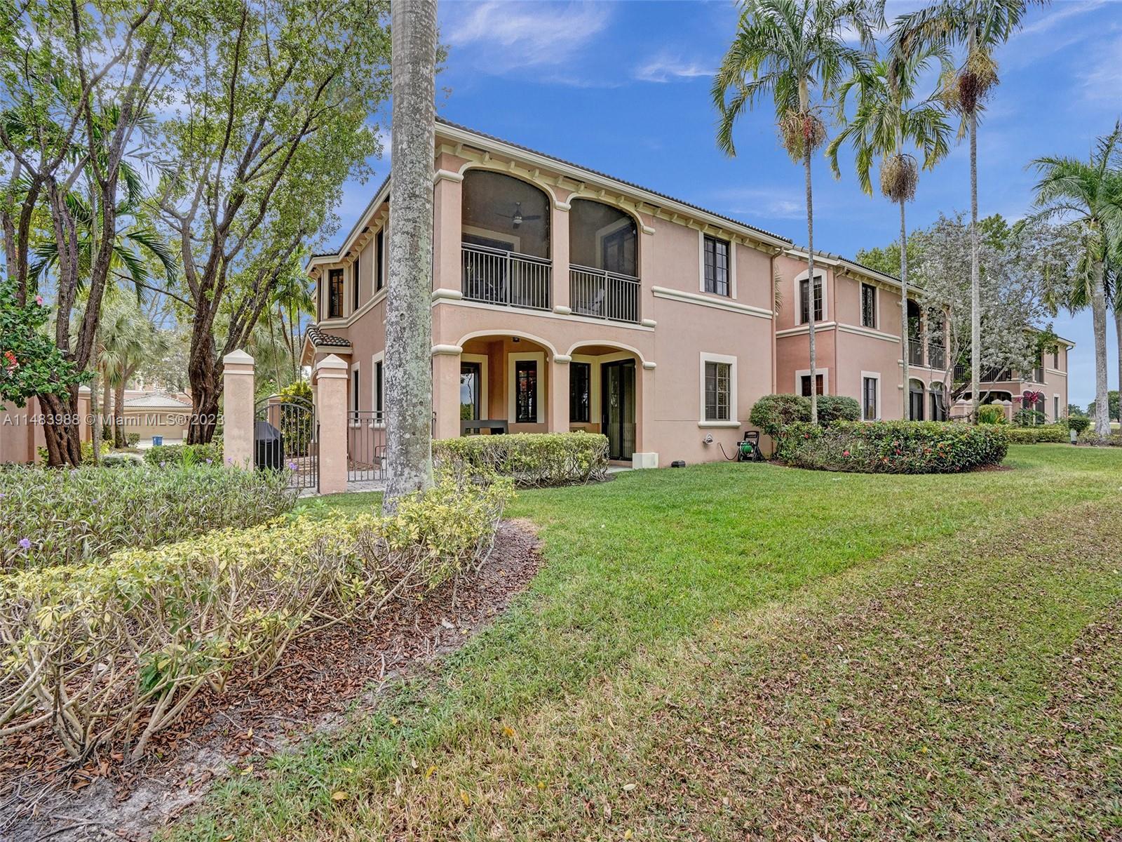 Beautiful Weston gated Community at Courtside. Newly renovated down to the drywall, this open floor plan coach home offers quality throughout. Custom cabinetry and quartz counter tops in kitchen and baths. Porcelain tile throughout and LVP stairs. Custom elevator, high impact windows, newer plumbing fixtures, wood blinds, light fixtures, ss appliances and interior doors. 3rd bedroom converted to office. Large bedrooms with walk-in closets with built ins (double walk-in in primary bdrm). Private en-suite to each bedroom. Beautifully shaded large 180 sq ft screened balcony overlooking golf course and lake. Walking distance to Country Club, golf course, pool, tennis courts and gym (all available through membership). Over $260K in renovations. Enjoy the Lifestyle.