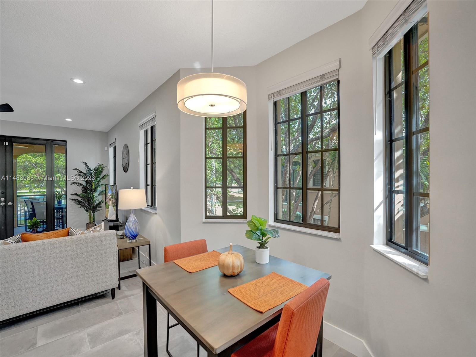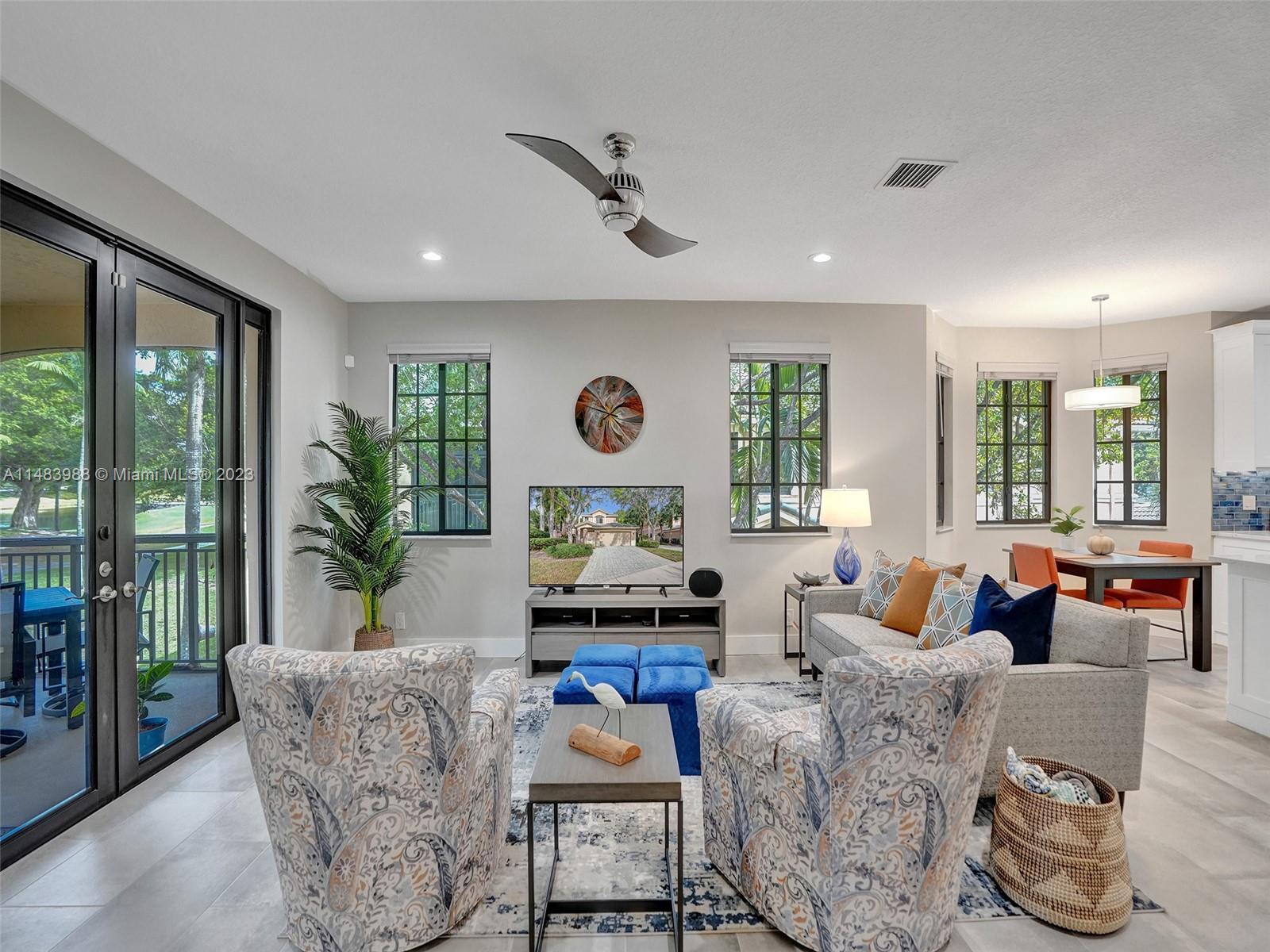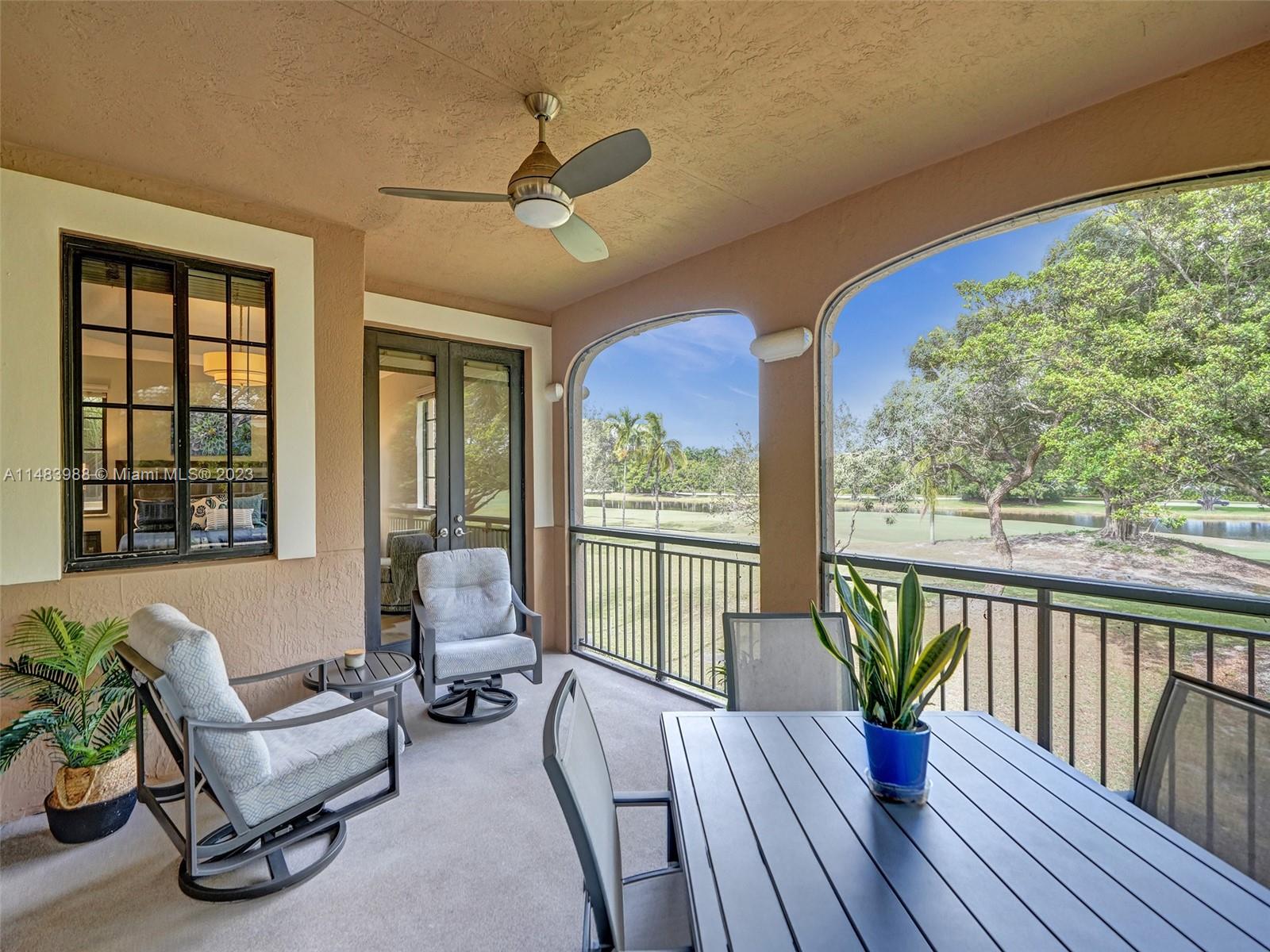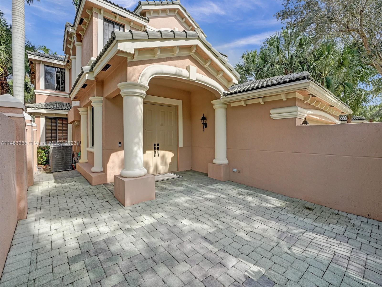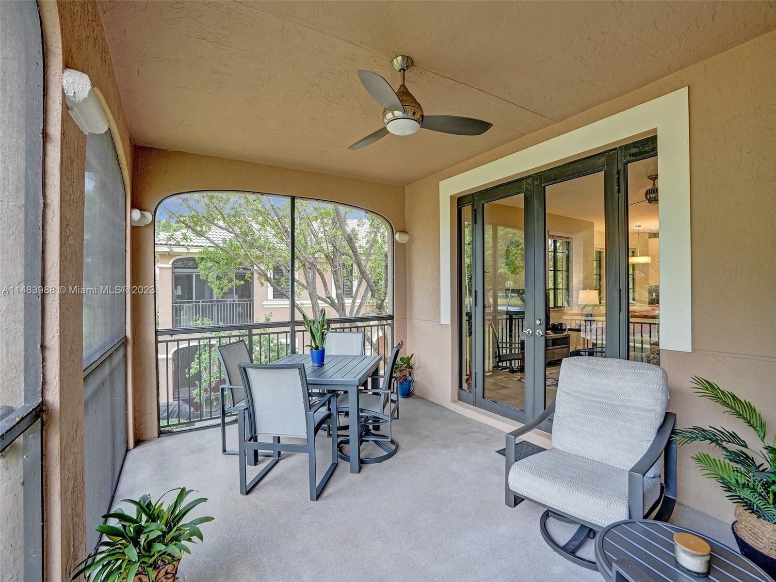 Beautiful Weston gated Community at Courtside. Newly renovated down to the drywall, this open floor plan coach home offers quality throughout. Custom cabinetry and quartz counter tops in kitchen and baths. Porcelain tile throughout and LVP stairs. Custom elevator, high impact windows, newer plumbing fixtures, wood blinds, light fixtures, ss appliances and interior doors. 3rd bedroom converted to office. Large bedrooms with walk-in closets with built ins (double walk-in in primary bdrm). Private en-suite to each bedroom. Beautifully shaded large 180 sq ft screened balcony overlooking golf course and lake. Walking distance to Country Club, golf course, pool, tennis courts and gym (all available through membership). Over $260K in renovations. Enjoy the Lifestyle.