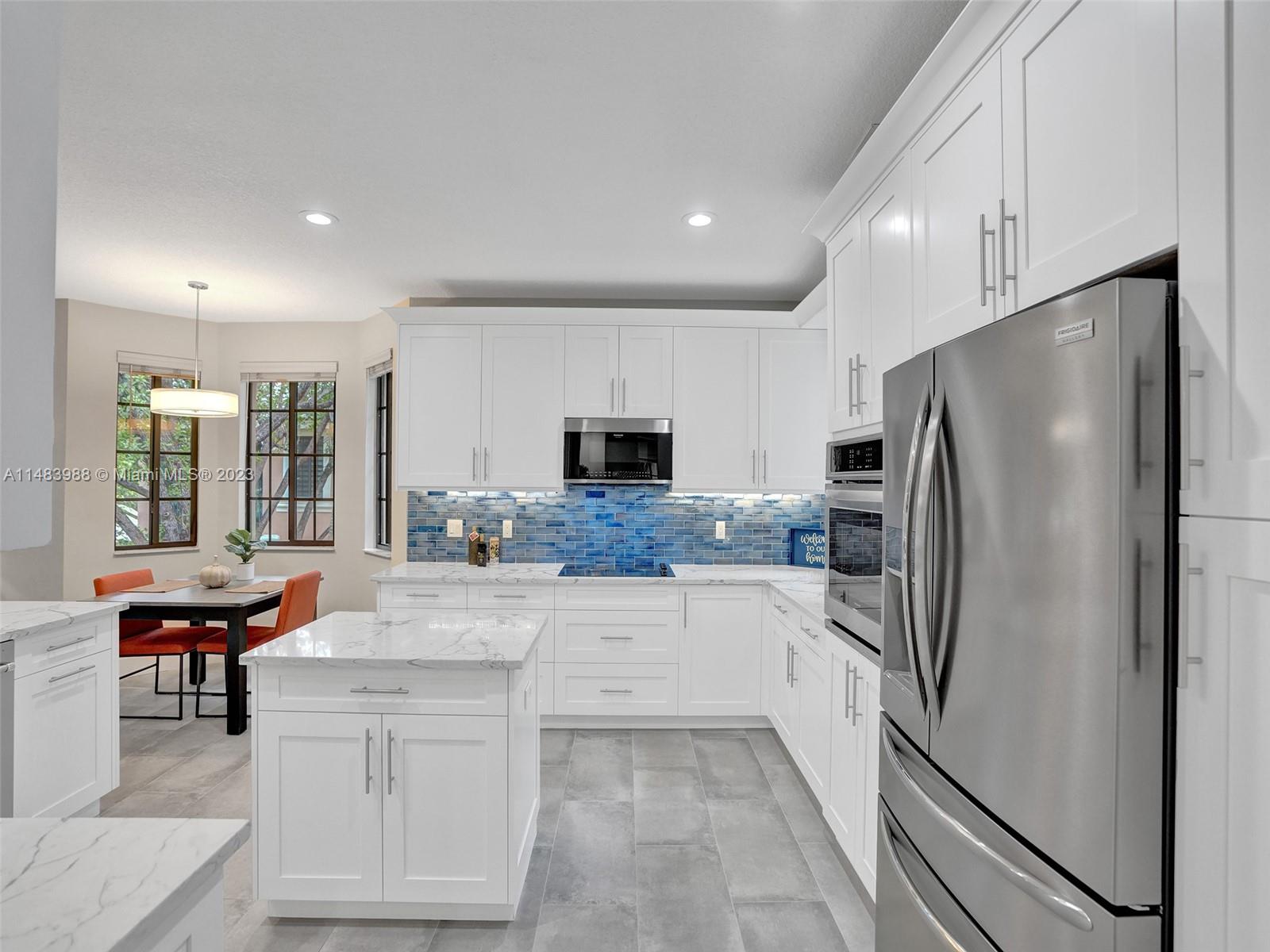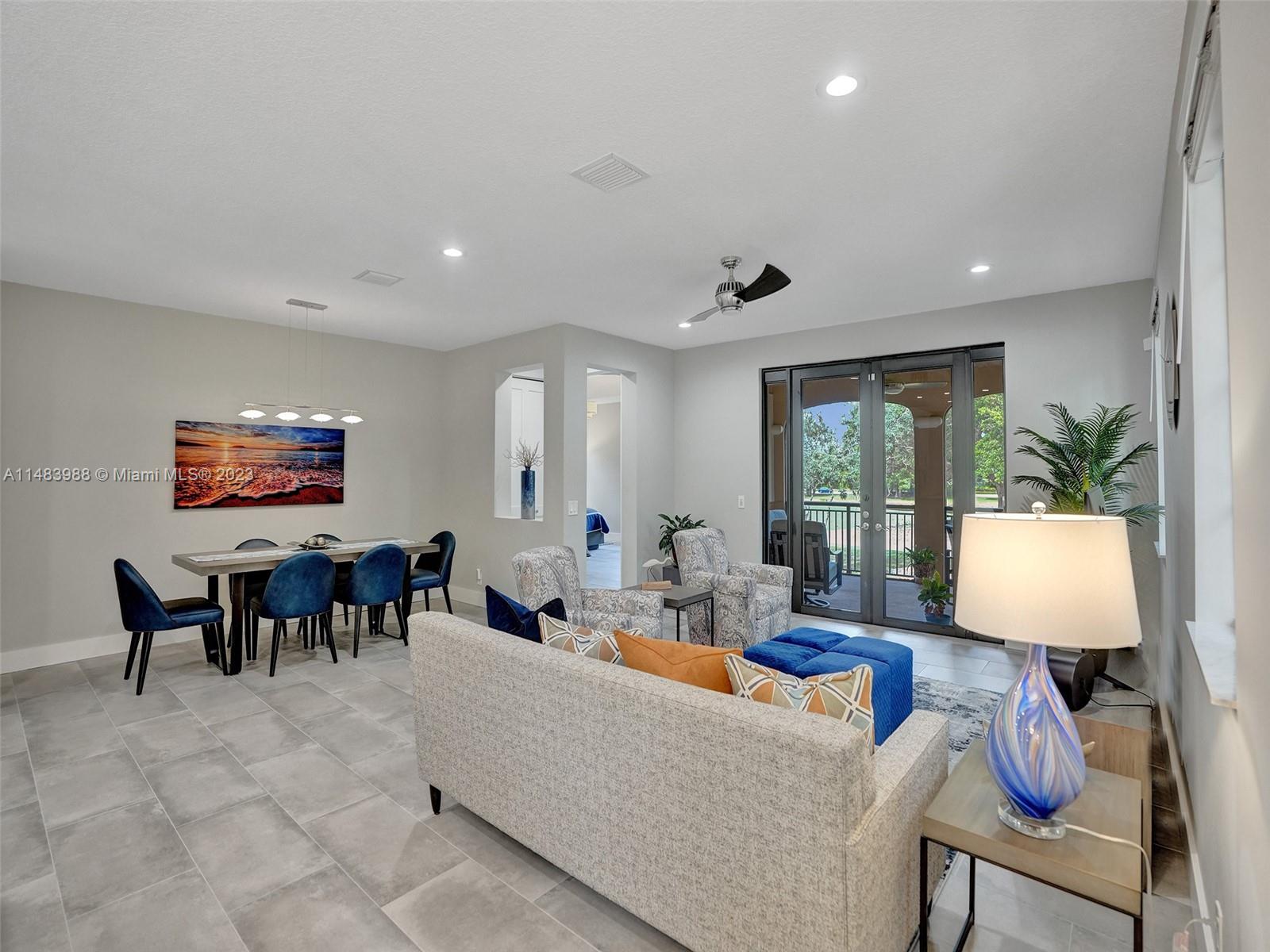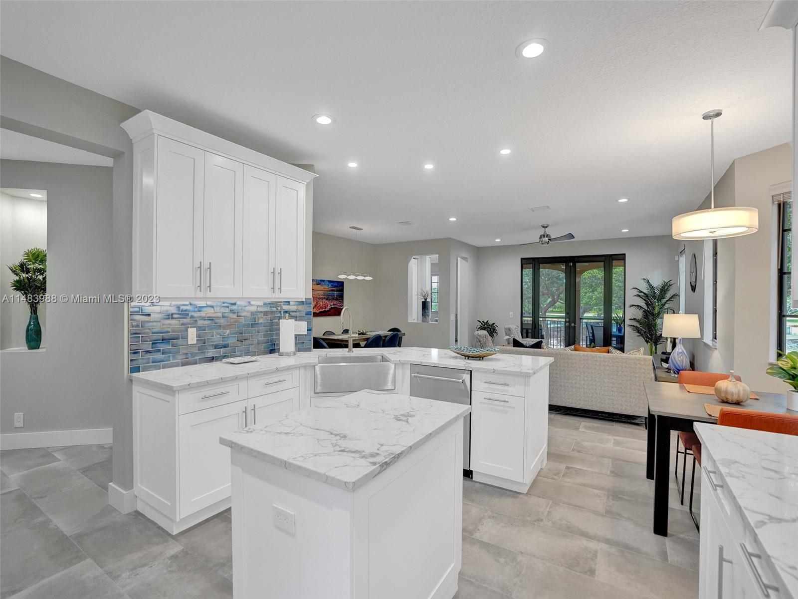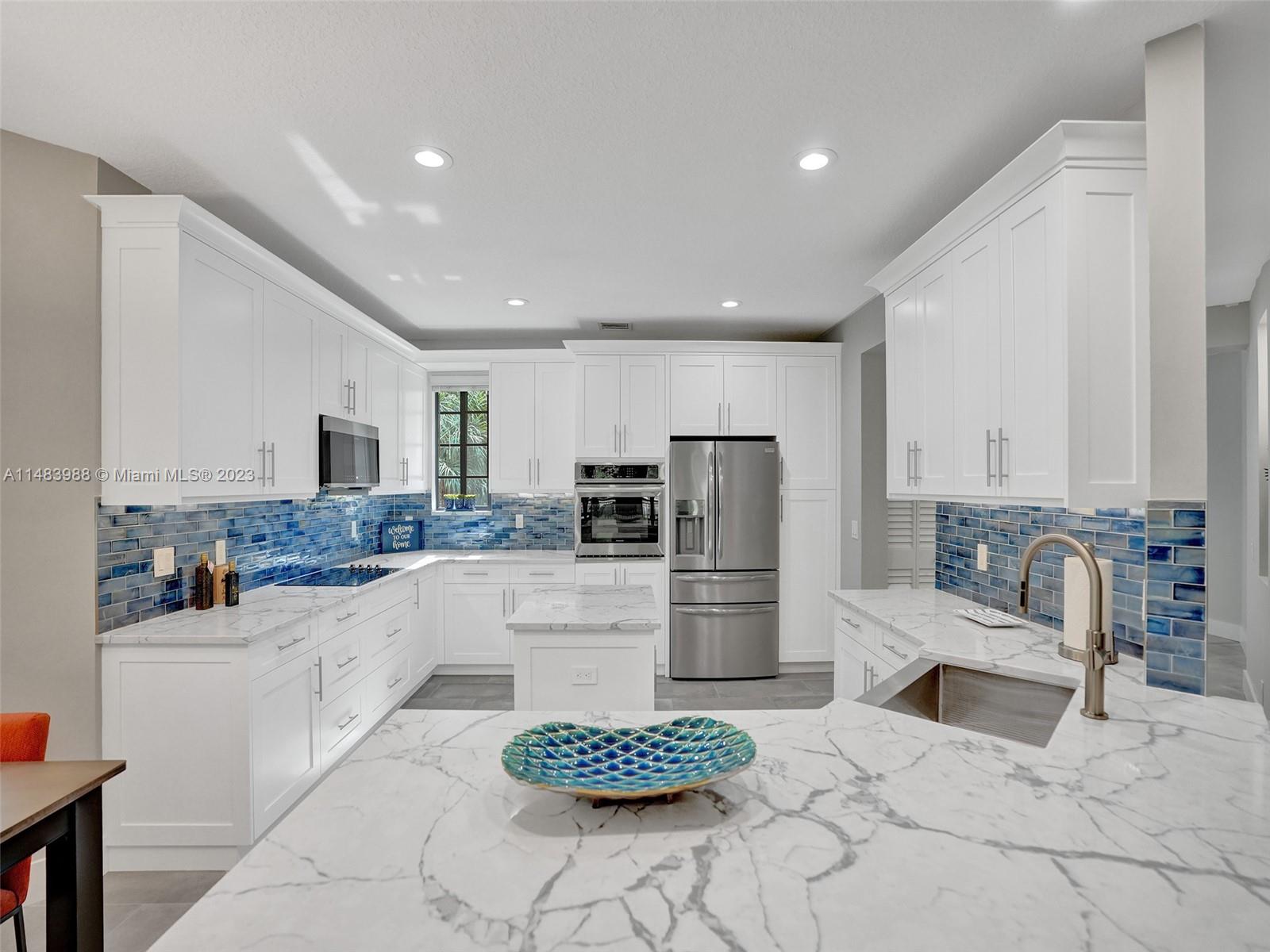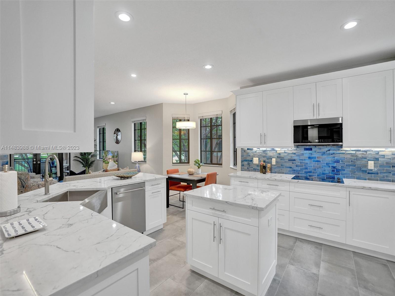 Beautiful Weston gated Community at Courtside. Newly renovated down to the drywall, this open floor plan coach home offers quality throughout. Custom cabinetry and quartz counter tops in kitchen and baths. Porcelain tile throughout and LVP stairs. Custom elevator, high impact windows, newer plumbing fixtures, wood blinds, light fixtures, ss appliances and interior doors. 3rd bedroom converted to office. Large bedrooms with walk-in closets with built ins (double walk-in in primary bdrm). Private en-suite to each bedroom. Beautifully shaded large 180 sq ft screened balcony overlooking golf course and lake. Walking distance to Country Club, golf course, pool, tennis courts and gym (all available through membership). Over $260K in renovations. Enjoy the Lifestyle.