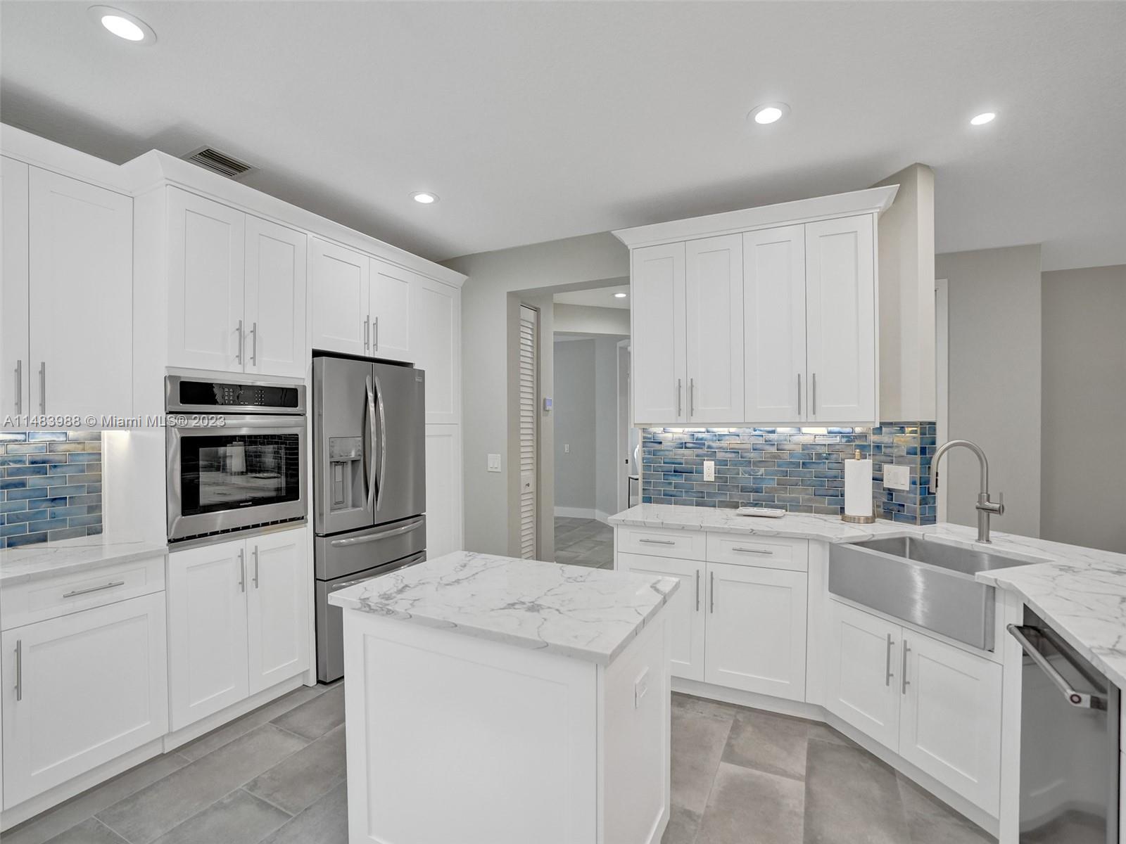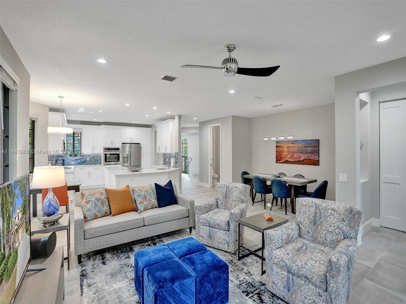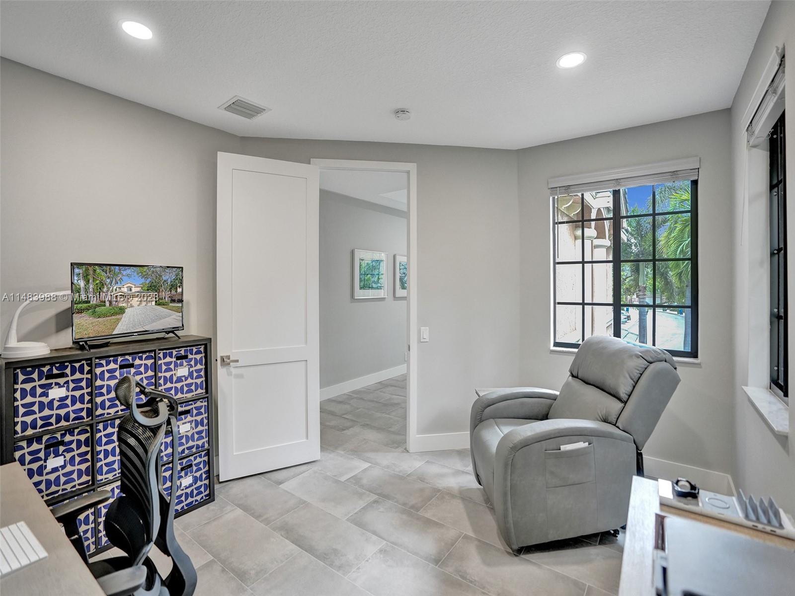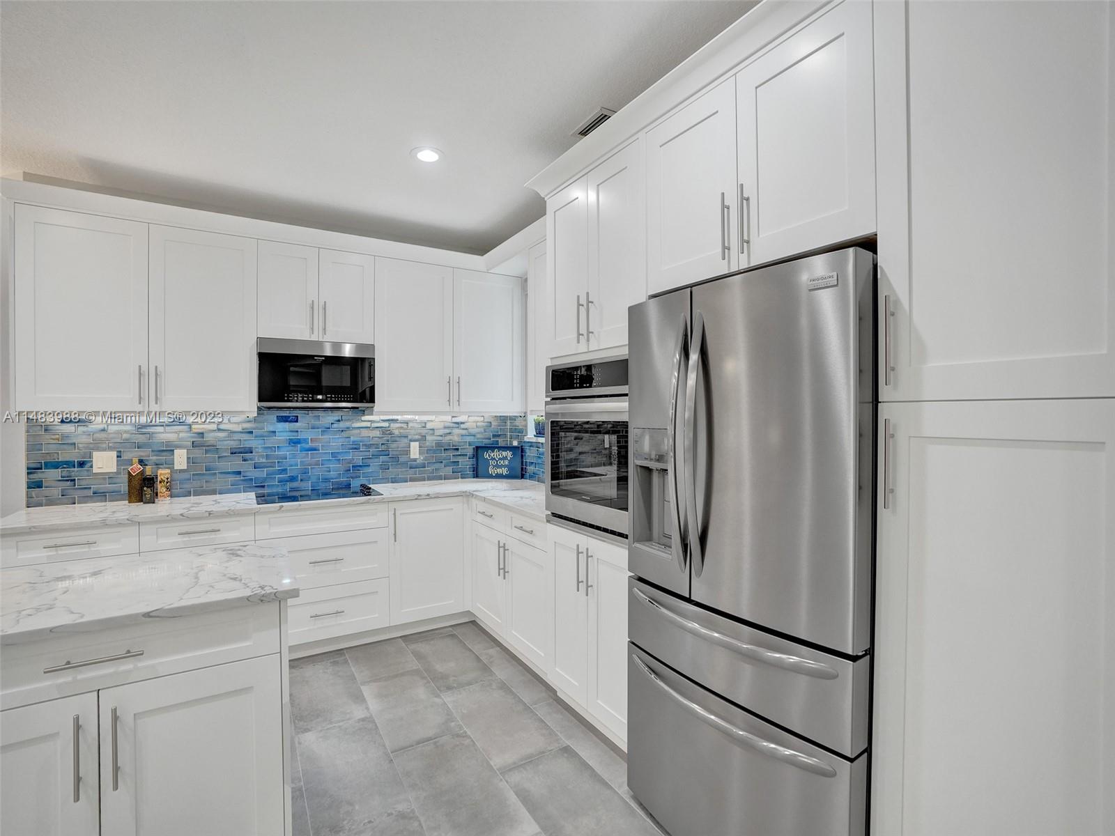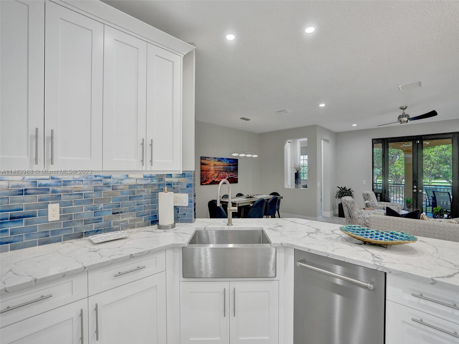 Beautiful Weston gated Community at Courtside. Newly renovated down to the drywall, this open floor plan coach home offers quality throughout. Custom cabinetry and quartz counter tops in kitchen and baths. Porcelain tile throughout and LVP stairs. Custom elevator, high impact windows, newer plumbing fixtures, wood blinds, light fixtures, ss appliances and interior doors. 3rd bedroom converted to office. Large bedrooms with walk-in closets with built ins (double walk-in in primary bdrm). Private en-suite to each bedroom. Beautifully shaded large 180 sq ft screened balcony overlooking golf course and lake. Walking distance to Country Club, golf course, pool, tennis courts and gym (all available through membership). Over $260K in renovations. Enjoy the Lifestyle.