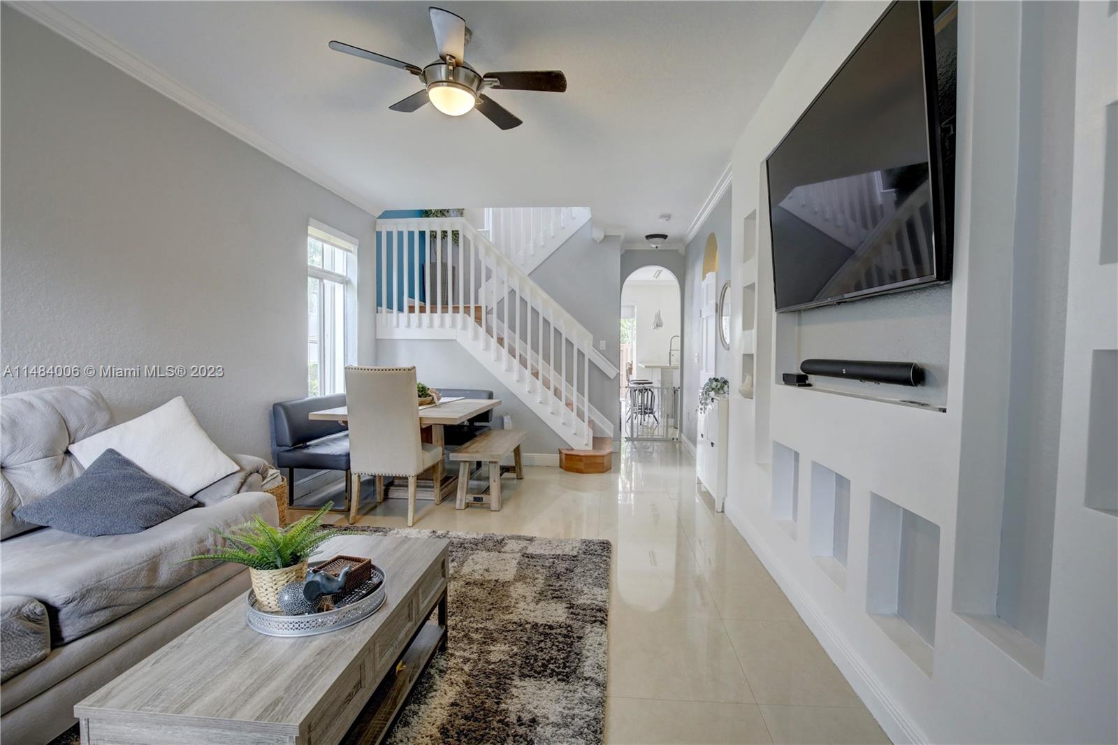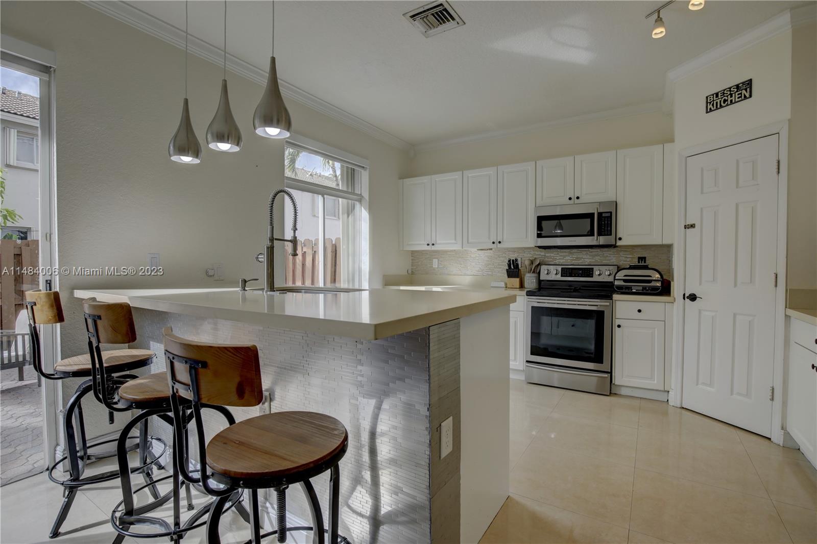 Come see this inviting 3 bedroom, 2.5 bath townhome in Doral. Home boasts a remodeled kitchen, serene patio, modern wall colors and decor throughout, and has the city's lowest association fees. Enjoy comfort and community charm in this corner home.