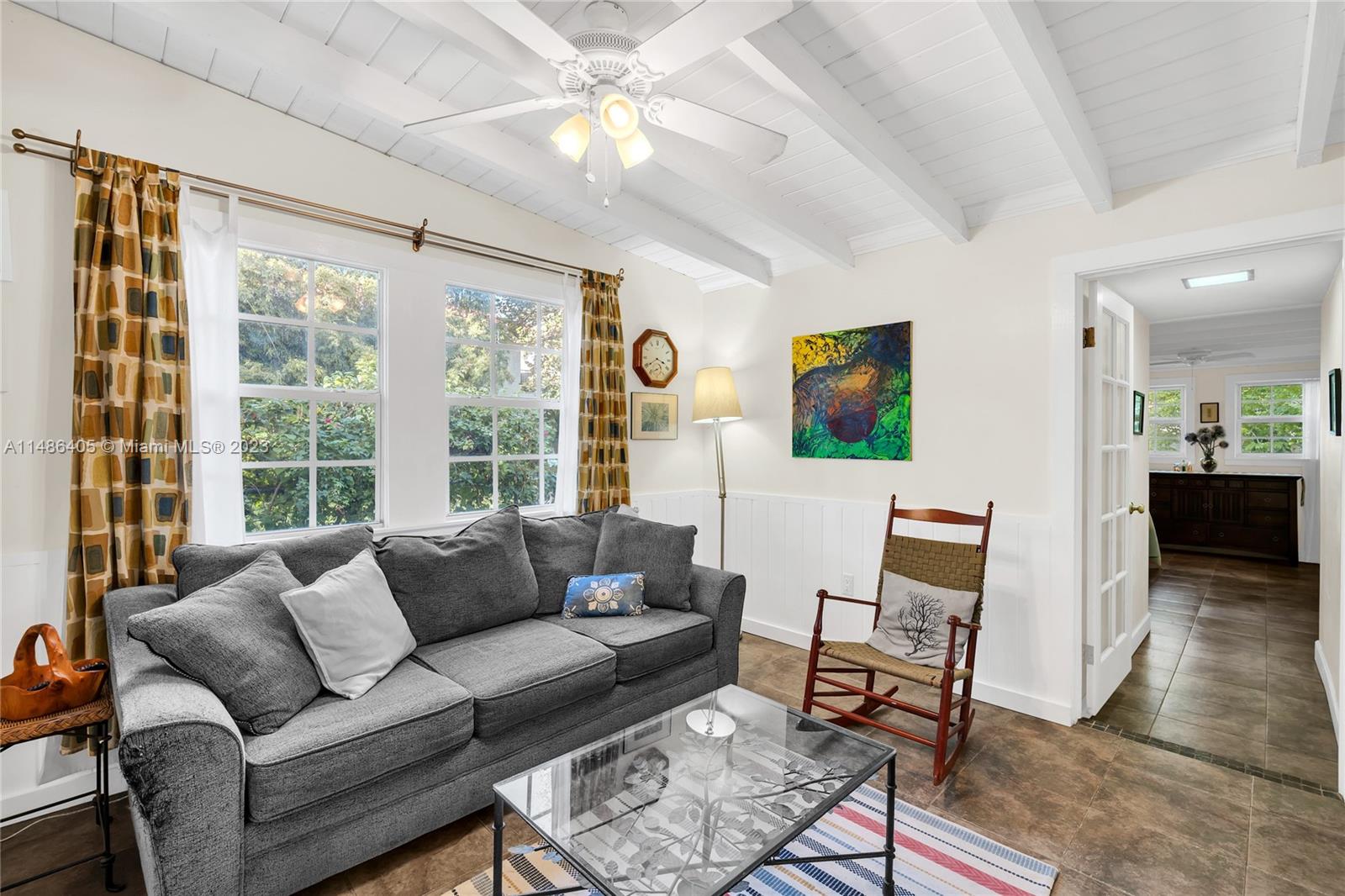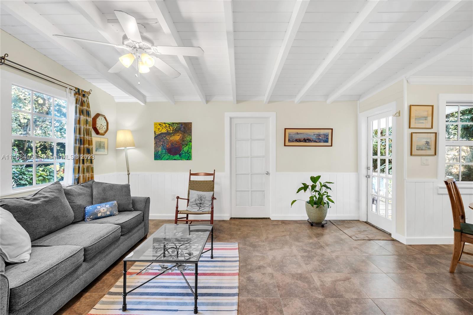 Cape Cod in Coconut Grove! This charming Center Grove single family home is located on a quiet, tree lined street many other single family home neighbors from the same era. It offers four spacious bedrooms, two full baths, formal living area in addition to family room and dining room where the open kitchen is located. Primary bedroom is located towards the rear of the property and offers privacy from the other three bedrooms and full bath. Home has two welcoming covered patios, one in the front of the house and on the side. All openings are impact except for two doors and one small bathroom window. There is a full attic with access ladder for amazing storage plus a detached shed. Not in a flood zone. Property is zoned duplex and suitable for development of two large town homes.