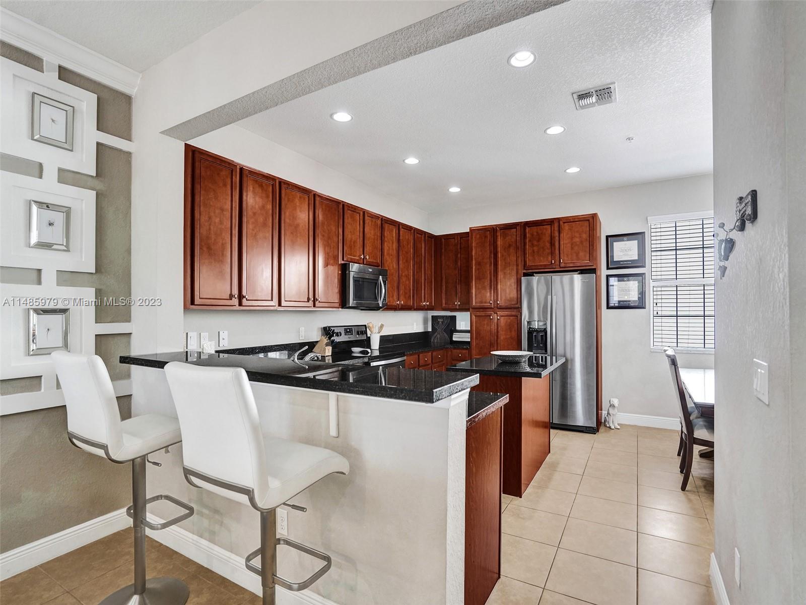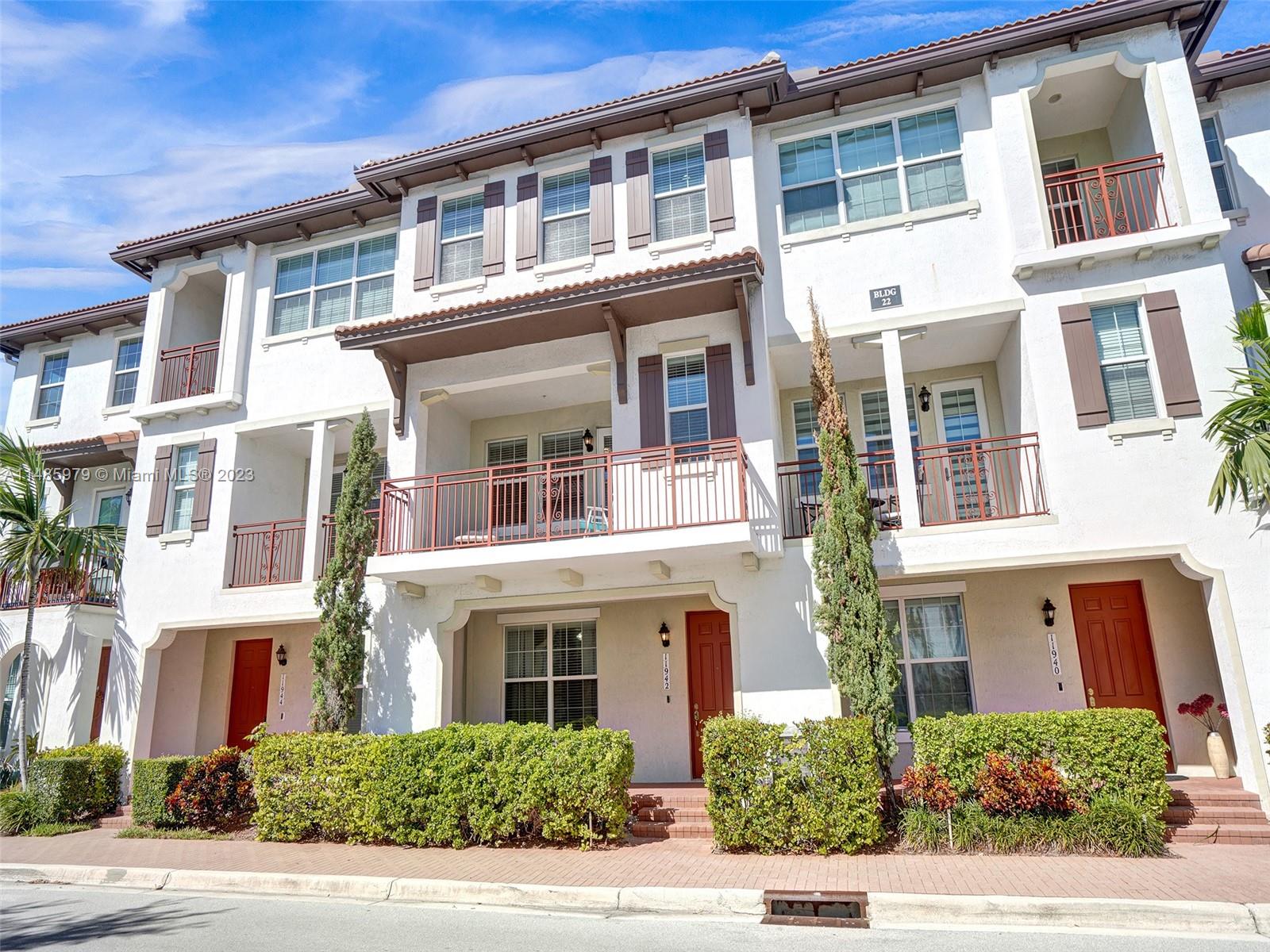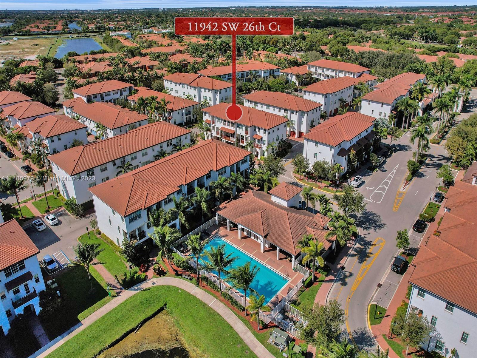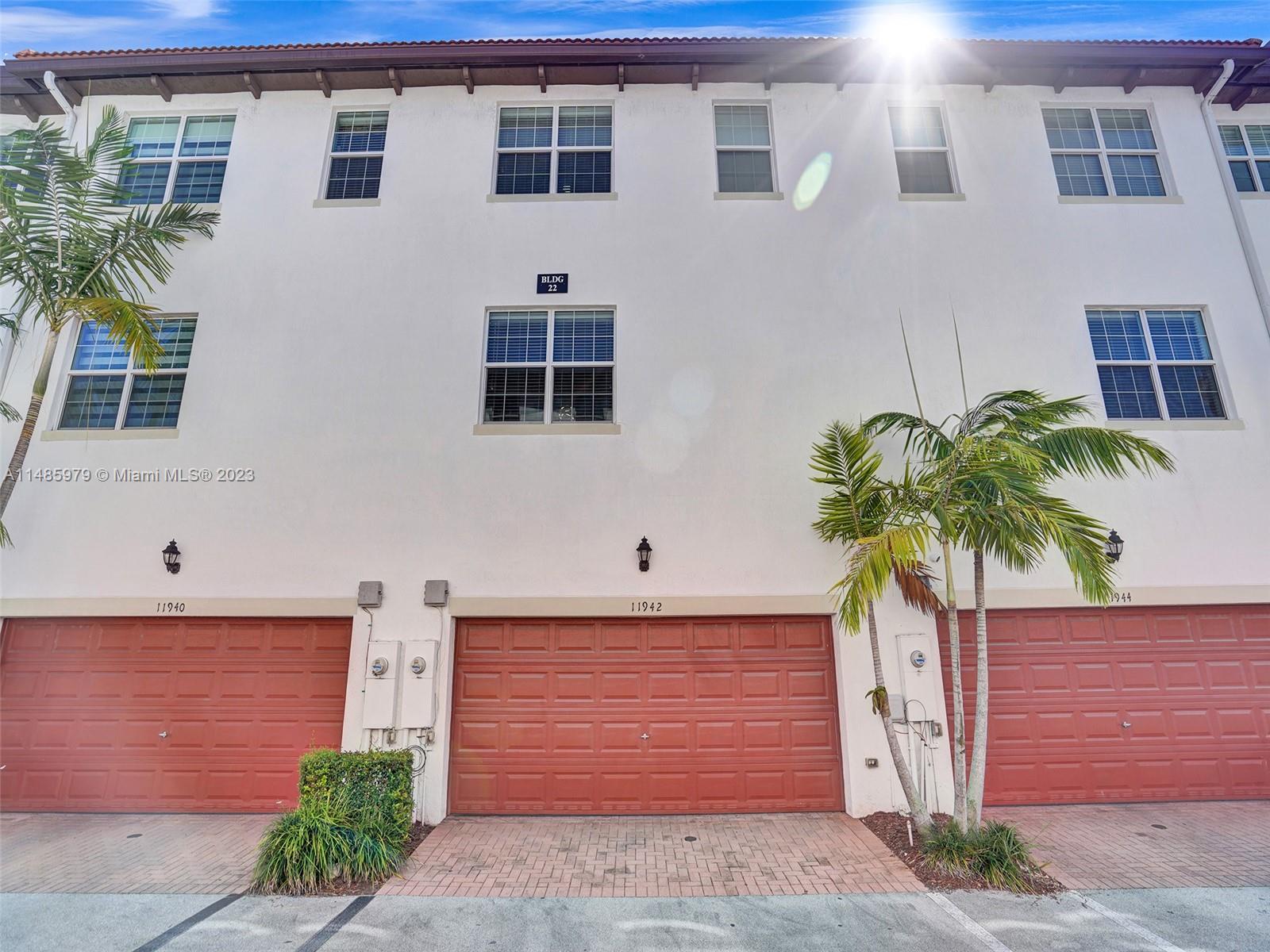 Discover the largest 3-story townhome model in Montclair's gated community in Miramar. This residence boasts 3 bedrooms, 3.5 bathrooms, and a 2-car garage with hurricane impact windows and a spacious balcony. The kitchen features 42" European-style wood cabinetry, a large island, quartz countertops, and stainless-steel Whirlpool appliances. Stylish upgrades include an elegant glass chandelier, tile, and laminate flooring. The master bedroom offers Ikea custom closets. Centrally located with amazing amenities including a clubhouse, gym, pool, and more. A ground-floor bedroom with an ensuite bathroom adds convenience. Residents can unwind in the scenic pool area overlooking a serene lake. Enjoy tranquility in this quiet, upscale community.