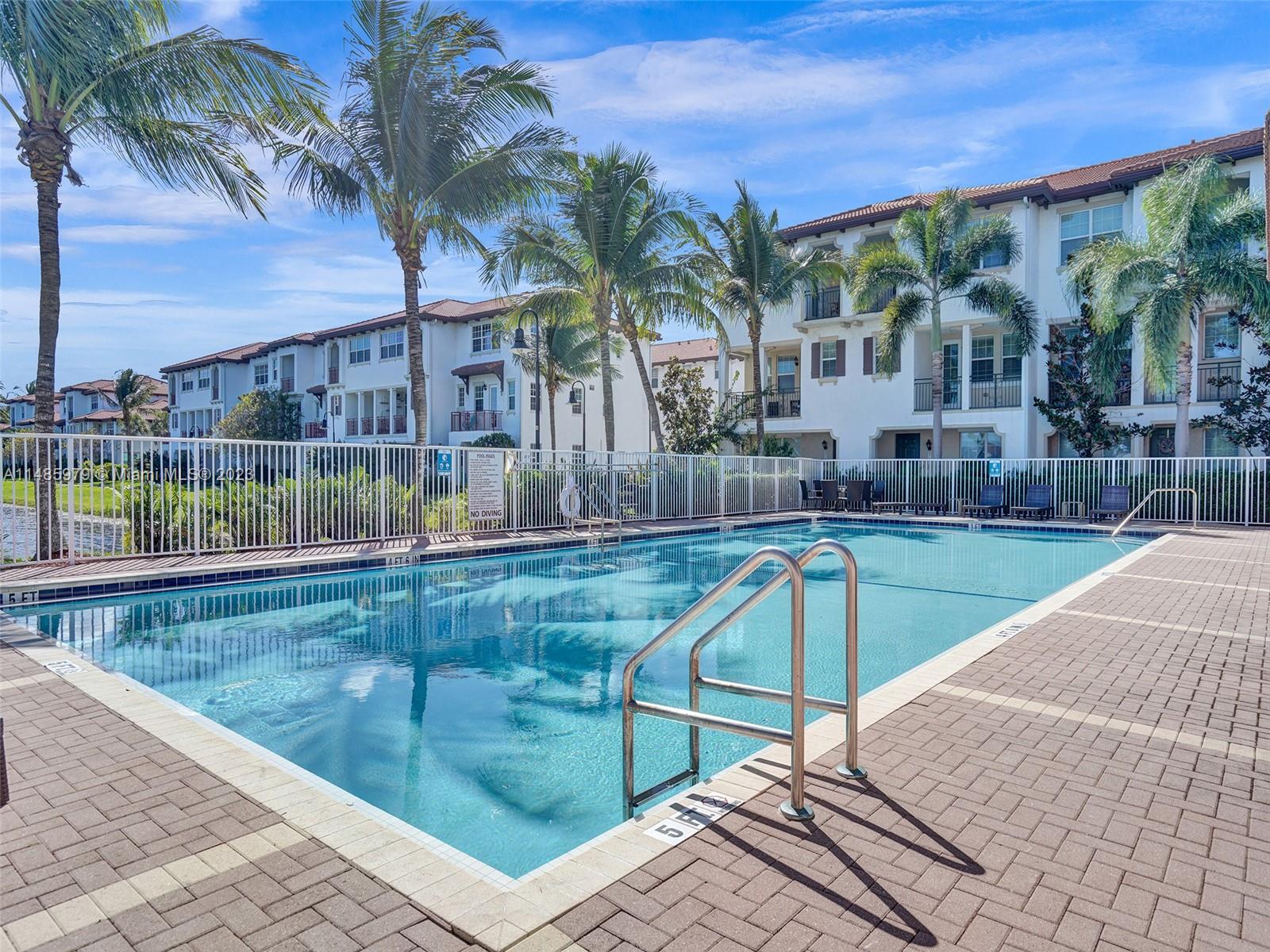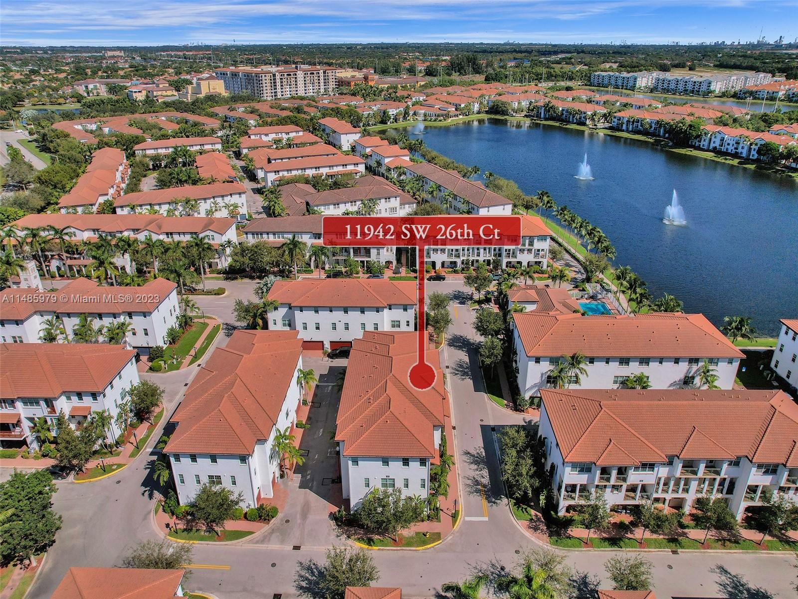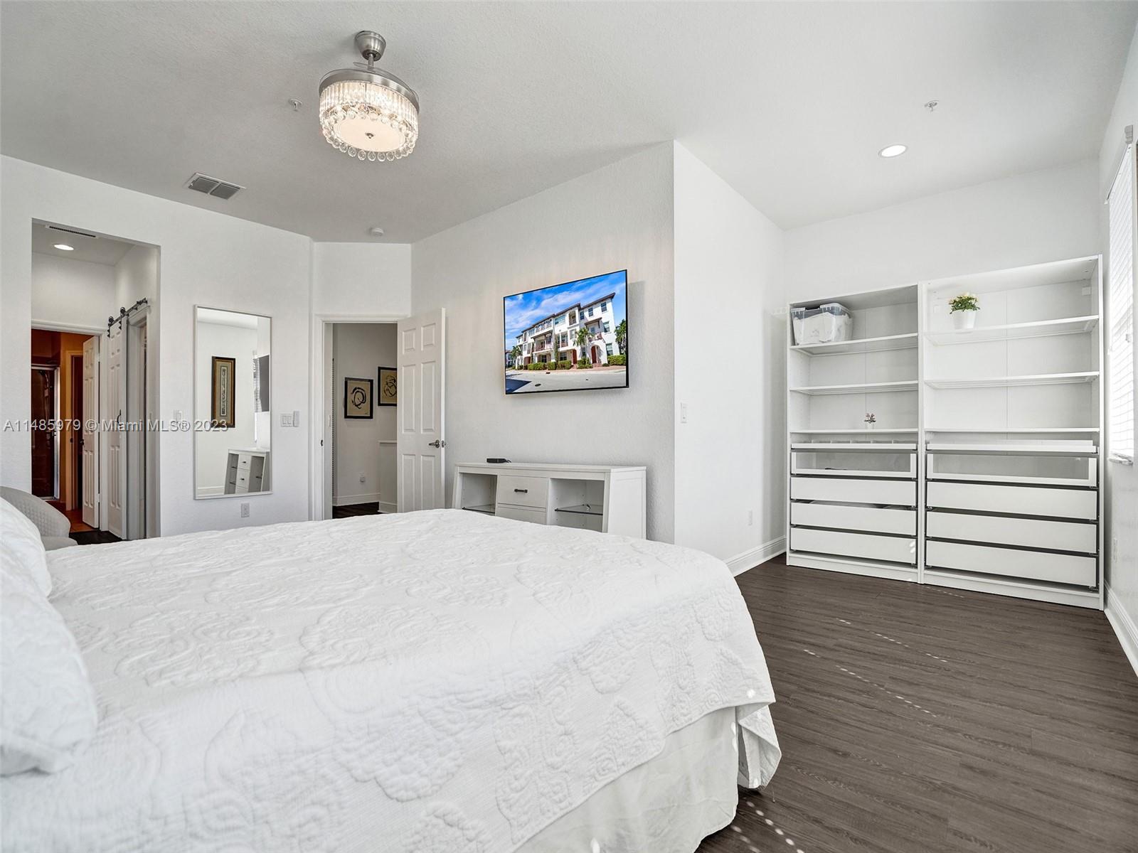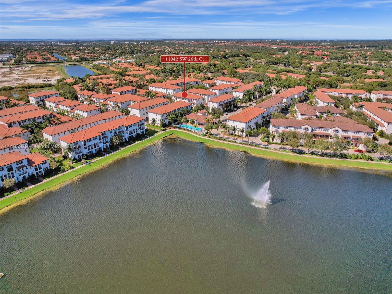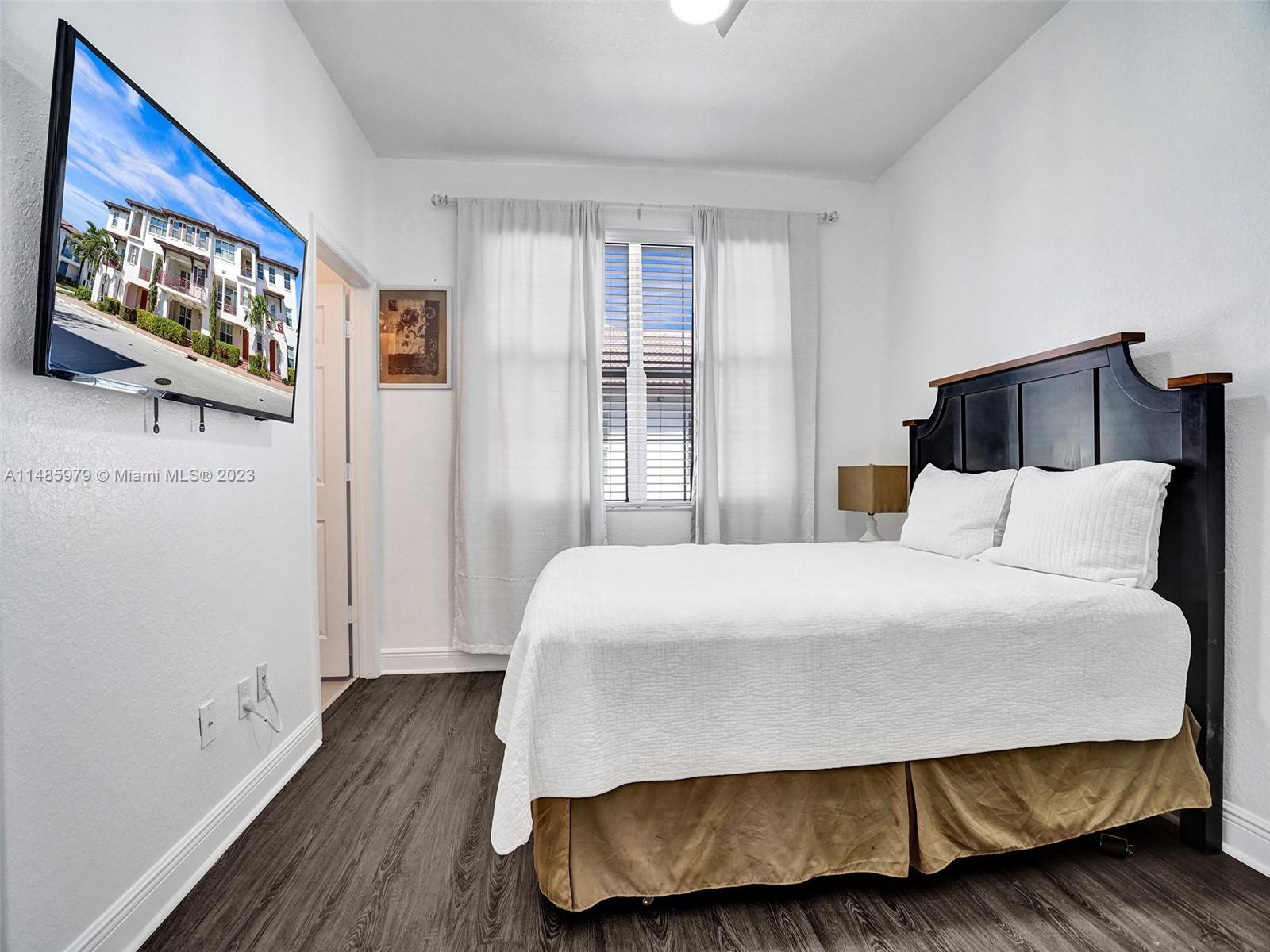 Discover the largest 3-story townhome model in Montclair's gated community in Miramar. This residence boasts 3 bedrooms, 3.5 bathrooms, and a 2-car garage with hurricane impact windows and a spacious balcony. The kitchen features 42" European-style wood cabinetry, a large island, quartz countertops, and stainless-steel Whirlpool appliances. Stylish upgrades include an elegant glass chandelier, tile, and laminate flooring. The master bedroom offers Ikea custom closets. Centrally located with amazing amenities including a clubhouse, gym, pool, and more. A ground-floor bedroom with an ensuite bathroom adds convenience. Residents can unwind in the scenic pool area overlooking a serene lake. Enjoy tranquility in this quiet, upscale community.