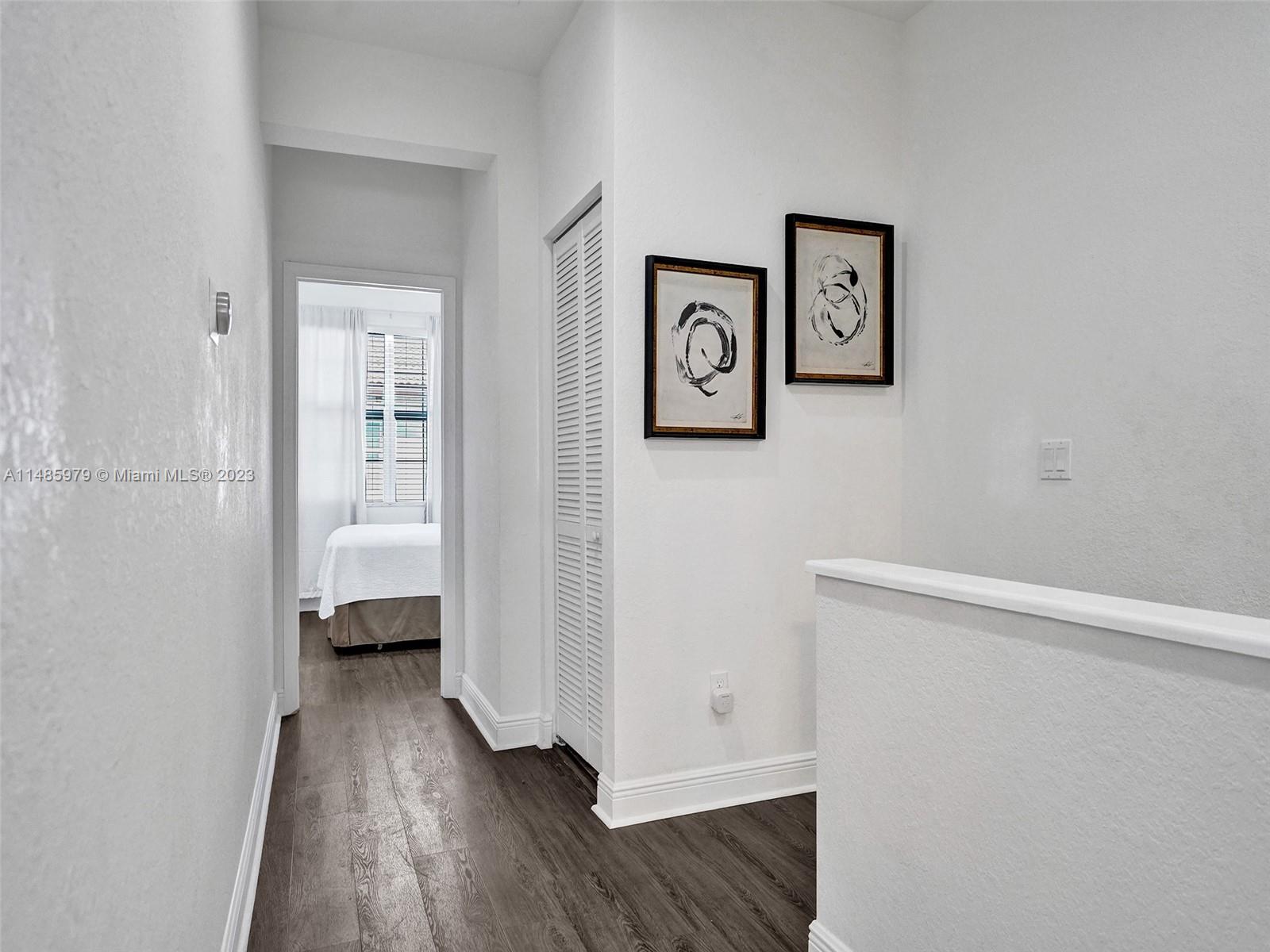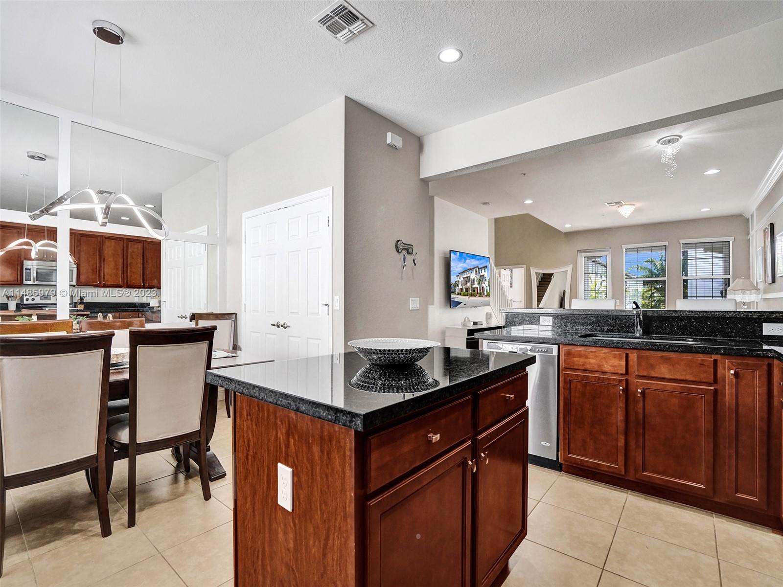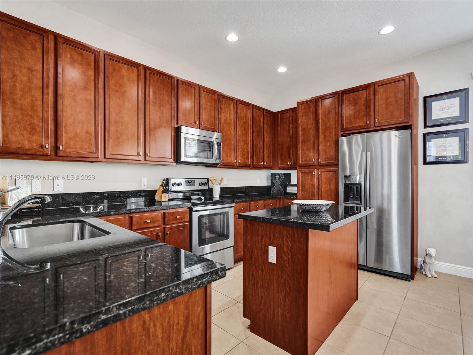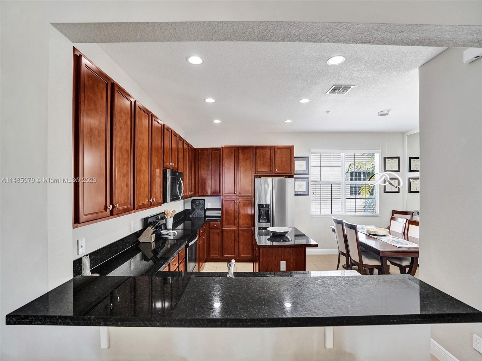 Discover the largest 3-story townhome model in Montclair's gated community in Miramar. This residence boasts 3 bedrooms, 3.5 bathrooms, and a 2-car garage with hurricane impact windows and a spacious balcony. The kitchen features 42" European-style wood cabinetry, a large island, quartz countertops, and stainless-steel Whirlpool appliances. Stylish upgrades include an elegant glass chandelier, tile, and laminate flooring. The master bedroom offers Ikea custom closets. Centrally located with amazing amenities including a clubhouse, gym, pool, and more. A ground-floor bedroom with an ensuite bathroom adds convenience. Residents can unwind in the scenic pool area overlooking a serene lake. Enjoy tranquility in this quiet, upscale community.