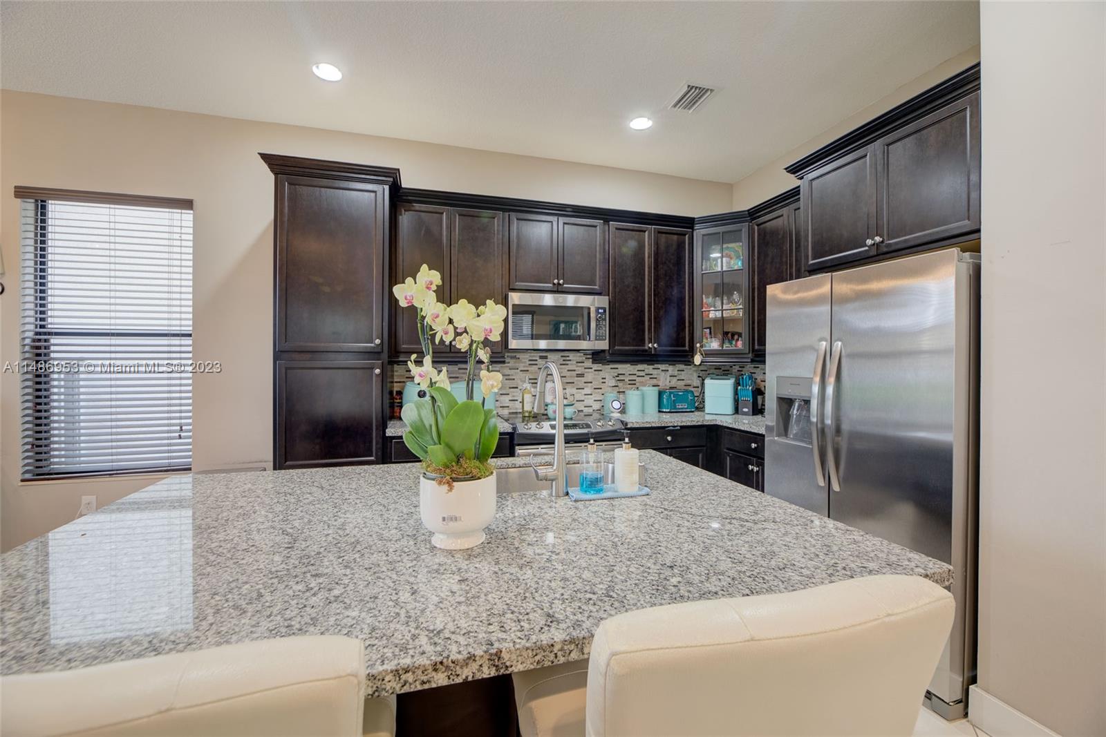 Waterfront, Single-Family Home features 3 bedrooms 2 ½ bathrooms with 2 a car garage in exclusive Bonterra Community. Open concept main floor features ceramic flooring with beautiful natural light throughout. Spacious kitchen with tall dark cabinetry, stainless steel appliances and granite countertops. The living area opens to the backyard and waterway canal that is perfect for entertaining with no direct rear neighbors. Upstairs hosts the primary suite with a walk-in closet, two more bedrooms, a shared full bathroom and laundry room. Bonterra Community is gated with 24-hour security and community amenities include: saltwater pool, playground, clubhouse with gym and game room. Located in a top-rated school district and easy access to major highways.