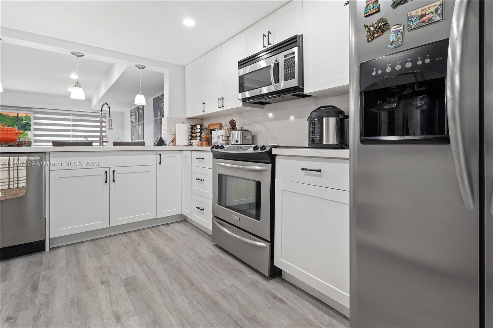 TOTALLY REMODELED 4 BEDROOM, 2 1/2 BATHROOM TOWNHOUSE IN PRIME LOCATION OF MIAMI LAKES. EVERYTHING HAS BEEN TASTEFULLY UPDATED. BRAND NEW LAMINATE FLOORING, BASE BOARDS, SS APPLIANCES, WASHER/DRYER & BATHROOMS. KITCHEN BOASTS BEAUTIFUL WHITE QUARTZ COUNTERS WITH WHITE CABINETS GIVING IT A CONTEMPORARY LOOK. PATIO HAS UNDERGONE A COMPLETE MAKEOVER INTO A BEAUTIFUL OASIS PERFECT FOR ENTERTAINING! LAYOUT INCLUDES ONE BEDROOM & 1/2 BATHROOM ON GROUND FLOOR. LARGE MASTER BEDROOM WITH BEAUTIFUL EN SUITE. IMPACT WINDOWS THROUGHOUT WHICH WILL REDUCE INSURANCE COSTS. LOW HOA COVERS EXTERIOR & ROOF. 3 ASSIGNED SPACES AND PLENTY OF GUEST SPACES. QUIET NEIGHBORHOOD CLOSE TO EVERYTHING. COMMUNITY HAS RESERVES AND MAY QUALIFY FOR 10% DOWN.