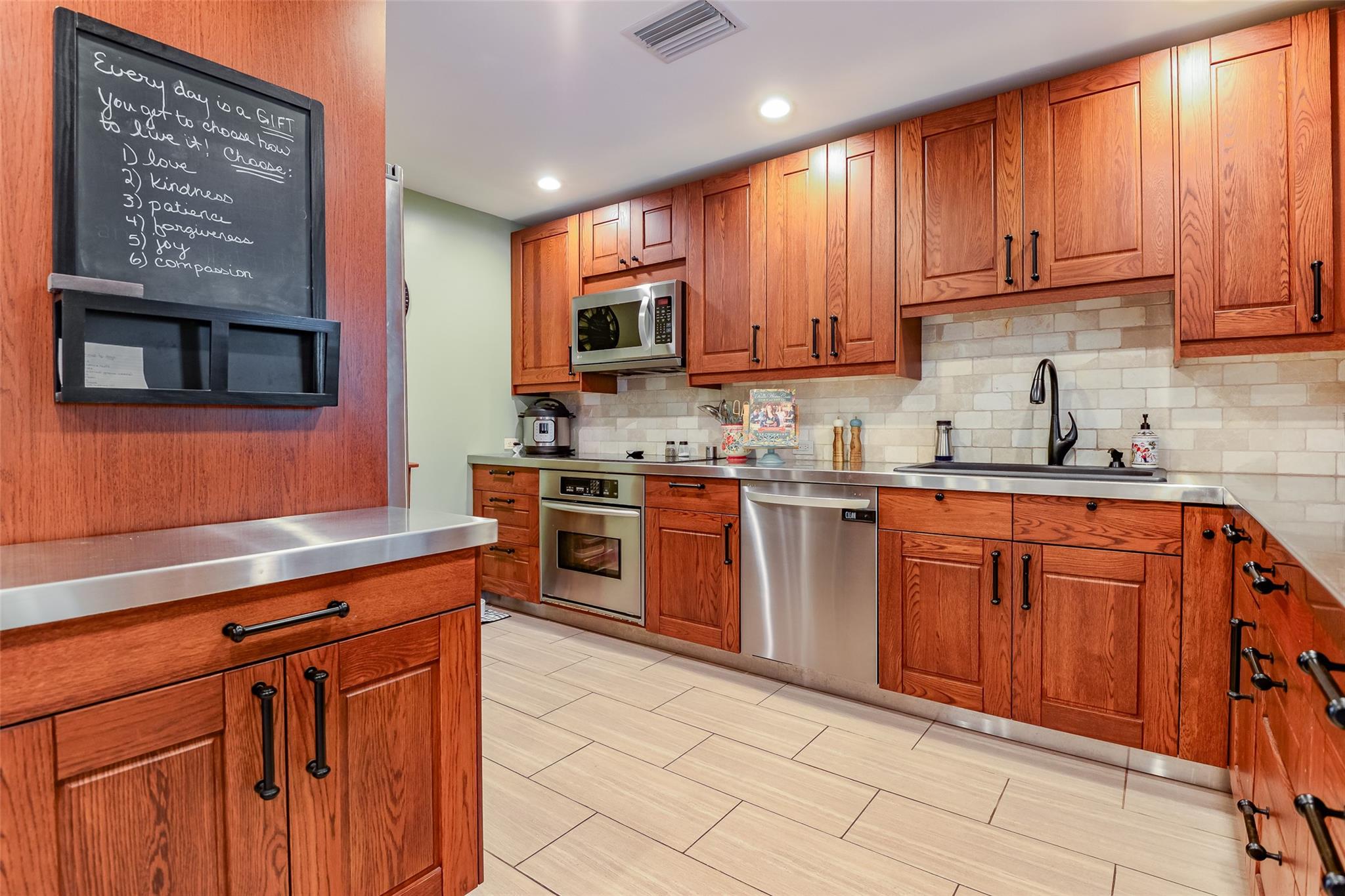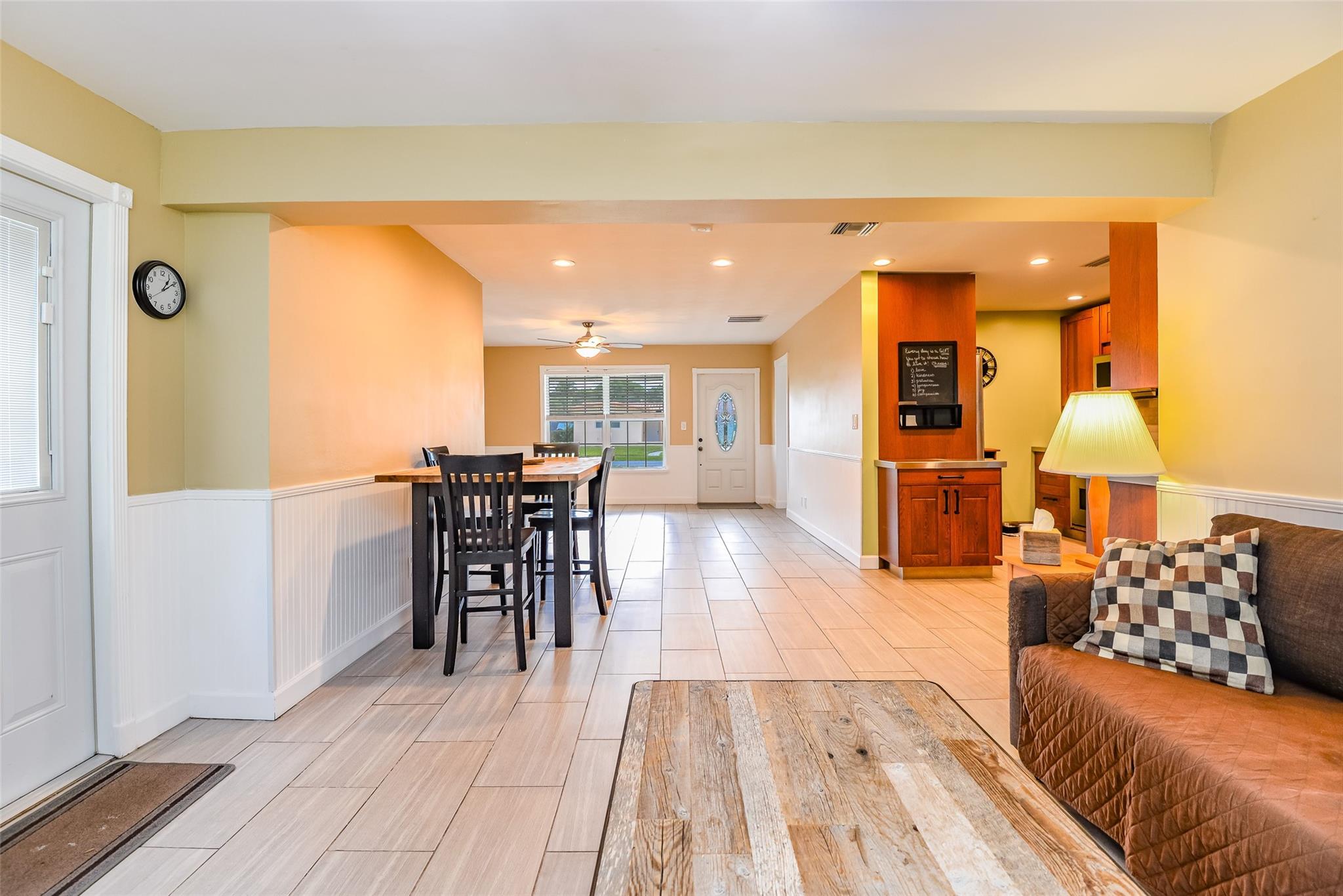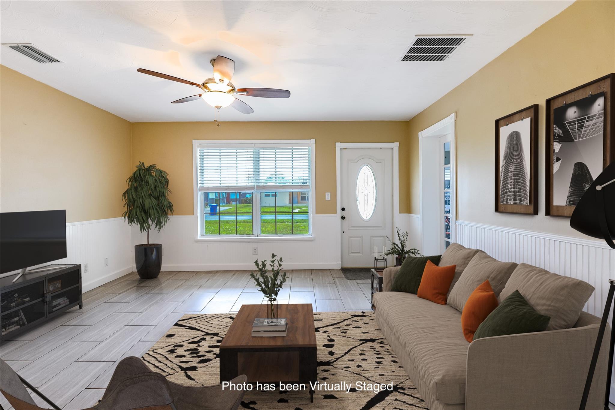 This bright and freshly painted home has a new roof, large kitchen, tile flooring throughout and a bonus room that can be a studio or 3rd bedroom. Kitchen features custom cabinets, stainless steel appliances and stainless steel counter tops. Great open floor plan. The Florida Room overlooks a beautiful back yard ready for entertaining with bistro lighting and fire pit. Mature trees and gorgeous Staghorn Ferns turn this yard into a calming retreat. Side yard has plenty of room for a boat, already fenced with a double gate. The neighborhood has sidewalks throughout and centrally located just minutes to downtown, the beach, airport, shopping and major highways. A boat ramp at Riverland Woods Park makes it convenient for launching of boats.