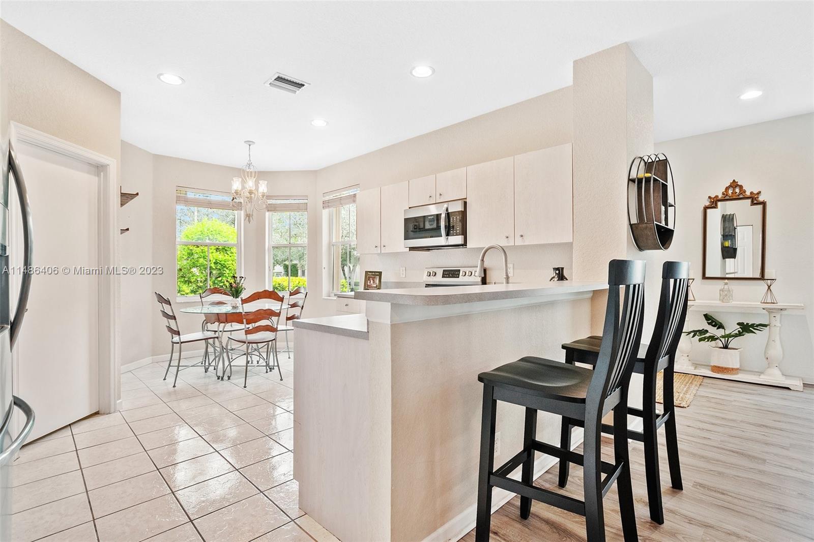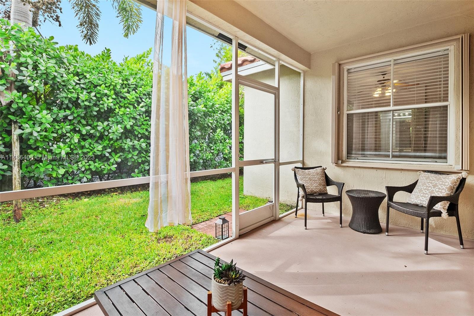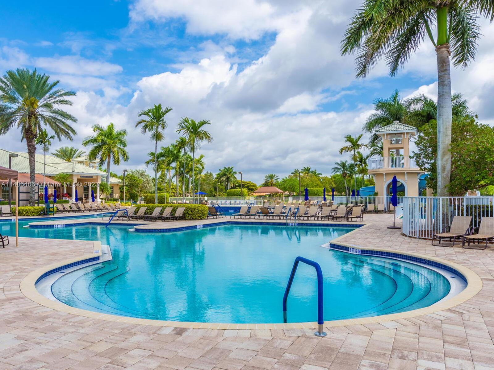Beautifully maintained home in Savanna in the largest GATED community in Weston! Home has an open floorplan feel w/laminate flooring thru-out living areas & bedrooms & tile in wet areas - NO CARPET! Spacious kitchen has stainless steel appliances, snack counter, & breakfast nook w/bay windows that make the space light & bright. Master suite features a bathroom w/dual sinks, tub w/separate shower, & walk-in closet. In the backyard is a screened-in patio w/mature vegetation that offers plenty of privacy. Other features of this home include NEWER A/C (2018), NEW ROOF (2022), & hurricane shutters. This community has many amenities: two manned gates, resort-style pool, lap pool, children's splash area, clubhouse, tennis & basketball courts, soccer field, hockey rink, playground, parks, & MORE!
