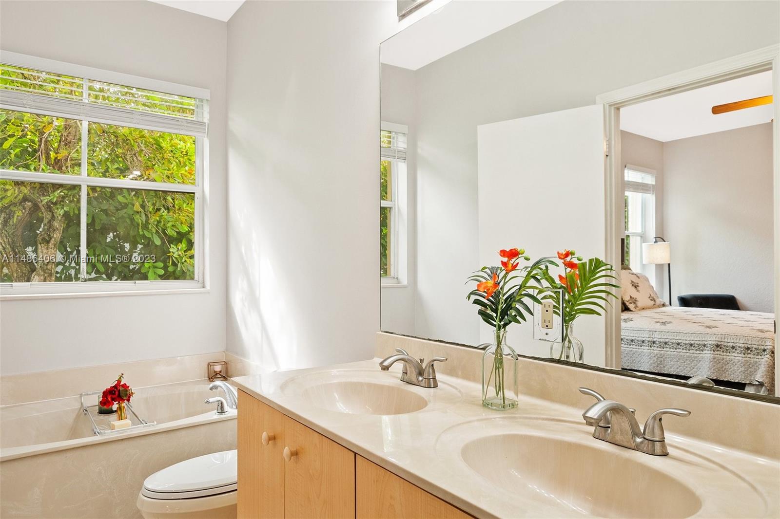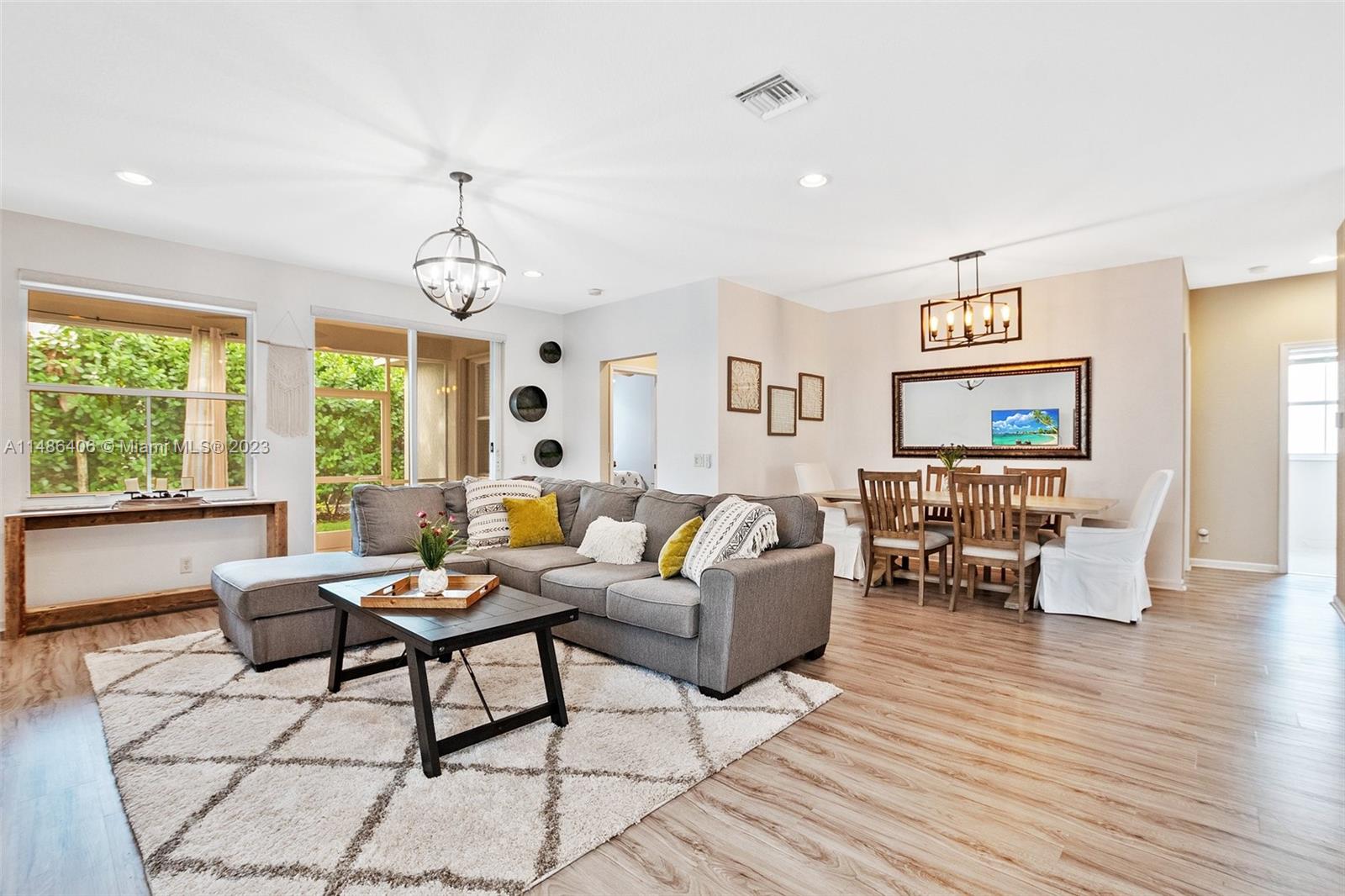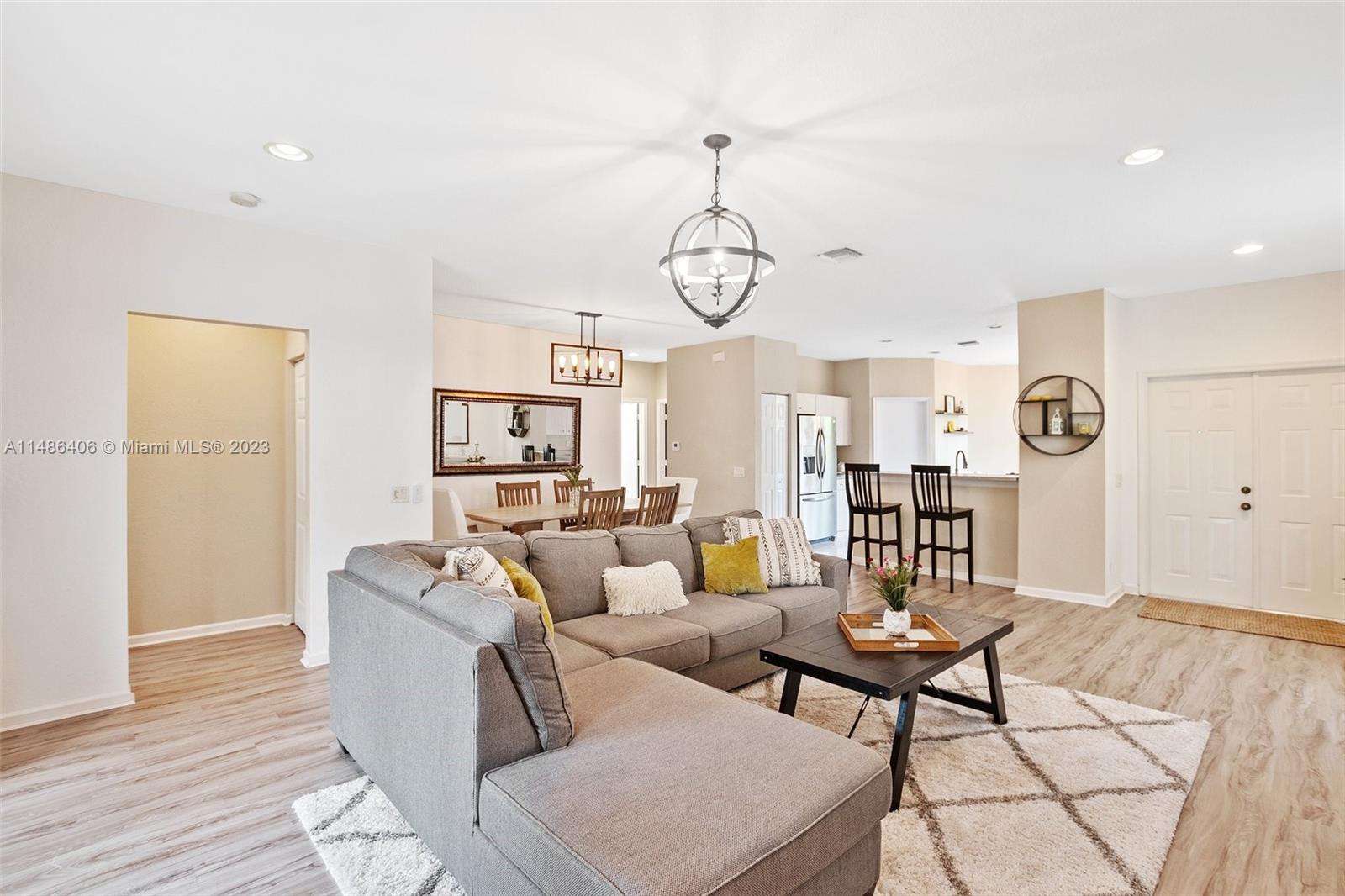 Beautifully maintained home in Savanna in the largest GATED community in Weston! Home has an open floorplan feel w/laminate flooring thru-out living areas & bedrooms & tile in wet areas - NO CARPET! Spacious kitchen has stainless steel appliances, snack counter, & breakfast nook w/bay windows that make the space light & bright. Master suite features a bathroom w/dual sinks, tub w/separate shower, & walk-in closet. In the backyard is a screened-in patio w/mature vegetation that offers plenty of privacy. Other features of this home include NEWER A/C (2018), NEW ROOF (2022), & hurricane shutters. This community has many amenities: two manned gates, resort-style pool, lap pool, children's splash area, clubhouse, tennis & basketball courts, soccer field, hockey rink, playground, parks, & MORE!