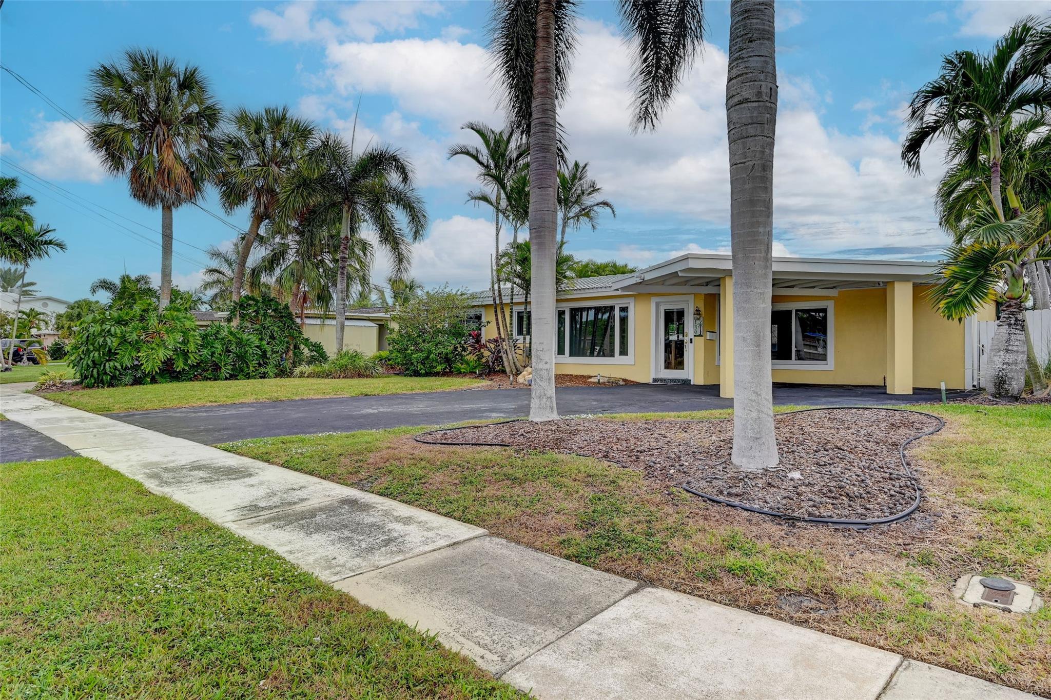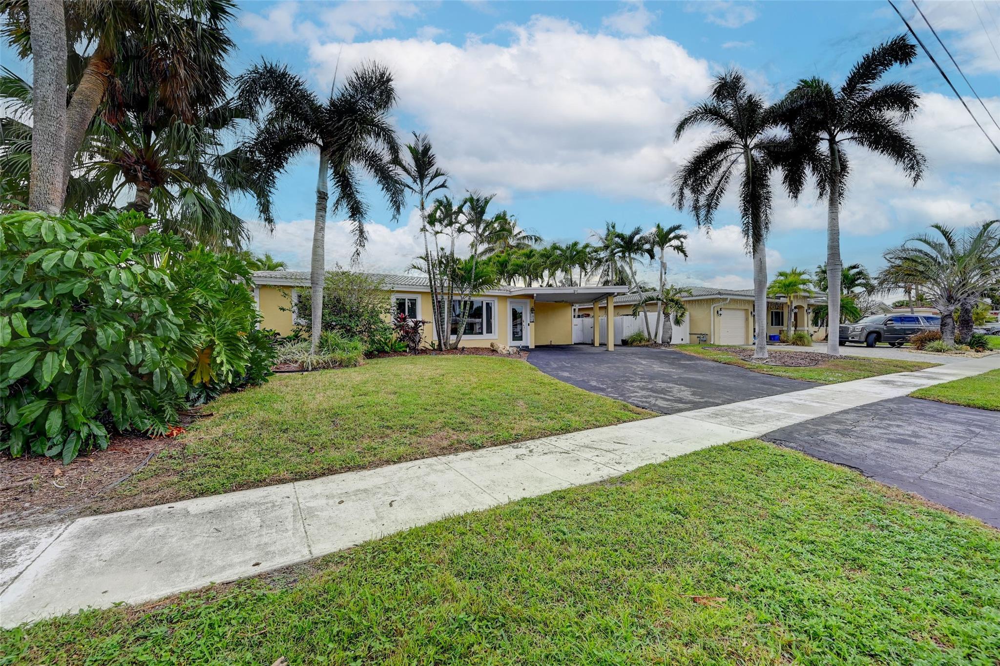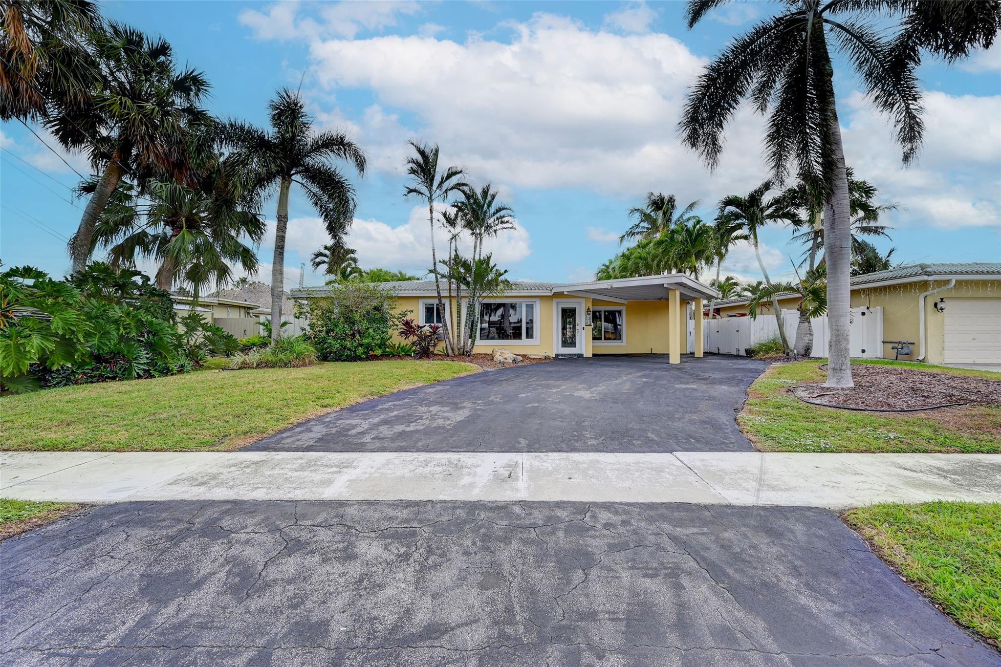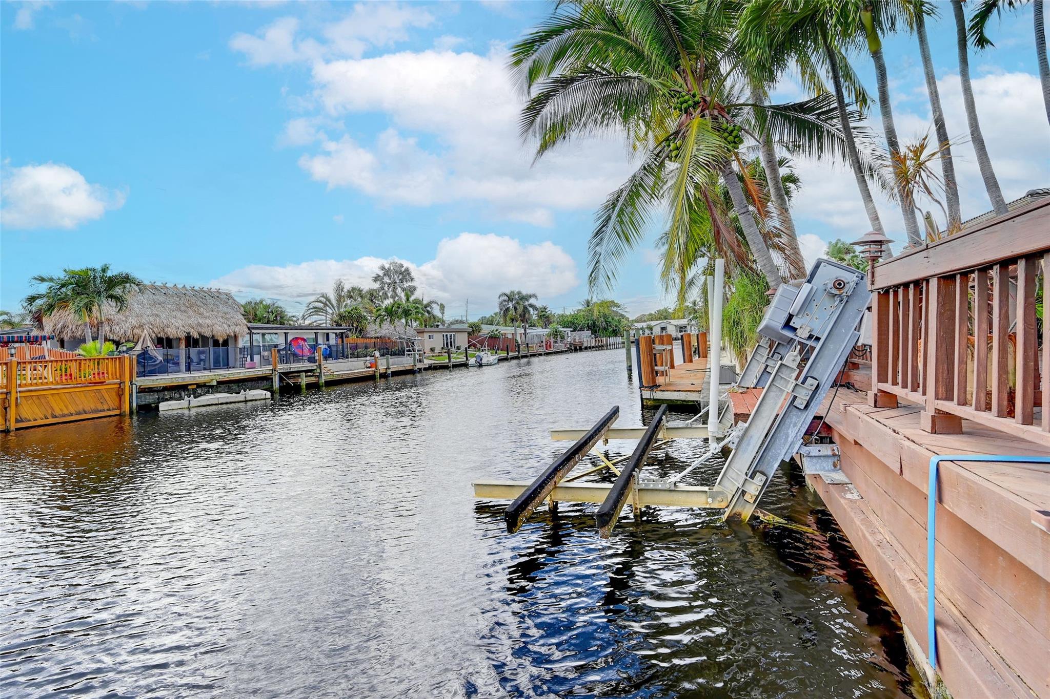 Beautiful updated 2 bedroom, 2 bath waterfront home with pool. Very spacious open floor plan with den/office area overlooking canal. Gourmet kitchen with stainless steel appliances and gas viking stove. Impact windows and doors throughout. New A/C. 1 carport and long driveway with plenty of room for parking. Salt water pool with large area for entertaining with tiki hut. Utility room and separate storage room. New electric panel. New pilings. South exposure! Great location close to shopping, restaurants, golfing and the beach! Lowest price waterfront home in Pompano with only one fixed bridge, federal highway.