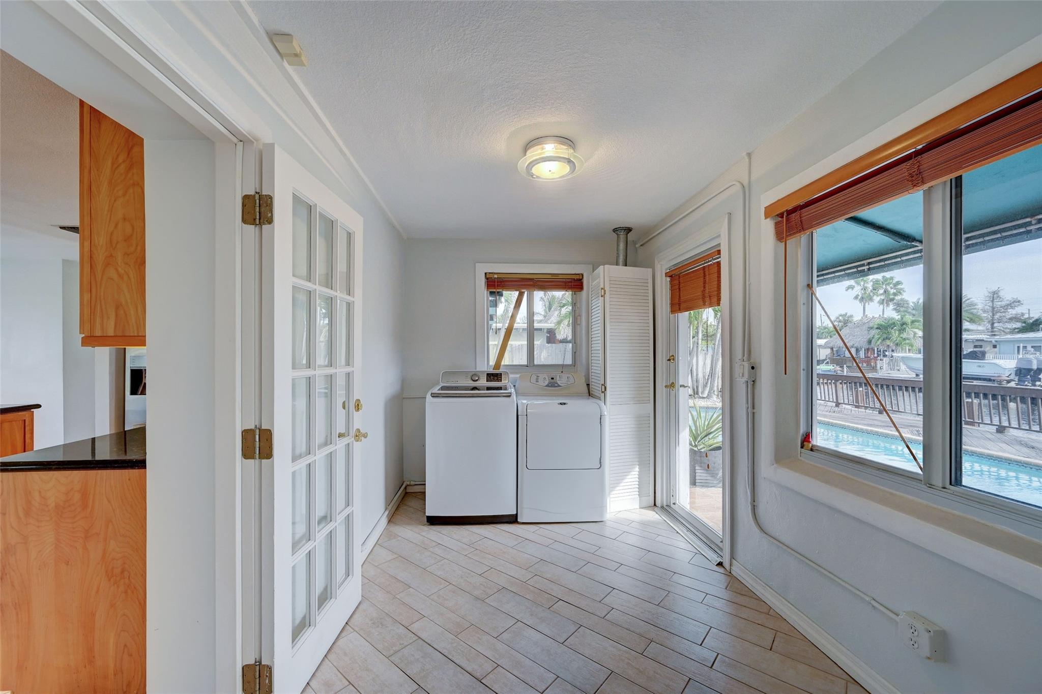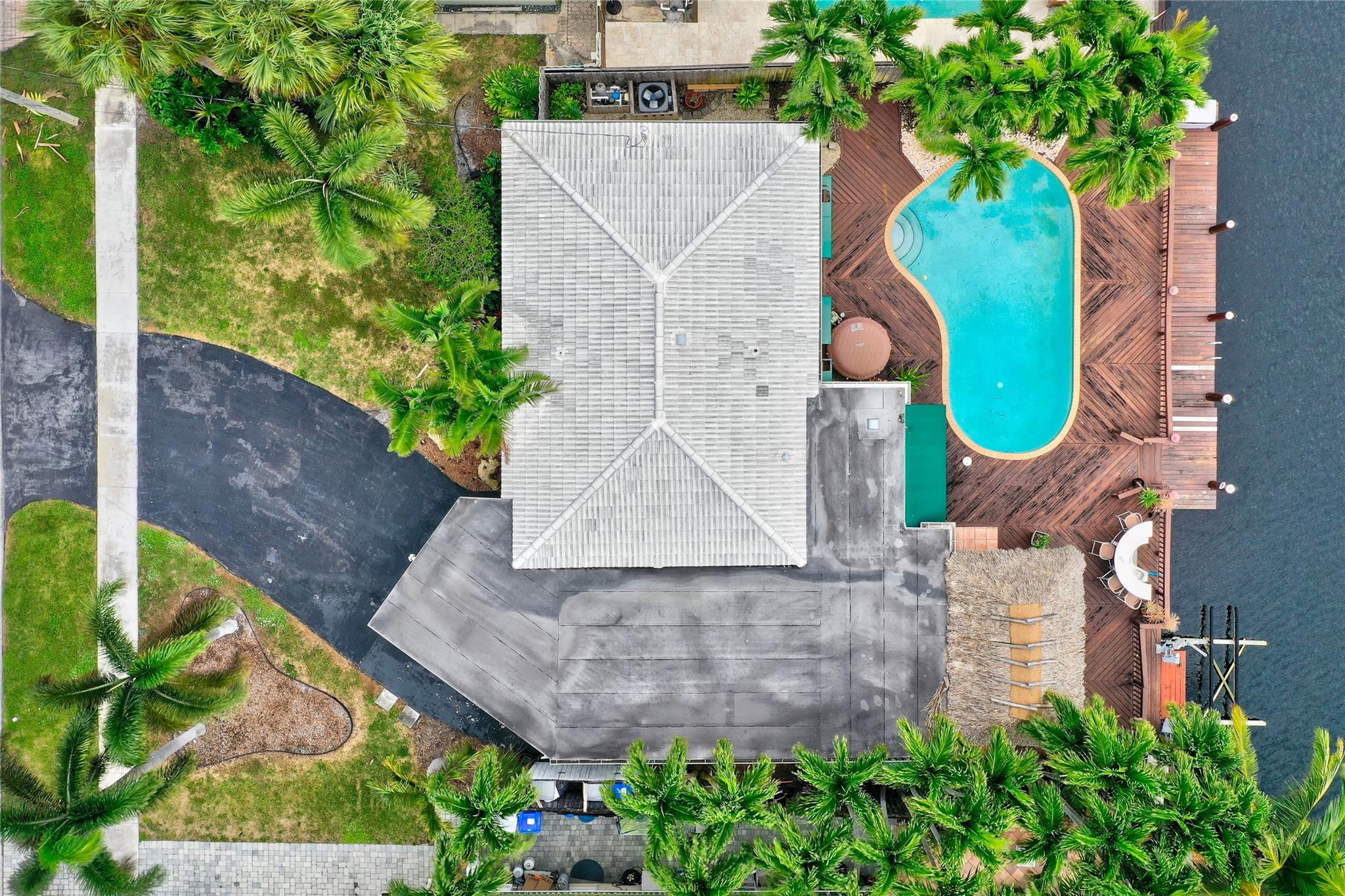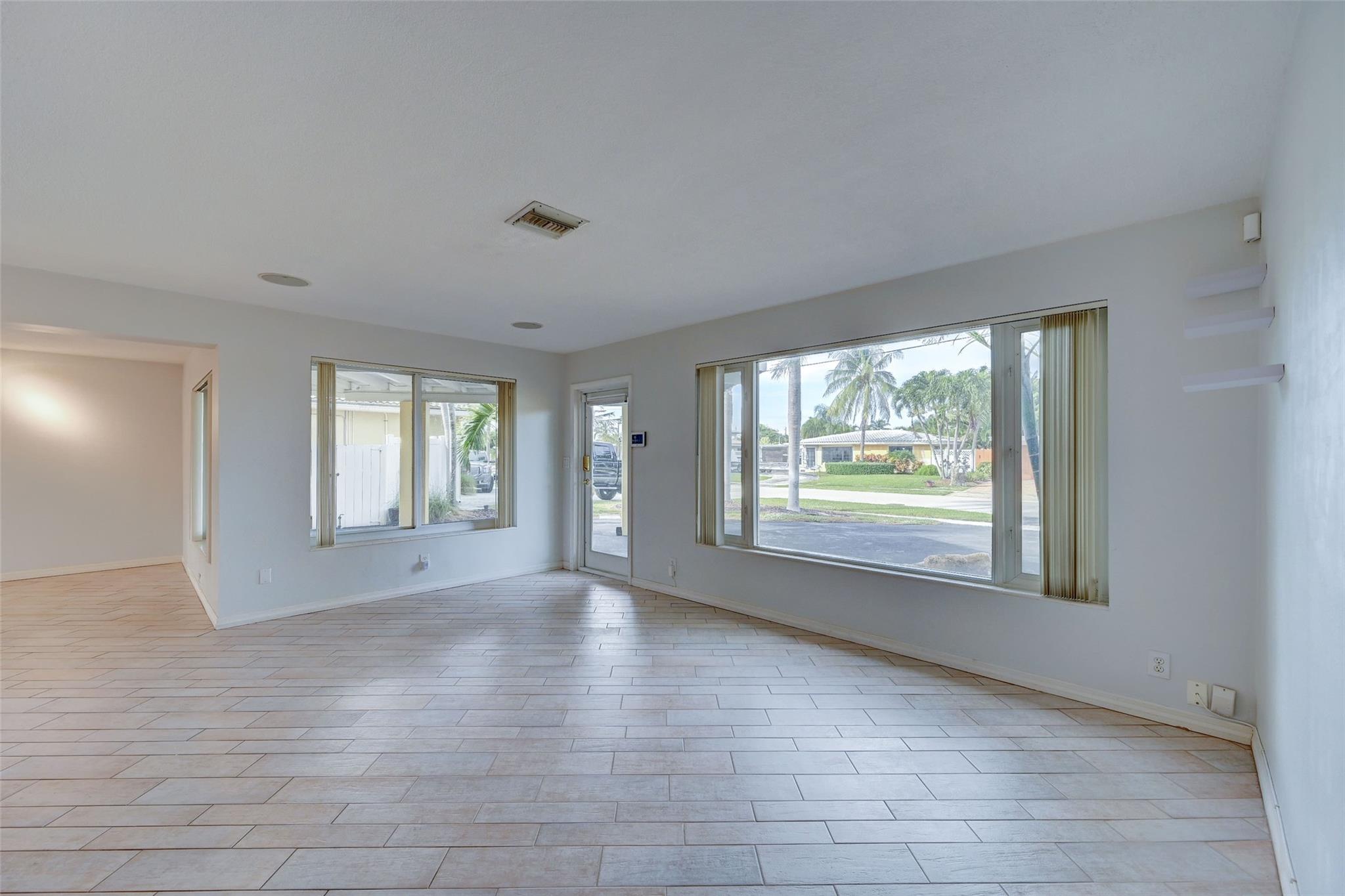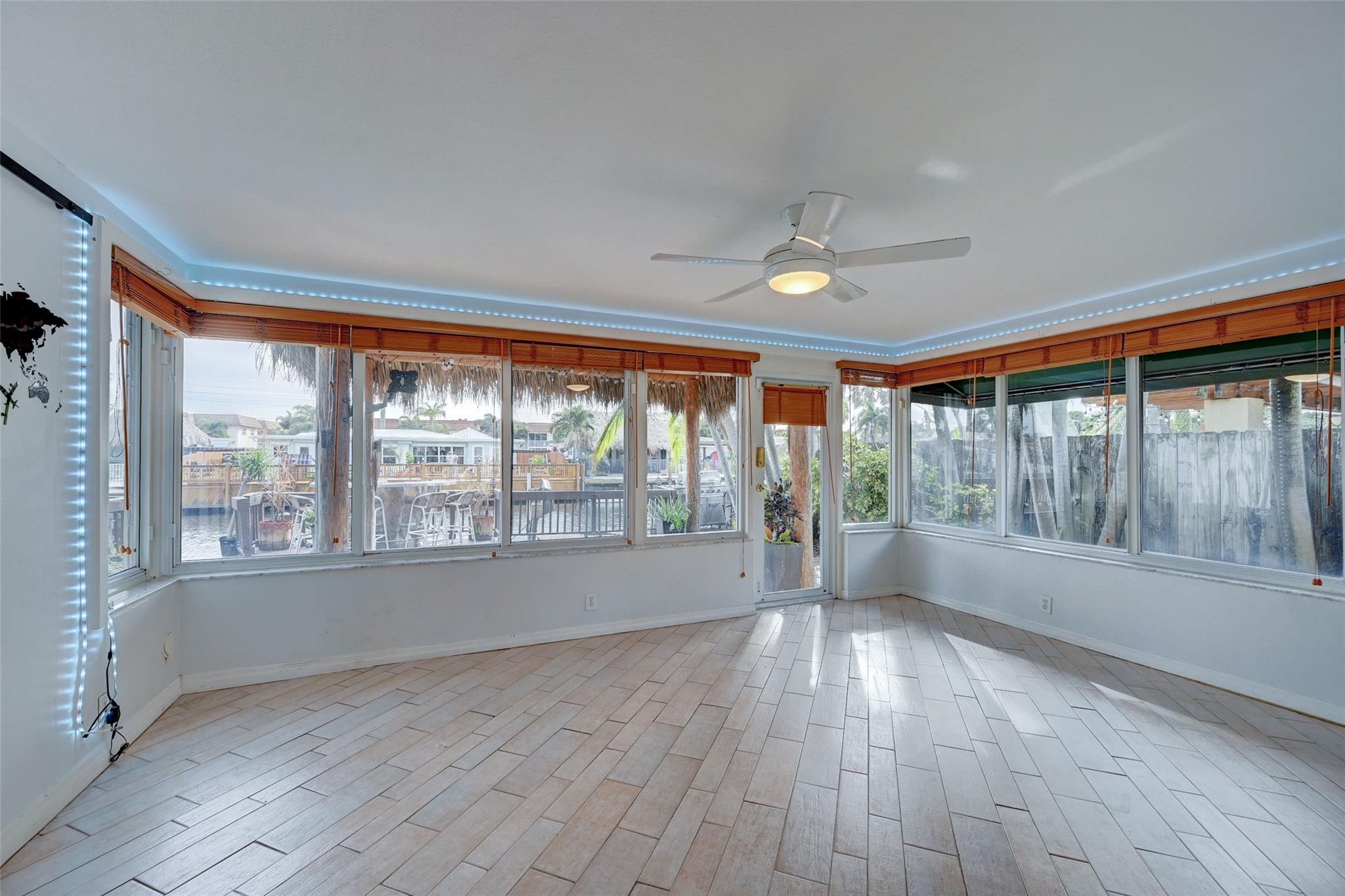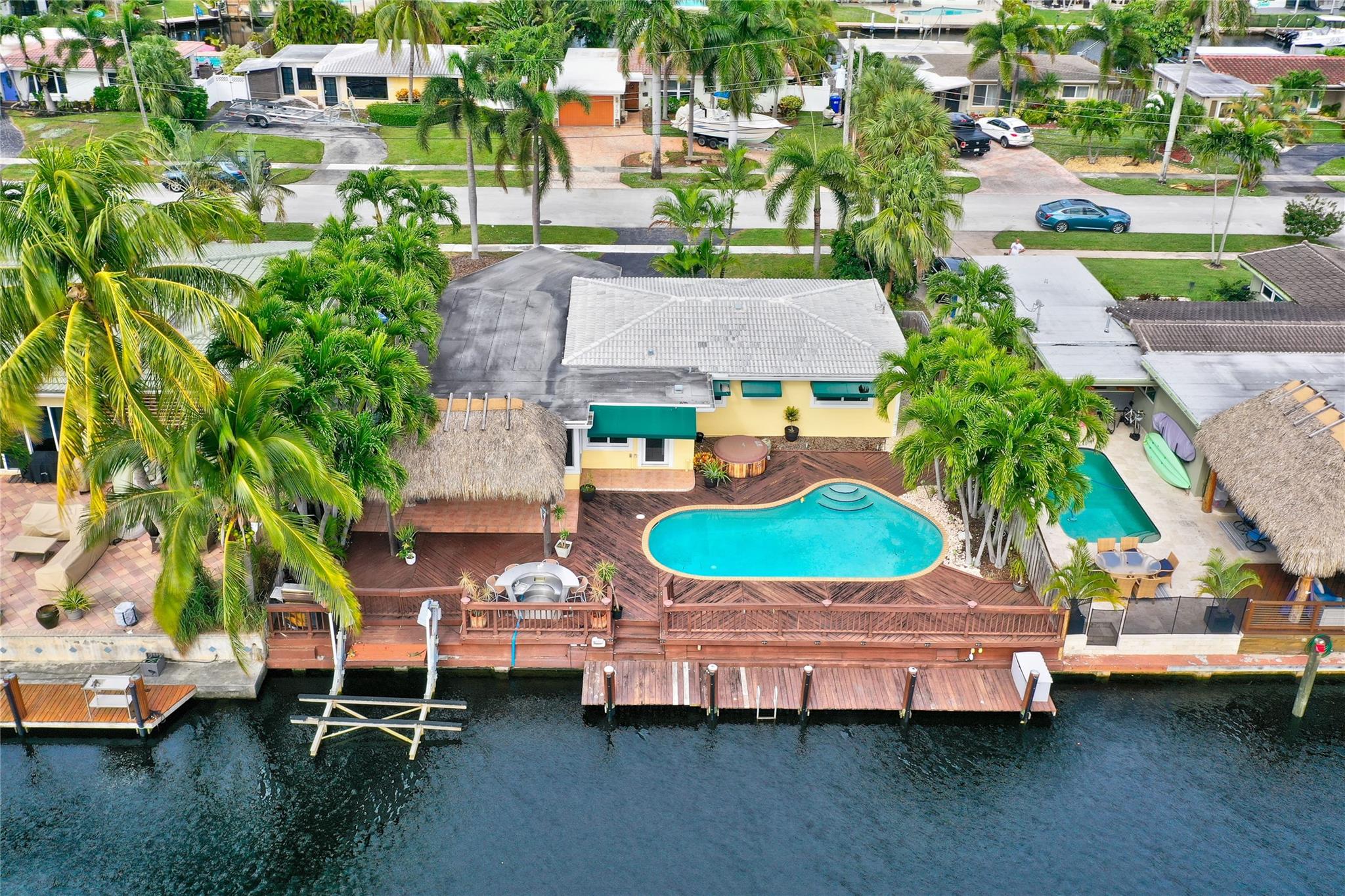 Beautiful updated 2 bedroom, 2 bath waterfront home with pool. Very spacious open floor plan with den/office area overlooking canal. Gourmet kitchen with stainless steel appliances and gas viking stove. Impact windows and doors throughout. New A/C. 1 carport and long driveway with plenty of room for parking. Salt water pool with large area for entertaining with tiki hut. Utility room and separate storage room. New electric panel. New pilings. South exposure! Great location close to shopping, restaurants, golfing and the beach! Lowest price waterfront home in Pompano with only one fixed bridge, federal highway.