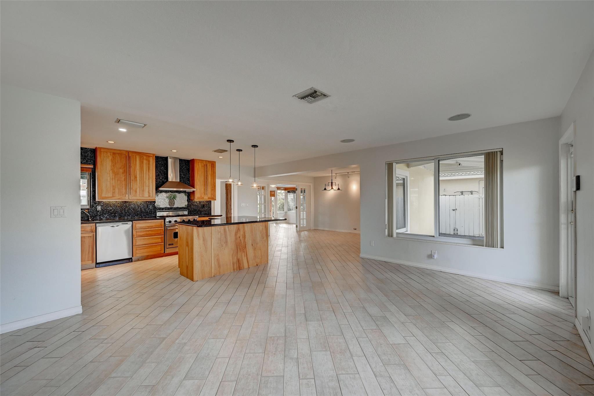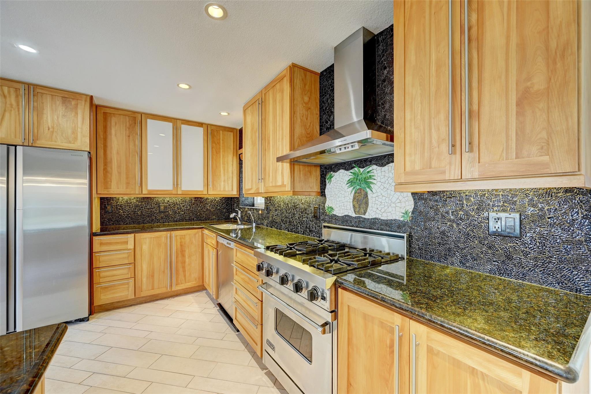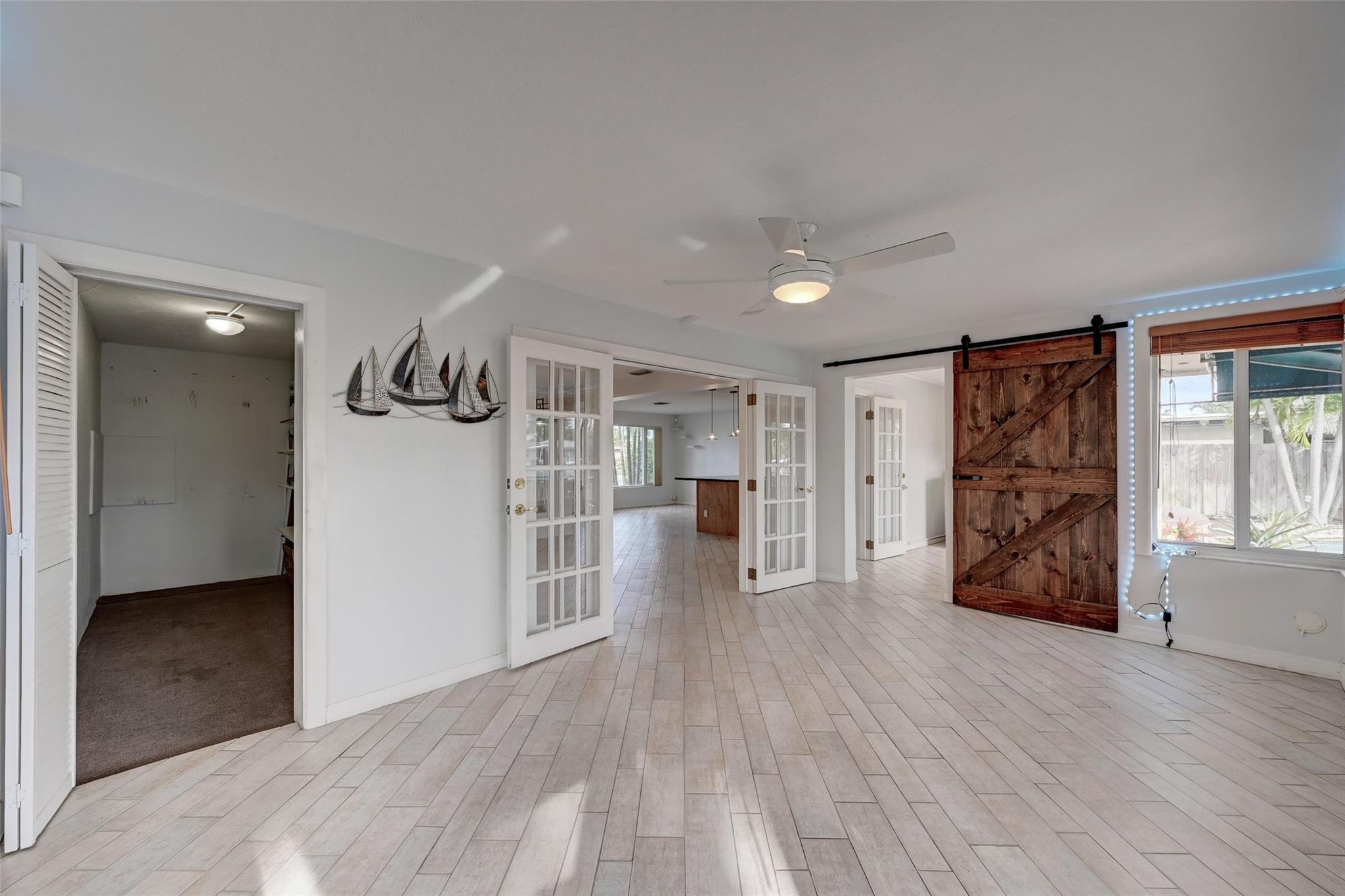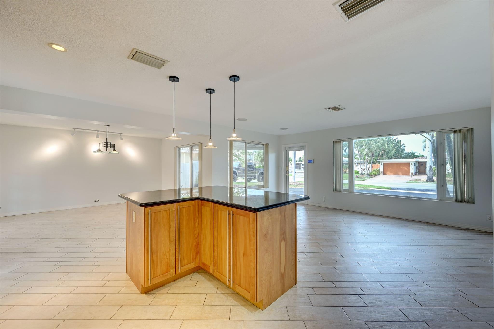 Beautiful updated 2 bedroom, 2 bath waterfront home with pool. Very spacious open floor plan with den/office area overlooking canal. Gourmet kitchen with stainless steel appliances and gas viking stove. Impact windows and doors throughout. New A/C. 1 carport and long driveway with plenty of room for parking. Salt water pool with large area for entertaining with tiki hut. Utility room and separate storage room. New electric panel. New pilings. South exposure! Great location close to shopping, restaurants, golfing and the beach! Lowest price waterfront home in Pompano with only one fixed bridge, federal highway.