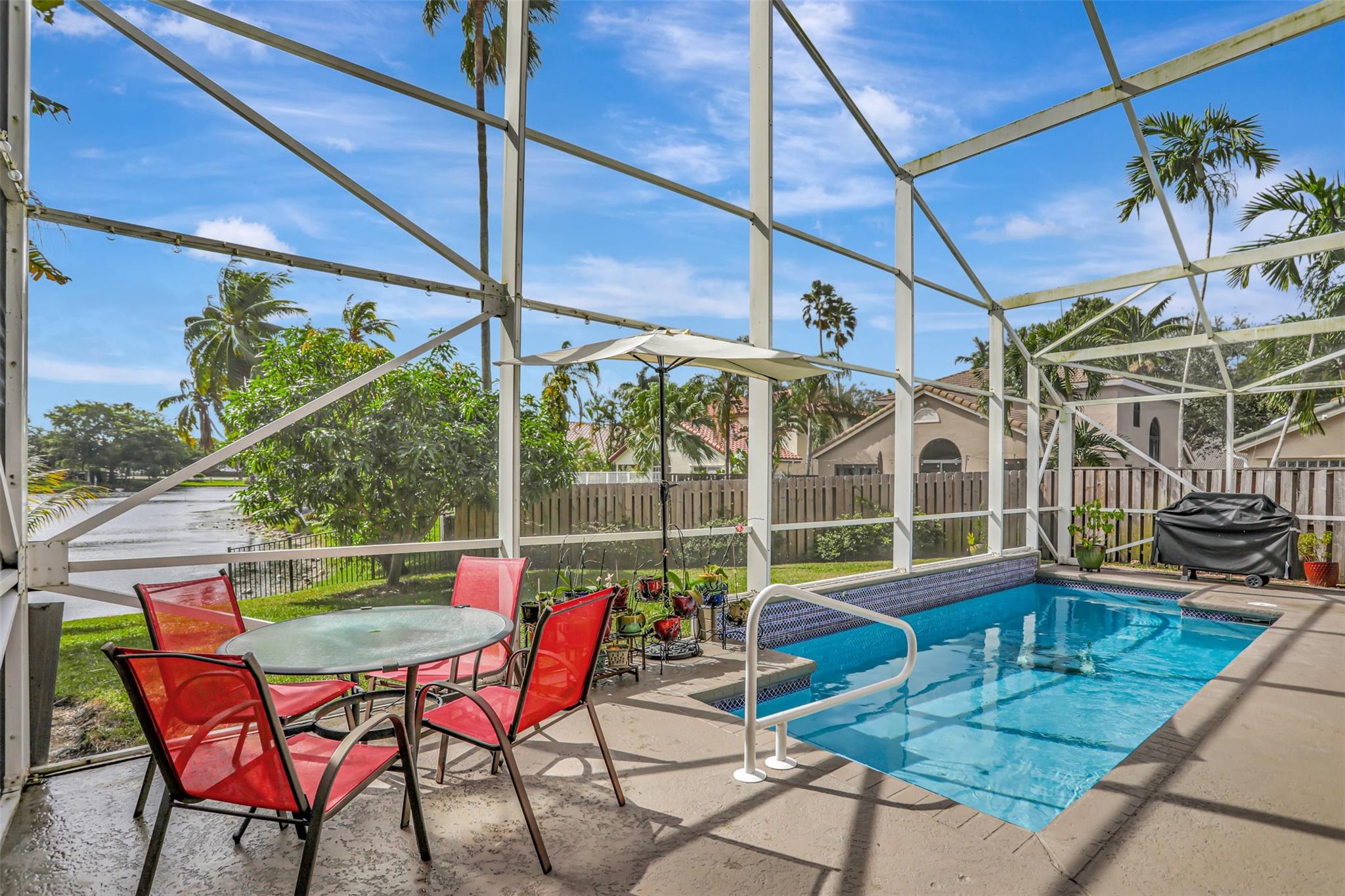 Beautiful 3 bedroom 2 bath pool home on the lake in the gated community of Embassy Lakes. Roof is only 2 years old! Mid to end of 2021, seller renovated kitchen, New hurricane rated garage door, exterior painted, and new gutters. 2022 Pool was resurfaced and new A/C unit. 2023 had ALL new A/C duct work put in home along with front landscaping. Driveway redone about 5 years ago. A rated school system and a community packed with recreation facilities for the whole family. Garage converted to play room with working door but can easily be converted back to full garage.