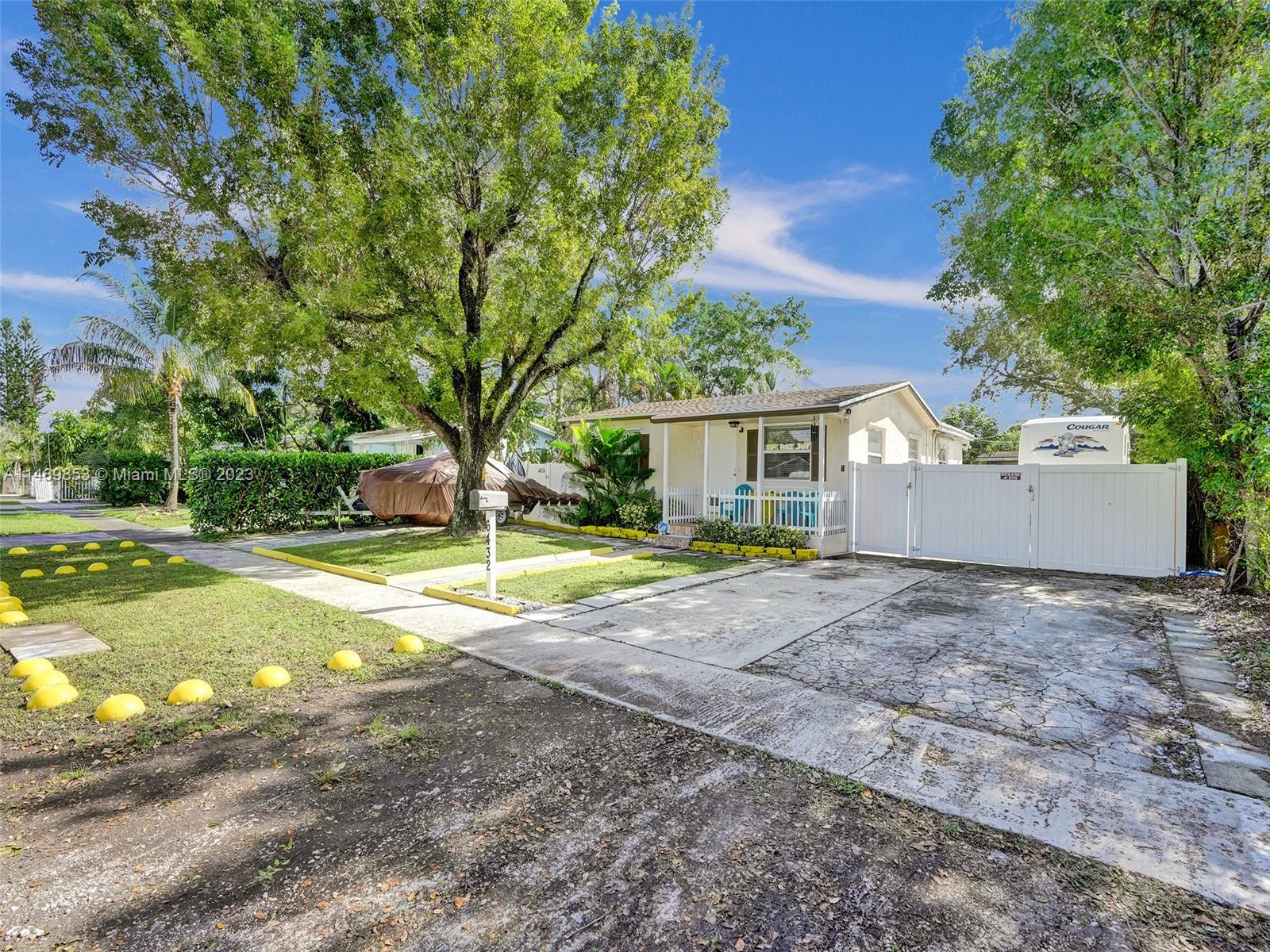 Indulge in a sophisticated sanctuary near Hard Rock Stadium. This secure residence boasts robust walls and a sleek, modern design. With 3 beds, 2 baths, and a thoughtful interior layout, it promises spacious living. The kitchen, equipped with top-tier appliances, is a culinary haven. Seamless indoor-outdoor transitions lead to an expansive backyard, perfect for entertaining. This isn't just a home; it's a lifestyle, complete with a comprehensive alarm system for peace of mind. The generous backyard accommodates recreation, boat and RV. Elevate your living experience where privacy and convenience converge.