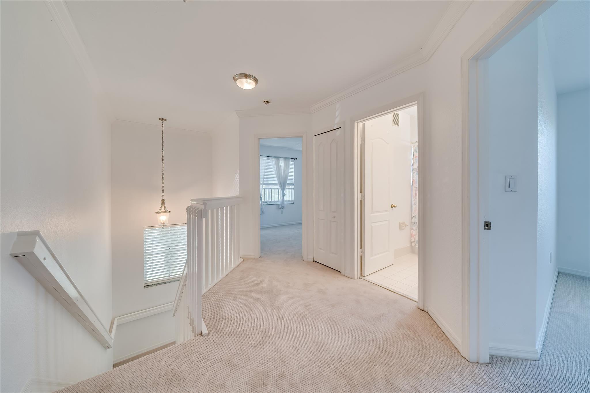 Fantastic corner unit townhouse in gated community features kitchen with a breakfast bar that opens to the living room. New carpet upstairs (July 2023) and tile downstairs. Master bedroom with walk in closet and balcony. Crown molding throughout. Freshly painted. Washer and dryer off of the kitchen. 2 pets up to 40 pounds each allowed. Renting allowed. Shows well! Don't miss it!