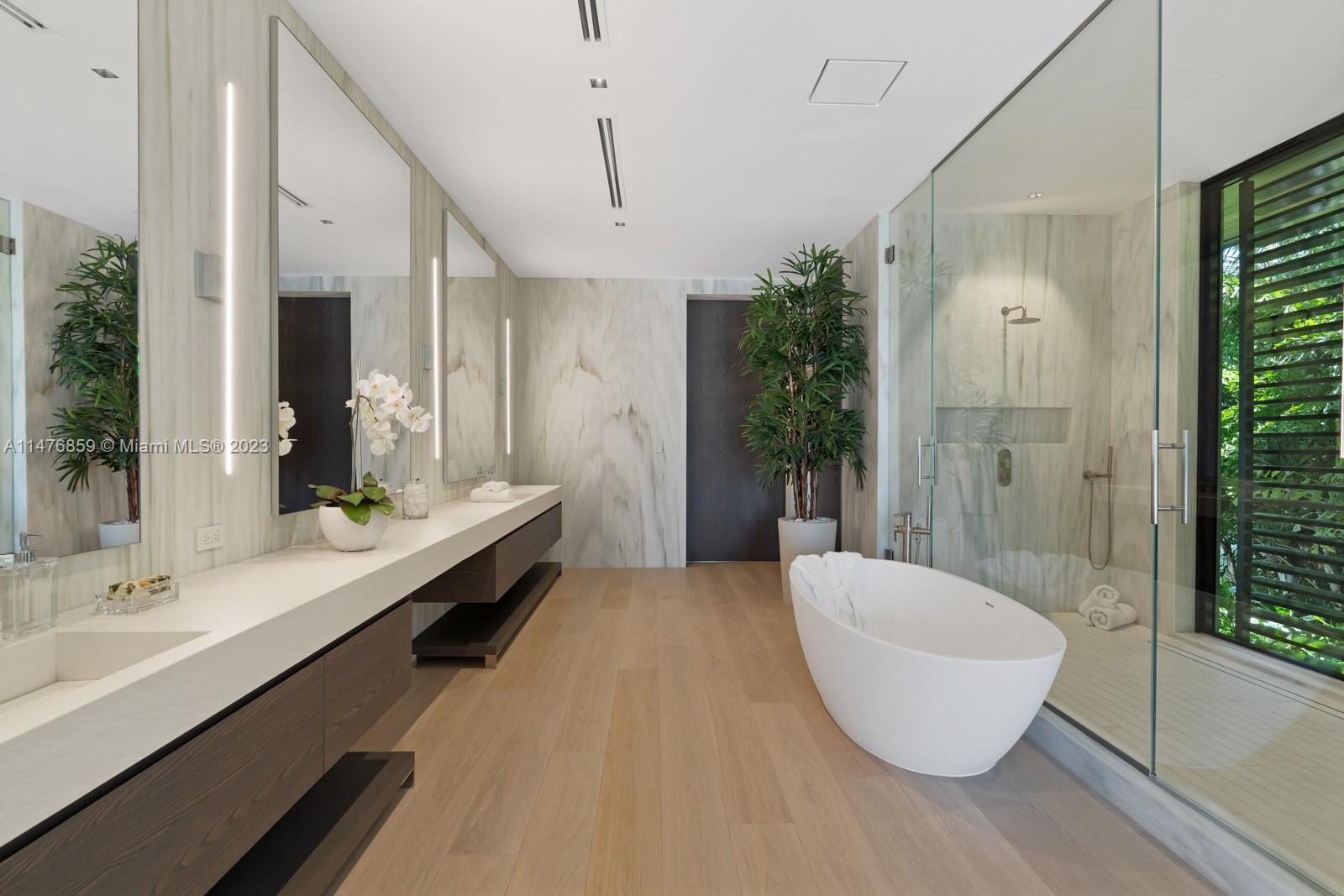 Discover this exquisite waterfront new construction masterpiece, designed by renowned Tropical Modern architect, Cesar Molina. The interior features are truly exceptional, with Mia Cucina cabinetry, Wolf + Subzero appliances, state-of-the-art home theatre, gym with steam & sauna. The primary bedroom has a private patio with pool, and an incredibly large closet incl. wet bar. A rare full size rooftop terrace with elevator access is perfect for unforgettable day and nighttime gatherings overlooking the beautiful Miami Skyline. 4 car electric garage with detached upstairs guest house. A private boat dock with 100 ft of water frontage provides a gateway to the open ocean. With its flawless craftsmanship, unrivaled amenities, & idyllic setting, this waterfront estate transcends the ordinary.