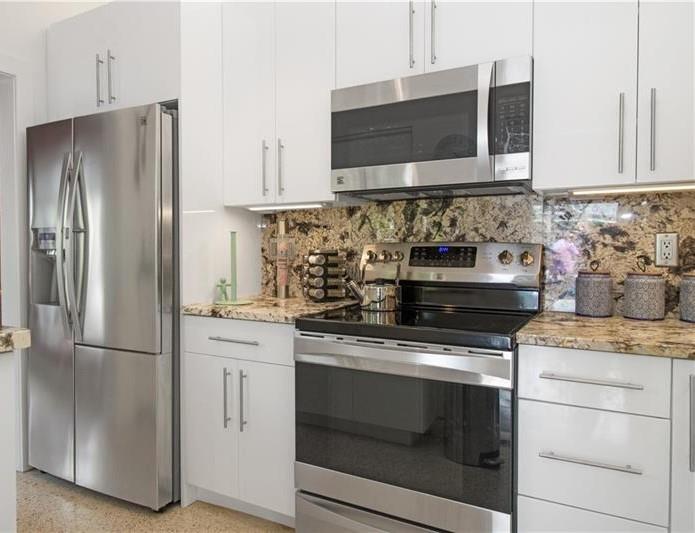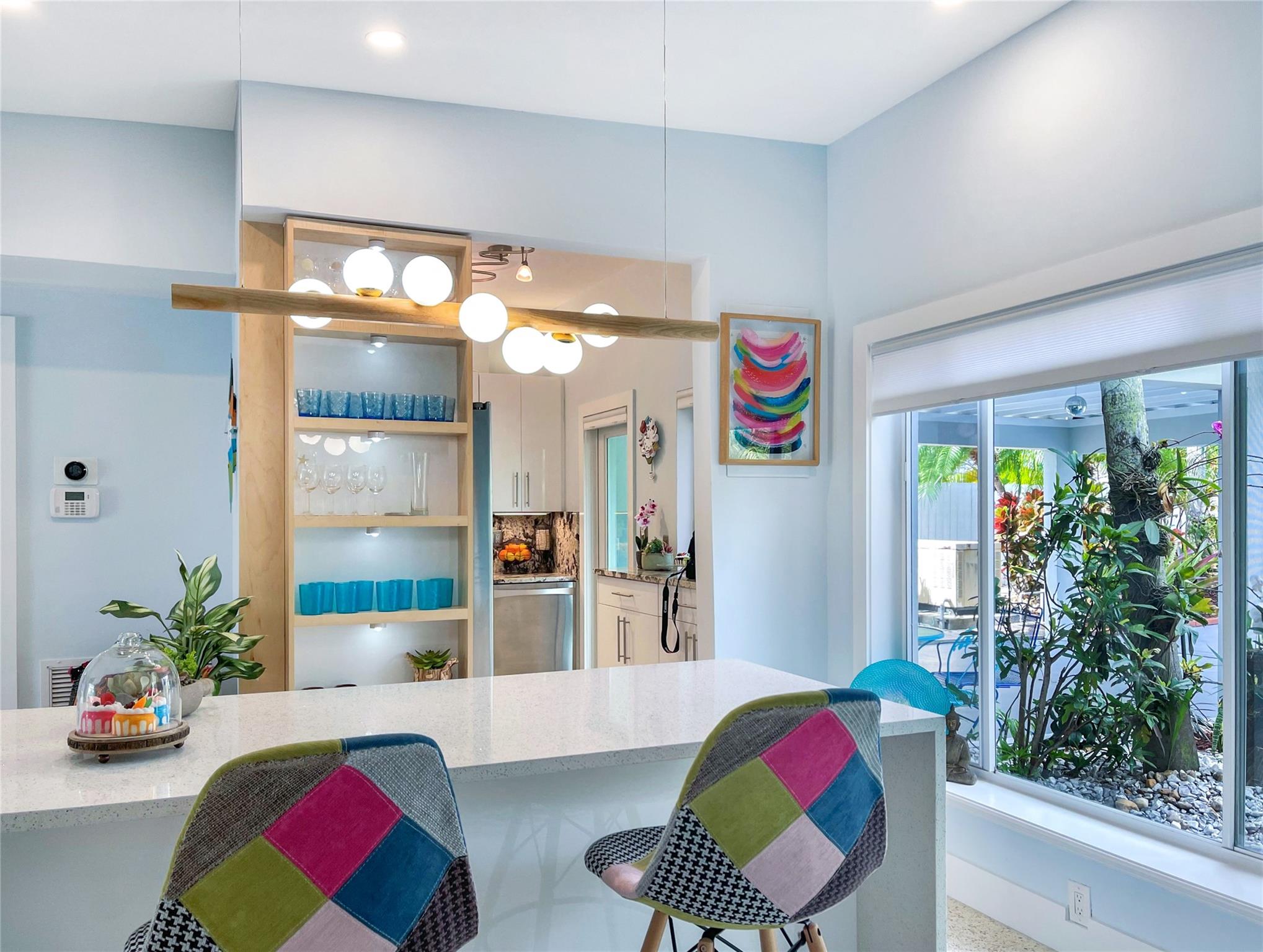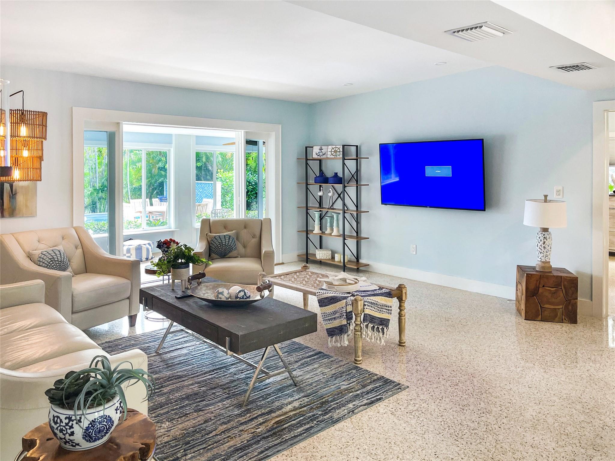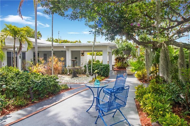 Once-in-a-while opportunity to own a large private lakefront compound in desirable Poinsettia Heights designed for entertainment, located just 2,5 miles from the beach. Upon entry, you'll be greeted by a magnificent courtyard garden. The lush backyard allows ultimate privacy, and the constant lake breeze will make you feel like you are on vacation every day. There are multiple entertaining outdoor & indoor areas. Each room welcomes light in. Terrazzo floors, Split bedroom plan. Renovated kitchen. Convenient attached Carport. Newer roof and newer A/C. Heated swimming pool. Gas Generator, on-demand hot water heater. Secured fenced and Remote-controlled driveway gate. Cul-de-Sac. No HOA. Lake with no ocean access. Must See.