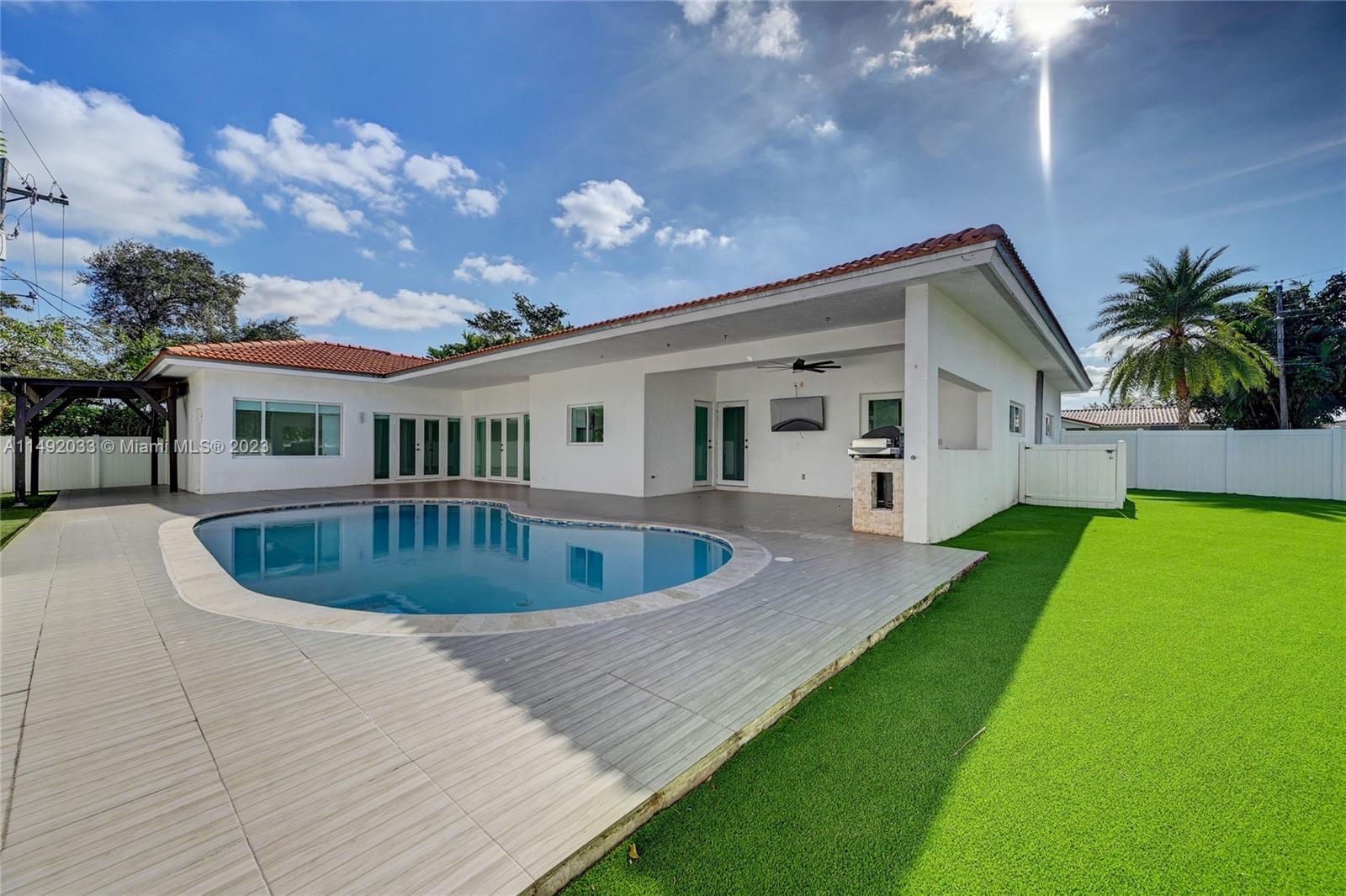 Gorgeous Home in Skylake! One of the most desirable streets in Skylake! Completely remodeled with Hing-End finishes inside and out! All done with permits! This open layout connects the Dining room with kitchen and living room. This 3,200 SqFt home features 5 bedroom and 3 full bathrooms with Maid/In-Law Quarters and an extra room for a home office, home theater or playroom. Brand new Kitchen with Calacatta countertops, Brand new bathrooms, Marble Floors throughout the house, High Impact Windows and doors, Brand new modern wood interior doors with glass! This is the perfect home to entertain friends and family with a beautiful Heated Pool, artificial turf for mini soccer field, Gym, BBQ area, Generator System, Brand new electric fence with 2 electric gates! This home lacks no details!!!